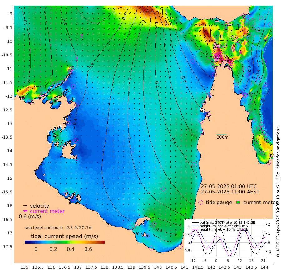 21cm/s 49T +3cm/s rms + 7cm/s -42T. ARA-GOC87 57m 8cm/s -22T +3cm/s rms + 2cm/s -2T. ARA-GOC87 60m 27cm/s 41T +2cm/s rms + 3cm/s 61T. ARA-GOC87 47m 77cm Daru 83cm Bobo Island 24cm Meer Island Barge 49cm Bramble Cay 69cm Unnamed Cay 72cm Pearce Cay 63cm Stephens Island 69cm Merrie England Shoals 79cm Mutacomal Reef 58cm Darnley Island Barge 26cm East Cay 69cm Yorke Island Barge 63cm Rennel Island 71cm Aureed Island 61cm Dungeness Reef 53cm Zagai Island 48cm Yam Island -7cm Dauan Island 2cm Saibai Island 8cm Phipi Reef 50cm Warrior Reef - West -32cm Mabuiag Island Barge 70cm Half Way Island 62cm Coconut Island 71cm Dugong Islet 56cm Poll Island 53cm Kirkcaldie Reef 29cm Suarji Island 54cm Sue Islet -133cm Hawkesbury Island 2cm Alert Patches 18cm Twin Island -121cm Badu Island 18cm St Pauls (Moa Island) -84cm Kubin (Moa Island) -25cm Ince Point -52cm Thursday Island -45cm Nardana Patches -90cm Turtle Head -107cm Round Island -145cm Goods Island -182cm Booby Island -163cm White Rocks Area -166cm Carpentaria 13cm Papou Point -191cm Bampfield Head -160cm Crab Island -165cm Red Wallis Island -112cm Packe Island 76cm Harrington Reef -149cm Herald Camp 15cm Sharp Point -76cm Red Island Point -33cm Possession Island 32cm Alpha Rock 43cm Frederick Point 73cm Wyborn Reef Light 70cm Tetley Island 19cm Triangle Reef 68cm Turtle Head Island 18cm Maclennan Cay -9cm Raine Island 59cm Mcsweeny Reef 50cm Collette Reef 17cm Shadwell Reef 60cm Hannibal Island 45cm Round Point -156cm Vrilya Point 35cm Cape Grenville 28cm Hicks Island 20cm Sir Charles Hardy Island 12cm Harvey Island 20cm Kay Reef 7cm Rocky Island -7cm Chapman Island -5cm Ham Reef 3cm Jubilee Reef 8cm Night Island -6cm Unnamed Reef No. 3 7cm Morris Island -9cm 1st 3 Mile Opening 0cm Creech Reef 8cm Fife Island 7cm Eden Reef 6cm Stanley Island 21cm Normanby River 25cm Yabooma Island 44cm Hutchison River 33cm Elcho Island 38cm North West Crocodile Island 51cm Cape Wessel 52cm Stevens Island 77cm Guluwuru Island 38cm Hopeful Bay 42cm Auster Point 56cm Two Island Bay 78cm Cadell Strait 124cm Mallison Island 64cm Melville Bay (Gove Harbour) 63cm Truant Island 48cm Cape Arnhem 49cm Cape Grey 53cm Hawk Island 52cm Milner Bay (Groote Eylandt) 50cm Cape Beatrice 52cm West Island 45cm Centre Island 58cm Mornington Island 55cm West Wellesley Islands 70cm Bountiful Island 92cm Albert River Mouth 108cm Sweers Island 83cm Karumba 18cm Nassau River Offshore -30cm Christmas Creek -84cm Archer River -99cm Boyd Point -114cm Weipa (Humbug Point) -108cm Pennefather River -140cm Cullen Point