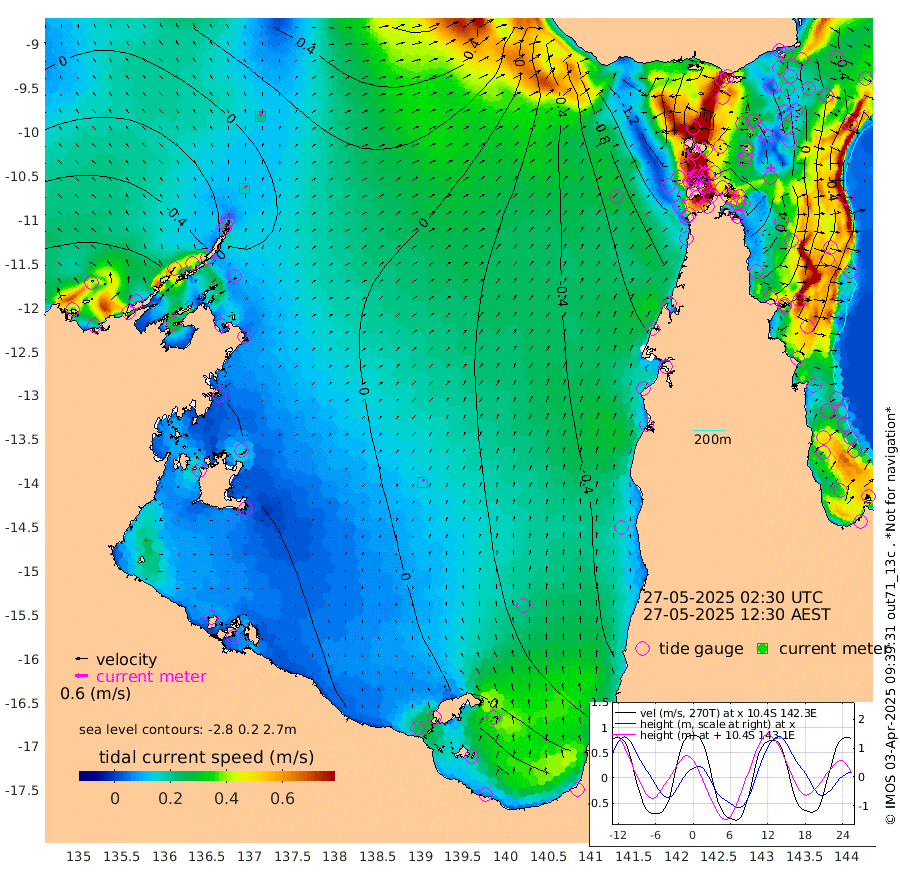 18cm/s 32T +3cm/s rms + 7cm/s -42T. ARA-GOC87 57m 14cm/s 15T +3cm/s rms + 2cm/s -2T. ARA-GOC87 60m 20cm/s 28T +2cm/s rms + 3cm/s 61T. ARA-GOC87 47m 23cm Daru 21cm Bobo Island -40cm Meer Island Barge -25cm Bramble Cay 3cm Unnamed Cay 3cm Pearce Cay -8cm Stephens Island 0cm Merrie England Shoals 25cm Mutacomal Reef -8cm Darnley Island Barge -47cm East Cay 12cm Yorke Island Barge 5cm Rennel Island 14cm Aureed Island 16cm Dungeness Reef 41cm Zagai Island 35cm Yam Island 8cm Dauan Island 22cm Saibai Island 2cm Phipi Reef 34cm Warrior Reef - West -5cm Mabuiag Island Barge 15cm Half Way Island 19cm Coconut Island 23cm Dugong Islet 30cm Poll Island 24cm Kirkcaldie Reef 21cm Suarji Island 38cm Sue Islet -113cm Hawkesbury Island 3cm Alert Patches 15cm Twin Island -99cm Badu Island 25cm St Pauls (Moa Island) -74cm Kubin (Moa Island) -15cm Ince Point -36cm Thursday Island -30cm Nardana Patches -79cm Turtle Head -95cm Round Island -130cm Goods Island -151cm Booby Island -140cm White Rocks Area -112cm Carpentaria 14cm Papou Point -167cm Bampfield Head -129cm Crab Island -134cm Red Wallis Island -101cm Packe Island 27cm Harrington Reef -133cm Herald Camp 24cm Sharp Point -66cm Red Island Point -30cm Possession Island 29cm Alpha Rock 21cm Frederick Point 26cm Wyborn Reef Light 31cm Tetley Island -32cm Triangle Reef 17cm Turtle Head Island -43cm Maclennan Cay -67cm Raine Island -1cm Mcsweeny Reef -11cm Collette Reef -39cm Shadwell Reef -10cm Hannibal Island -31cm Round Point -112cm Vrilya Point -33cm Cape Grenville -42cm Hicks Island -51cm Sir Charles Hardy Island -9cm Harvey Island -50cm Kay Reef -59cm Rocky Island -70cm Chapman Island -64cm Ham Reef -58cm Jubilee Reef -50cm Night Island -66cm Unnamed Reef No. 3 -62cm Morris Island -69cm 1st 3 Mile Opening -62cm Creech Reef -58cm Fife Island -74cm Eden Reef -62cm Stanley Island -58cm Normanby River -67cm Yabooma Island -74cm Hutchison River -61cm Elcho Island -51cm North West Crocodile Island -8cm Cape Wessel -29cm Stevens Island 9cm Guluwuru Island -40cm Hopeful Bay -23cm Auster Point -11cm Two Island Bay -21cm Cadell Strait 71cm Mallison Island 2cm Melville Bay (Gove Harbour) 1cm Truant Island 8cm Cape Arnhem 21cm Cape Grey 29cm Hawk Island 51cm Milner Bay (Groote Eylandt) 47cm Cape Beatrice 72cm West Island 68cm Centre Island 39cm Mornington Island 41cm West Wellesley Islands 28cm Bountiful Island 48cm Albert River Mouth 68cm Sweers Island 38cm Karumba -9cm Nassau River Offshore -51cm Christmas Creek -89cm Archer River -90cm Boyd Point -114cm Weipa (Humbug Point) -81cm Pennefather River -109cm Cullen Point