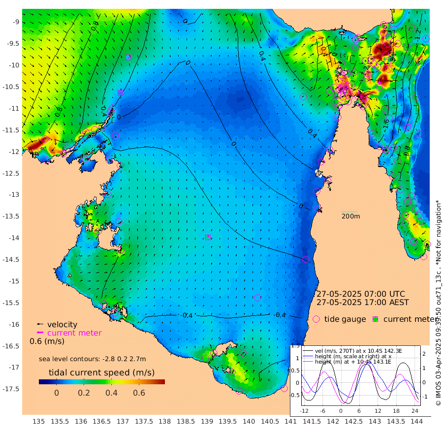 7cm/s 176T +3cm/s rms + 7cm/s -42T. ARA-GOC87 57m 20cm/s 11T +3cm/s rms + 2cm/s -2T. ARA-GOC87 60m 13cm/s 159T +2cm/s rms + 3cm/s 61T. ARA-GOC87 47m -167cm Daru -164cm Bobo Island -94cm Meer Island Barge -124cm Bramble Cay -155cm Unnamed Cay -155cm Pearce Cay -146cm Stephens Island -150cm Merrie England Shoals -166cm Mutacomal Reef -138cm Darnley Island Barge -101cm East Cay -152cm Yorke Island Barge -153cm Rennel Island -158cm Aureed Island -160cm Dungeness Reef -145cm Zagai Island -144cm Yam Island -107cm Dauan Island -99cm Saibai Island -135cm Phipi Reef -156cm Warrior Reef - West -56cm Mabuiag Island Barge -151cm Half Way Island -155cm Coconut Island -160cm Dugong Islet -147cm Poll Island -149cm Kirkcaldie Reef -144cm Suarji Island -140cm Sue Islet 23cm Hawkesbury Island -110cm Alert Patches -118cm Twin Island 5cm Badu Island -119cm St Pauls (Moa Island) -26cm Kubin (Moa Island) -78cm Ince Point -53cm Thursday Island -60cm Nardana Patches -32cm Turtle Head -12cm Round Island 22cm Goods Island 64cm Booby Island 49cm White Rocks Area 79cm Carpentaria -97cm Papou Point 44cm Bampfield Head 65cm Crab Island 54cm Red Wallis Island -10cm Packe Island -167cm Harrington Reef 9cm Herald Camp -38cm Sharp Point -19cm Red Island Point -74cm Possession Island -114cm Alpha Rock -138cm Frederick Point -159cm Wyborn Reef Light -155cm Tetley Island -90cm Triangle Reef -152cm Turtle Head Island -93cm Maclennan Cay -59cm Raine Island -141cm Mcsweeny Reef -131cm Collette Reef -91cm Shadwell Reef -144cm Hannibal Island -122cm Round Point 81cm Vrilya Point -112cm Cape Grenville -106cm Hicks Island -112cm Sir Charles Hardy Island -36cm Harvey Island -93cm Kay Reef -79cm Rocky Island -66cm Chapman Island -62cm Ham Reef -72cm Jubilee Reef -73cm Night Island -63cm Unnamed Reef No. 3 -79cm Morris Island -69cm 1st 3 Mile Opening -74cm Creech Reef -75cm Fife Island -83cm Eden Reef -78cm Stanley Island -89cm Normanby River 61cm Yabooma Island 43cm Hutchison River 60cm Elcho Island 60cm North West Crocodile Island 18cm Cape Wessel 42cm Stevens Island -37cm Guluwuru Island 42cm Hopeful Bay 29cm Auster Point 29cm Two Island Bay 16cm Cadell Strait -94cm Mallison Island -24cm Melville Bay (Gove Harbour) -21cm Truant Island -24cm Cape Arnhem -23cm Cape Grey -28cm Hawk Island -9cm Milner Bay (Groote Eylandt) -15cm Cape Beatrice -16cm West Island -15cm Centre Island -73cm Mornington Island -70cm West Wellesley Islands -96cm Bountiful Island -73cm Albert River Mouth -69cm Sweers Island -78cm Karumba -73cm Nassau River Offshore -61cm Christmas Creek -3cm Archer River 10cm Boyd Point 11cm Weipa (Humbug Point) 47cm Pennefather River 53cm Cullen Point