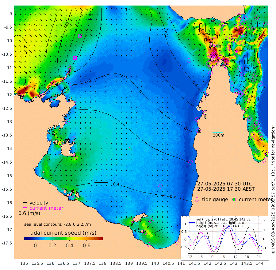 12cm/s 155T +3cm/s rms + 7cm/s -42T. ARA-GOC87 57m 18cm/s 9T +3cm/s rms + 2cm/s -2T. ARA-GOC87 60m 18cm/s 147T +2cm/s rms + 3cm/s 61T. ARA-GOC87 47m -157cm Daru -150cm Bobo Island -72cm Meer Island Barge -102cm Bramble Cay -139cm Unnamed Cay -137cm Pearce Cay -126cm Stephens Island -132cm Merrie England Shoals -156cm Mutacomal Reef -120cm Darnley Island Barge -77cm East Cay -139cm Yorke Island Barge -138cm Rennel Island -145cm Aureed Island -152cm Dungeness Reef -148cm Zagai Island -146cm Yam Island -116cm Dauan Island -111cm Saibai Island -140cm Phipi Reef -159cm Warrior Reef - West -65cm Mabuiag Island Barge -138cm Half Way Island -146cm Coconut Island -150cm Dugong Islet -144cm Poll Island -145cm Kirkcaldie Reef -147cm Suarji Island -141cm Sue Islet 31cm Hawkesbury Island -112cm Alert Patches -119cm Twin Island 11cm Badu Island -124cm St Pauls (Moa Island) -21cm Kubin (Moa Island) -79cm Ince Point -54cm Thursday Island -61cm Nardana Patches -27cm Turtle Head -5cm Round Island 33cm Goods Island 74cm Booby Island 60cm White Rocks Area 82cm Carpentaria -99cm Papou Point 58cm Bampfield Head 74cm Crab Island 63cm Red Wallis Island -2cm Packe Island -157cm Harrington Reef 18cm Herald Camp -44cm Sharp Point -14cm Red Island Point -72cm Possession Island -118cm Alpha Rock -135cm Frederick Point -149cm Wyborn Reef Light -148cm Tetley Island -73cm Triangle Reef -138cm Turtle Head Island -73cm Maclennan Cay -36cm Raine Island -125cm Mcsweeny Reef -114cm Collette Reef -72cm Shadwell Reef -124cm Hannibal Island -99cm Round Point 86cm Vrilya Point -91cm Cape Grenville -83cm Hicks Island -89cm Sir Charles Hardy Island -29cm Harvey Island -70cm Kay Reef -56cm Rocky Island -42cm Chapman Island -40cm Ham Reef -49cm Jubilee Reef -53cm Night Island -40cm Unnamed Reef No. 3 -54cm Morris Island -45cm 1st 3 Mile Opening -51cm Creech Reef -51cm Fife Island -53cm Eden Reef -54cm Stanley Island -62cm Normanby River 99cm Yabooma Island 91cm Hutchison River 99cm Elcho Island 96cm North West Crocodile Island 42cm Cape Wessel 75cm Stevens Island -12cm Guluwuru Island 73cm Hopeful Bay 57cm Auster Point 56cm Two Island Bay 55cm Cadell Strait -79cm Mallison Island -2cm Melville Bay (Gove Harbour) 2cm Truant Island -10cm Cape Arnhem -17cm Cape Grey -25cm Hawk Island -17cm Milner Bay (Groote Eylandt) -24cm Cape Beatrice -36cm West Island -35cm Centre Island -84cm Mornington Island -83cm West Wellesley Islands -106cm Bountiful Island -83cm Albert River Mouth -82cm Sweers Island -87cm Karumba -77cm Nassau River Offshore -59cm Christmas Creek 4cm Archer River 16cm Boyd Point 21cm Weipa (Humbug Point) 51cm Pennefather River 58cm Cullen Point