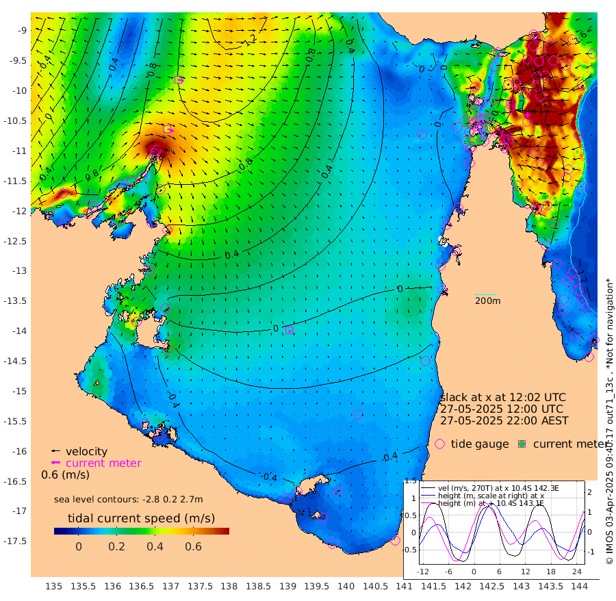 45cm/s 113T +3cm/s rms + 7cm/s -42T. ARA-GOC87 57m 16cm/s 163T +3cm/s rms + 2cm/s -2T. ARA-GOC87 60m 39cm/s 105T +2cm/s rms + 3cm/s 61T. ARA-GOC87 47m 140cm Daru 154cm Bobo Island 128cm Meer Island Barge 148cm Bramble Cay 150cm Unnamed Cay 163cm Pearce Cay 157cm Stephens Island 154cm Merrie England Shoals 139cm Mutacomal Reef 148cm Darnley Island Barge 138cm East Cay 141cm Yorke Island Barge 145cm Rennel Island 144cm Aureed Island 128cm Dungeness Reef 85cm Zagai Island 78cm Yam Island 26cm Dauan Island 17cm Saibai Island 47cm Phipi Reef 80cm Warrior Reef - West 17cm Mabuiag Island Barge 143cm Half Way Island 137cm Coconut Island 135cm Dugong Islet 106cm Poll Island 112cm Kirkcaldie Reef 79cm Suarji Island 92cm Sue Islet 39cm Hawkesbury Island 77cm Alert Patches 83cm Twin Island 42cm Badu Island 68cm St Pauls (Moa Island) 52cm Kubin (Moa Island) 58cm Ince Point 50cm Thursday Island 51cm Nardana Patches 52cm Turtle Head 42cm Round Island 48cm Goods Island 31cm Booby Island 36cm White Rocks Area 14cm Carpentaria 70cm Papou Point 52cm Bampfield Head 25cm Crab Island 29cm Red Wallis Island 51cm Packe Island 147cm Harrington Reef 28cm Herald Camp 4cm Sharp Point 45cm Red Island Point 65cm Possession Island 72cm Alpha Rock 109cm Frederick Point 140cm Wyborn Reef Light 130cm Tetley Island 112cm Triangle Reef 162cm Turtle Head Island 121cm Maclennan Cay 111cm Raine Island 143cm Mcsweeny Reef 137cm Collette Reef 117cm Shadwell Reef 154cm Hannibal Island 153cm Round Point 16cm Vrilya Point 135cm Cape Grenville 135cm Hicks Island 133cm Sir Charles Hardy Island 42cm Harvey Island 131cm Kay Reef 117cm Rocky Island 113cm Chapman Island 107cm Ham Reef 116cm Jubilee Reef 109cm Night Island 112cm Unnamed Reef No. 3 125cm Morris Island 118cm 1st 3 Mile Opening 120cm Creech Reef 120cm Fife Island 144cm Eden Reef 124cm Stanley Island 138cm Normanby River 94cm Yabooma Island 143cm Hutchison River 102cm Elcho Island 85cm North West Crocodile Island 100cm Cape Wessel 106cm Stevens Island 140cm Guluwuru Island 87cm Hopeful Bay 99cm Auster Point 97cm Two Island Bay 150cm Cadell Strait 173cm Mallison Island 110cm Melville Bay (Gove Harbour) 122cm Truant Island 79cm Cape Arnhem 34cm Cape Grey 10cm Hawk Island -48cm Milner Bay (Groote Eylandt) -53cm Cape Beatrice -111cm West Island -108cm Centre Island -85cm Mornington Island -90cm West Wellesley Islands -112cm Bountiful Island -131cm Albert River Mouth -150cm Sweers Island -130cm Karumba -53cm Nassau River Offshore -13cm Christmas Creek 12cm Archer River 19cm Boyd Point 17cm Weipa (Humbug Point) 20cm Pennefather River 7cm Cullen Point