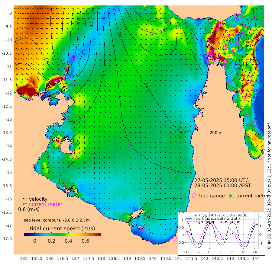 3cm/s 156T +3cm/s rms + 7cm/s -42T. ARA-GOC87 57m 28cm/s 158T +3cm/s rms + 2cm/s -2T. ARA-GOC87 60m 10cm/s -96T +2cm/s rms + 3cm/s 61T. ARA-GOC87 47m 144cm Daru 131cm Bobo Island 57cm Meer Island Barge 76cm Bramble Cay 118cm Unnamed Cay 117cm Pearce Cay 106cm Stephens Island 110cm Merrie England Shoals 140cm Mutacomal Reef 102cm Darnley Island Barge 56cm East Cay 125cm Yorke Island Barge 127cm Rennel Island 131cm Aureed Island 148cm Dungeness Reef 164cm Zagai Island 161cm Yam Island 159cm Dauan Island 152cm Saibai Island 161cm Phipi Reef 171cm Warrior Reef - West 127cm Mabuiag Island Barge 127cm Half Way Island 149cm Coconut Island 145cm Dugong Islet 156cm Poll Island 157cm Kirkcaldie Reef 173cm Suarji Island 158cm Sue Islet 76cm Hawkesbury Island 162cm Alert Patches 161cm Twin Island 92cm Badu Island 170cm St Pauls (Moa Island) 102cm Kubin (Moa Island) 142cm Ince Point 130cm Thursday Island 133cm Nardana Patches 113cm Turtle Head 91cm Round Island 76cm Goods Island 61cm Booby Island 60cm White Rocks Area 66cm Carpentaria 140cm Papou Point 81cm Bampfield Head 50cm Crab Island 64cm Red Wallis Island 94cm Packe Island 155cm Harrington Reef 85cm Herald Camp 55cm Sharp Point 89cm Red Island Point 129cm Possession Island 148cm Alpha Rock 157cm Frederick Point 144cm Wyborn Reef Light 149cm Tetley Island 66cm Triangle Reef 144cm Turtle Head Island 62cm Maclennan Cay 31cm Raine Island 112cm Mcsweeny Reef 100cm Collette Reef 63cm Shadwell Reef 103cm Hannibal Island 75cm Round Point 48cm Vrilya Point 72cm Cape Grenville 64cm Hicks Island 72cm Sir Charles Hardy Island 23cm Harvey Island 51cm Kay Reef 40cm Rocky Island 32cm Chapman Island 32cm Ham Reef 40cm Jubilee Reef 42cm Night Island 33cm Unnamed Reef No. 3 39cm Morris Island 43cm 1st 3 Mile Opening 43cm Creech Reef 36cm Fife Island 32cm Eden Reef 41cm Stanley Island 35cm Normanby River -192cm Yabooma Island -202cm Hutchison River -196cm Elcho Island -196cm North West Crocodile Island -94cm Cape Wessel -159cm Stevens Island -38cm Guluwuru Island -156cm Hopeful Bay -115cm Auster Point -123cm Two Island Bay -146cm Cadell Strait 57cm Mallison Island -52cm Melville Bay (Gove Harbour) -48cm Truant Island -22cm Cape Arnhem -23cm Cape Grey -26cm Hawk Island -36cm Milner Bay (Groote Eylandt) -32cm Cape Beatrice -19cm West Island -15cm Centre Island -10cm Mornington Island -4cm West Wellesley Islands -37cm Bountiful Island -88cm Albert River Mouth -102cm Sweers Island -78cm Karumba 11cm Nassau River Offshore 44cm Christmas Creek 36cm Archer River 51cm Boyd Point 39cm Weipa (Humbug Point) 42cm Pennefather River 48cm Cullen Point