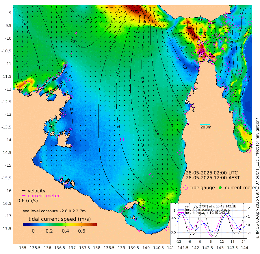 24cm/s 45T +3cm/s rms + 7cm/s -42T. ARA-GOC87 57m 14cm/s -14T +3cm/s rms + 2cm/s -2T. ARA-GOC87 60m 31cm/s 40T +2cm/s rms + 3cm/s 61T. ARA-GOC87 47m 47cm Daru 54cm Bobo Island 3cm Meer Island Barge 21cm Bramble Cay 38cm Unnamed Cay 43cm Pearce Cay 33cm Stephens Island 36cm Merrie England Shoals 47cm Mutacomal Reef 32cm Darnley Island Barge 0cm East Cay 43cm Yorke Island Barge 33cm Rennel Island 46cm Aureed Island 34cm Dungeness Reef 35cm Zagai Island 24cm Yam Island -19cm Dauan Island -9cm Saibai Island -11cm Phipi Reef 29cm Warrior Reef - West -48cm Mabuiag Island Barge 40cm Half Way Island 34cm Coconut Island 41cm Dugong Islet 31cm Poll Island 23cm Kirkcaldie Reef 9cm Suarji Island 31cm Sue Islet -167cm Hawkesbury Island -22cm Alert Patches -7cm Twin Island -149cm Badu Island -4cm St Pauls (Moa Island) -113cm Kubin (Moa Island) -49cm Ince Point -77cm Thursday Island -69cm Nardana Patches -117cm Turtle Head -135cm Round Island -175cm Goods Island -211cm Booby Island -193cm White Rocks Area -182cm Carpentaria -10cm Papou Point -218cm Bampfield Head -184cm Crab Island -193cm Red Wallis Island -143cm Packe Island 44cm Harrington Reef -180cm Herald Camp 11cm Sharp Point -105cm Red Island Point -56cm Possession Island 10cm Alpha Rock 15cm Frederick Point 44cm Wyborn Reef Light 41cm Tetley Island -1cm Triangle Reef 35cm Turtle Head Island -5cm Maclennan Cay -28cm Raine Island 31cm Mcsweeny Reef 24cm Collette Reef -3cm Shadwell Reef 31cm Hannibal Island 15cm Round Point -176cm Vrilya Point 8cm Cape Grenville 2cm Hicks Island -7cm Sir Charles Hardy Island 3cm Harvey Island -6cm Kay Reef -15cm Rocky Island -26cm Chapman Island -25cm Ham Reef -17cm Jubilee Reef -11cm Night Island -26cm Unnamed Reef No. 3 -16cm Morris Island -28cm 1st 3 Mile Opening -21cm Creech Reef -12cm Fife Island -17cm Eden Reef -17cm Stanley Island -5cm Normanby River 7cm Yabooma Island 22cm Hutchison River 18cm Elcho Island 21cm North West Crocodile Island 46cm Cape Wessel 41cm Stevens Island 73cm Guluwuru Island 29cm Hopeful Bay 36cm Auster Point 48cm Two Island Bay 64cm Cadell Strait 133cm Mallison Island 61cm Melville Bay (Gove Harbour) 61cm Truant Island 50cm Cape Arnhem 53cm Cape Grey 60cm Hawk Island 68cm Milner Bay (Groote Eylandt) 63cm Cape Beatrice 71cm West Island 66cm Centre Island 71cm Mornington Island 71cm West Wellesley Islands 81cm Bountiful Island 112cm Albert River Mouth 137cm Sweers Island 97cm Karumba 15cm Nassau River Offshore -41cm Christmas Creek -99cm Archer River -113cm Boyd Point -131cm Weipa (Humbug Point) -121cm Pennefather River -158cm Cullen Point