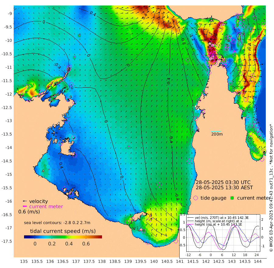 21cm/s 27T +3cm/s rms + 7cm/s -42T. ARA-GOC87 57m 21cm/s 11T +3cm/s rms + 2cm/s -2T. ARA-GOC87 60m 23cm/s 28T +2cm/s rms + 3cm/s 61T. ARA-GOC87 47m -10cm Daru -11cm Bobo Island -55cm Meer Island Barge -48cm Bramble Cay -27cm Unnamed Cay -28cm Pearce Cay -35cm Stephens Island -29cm Merrie England Shoals -10cm Mutacomal Reef -31cm Darnley Island Barge -65cm East Cay -14cm Yorke Island Barge -25cm Rennel Island -14cm Aureed Island -17cm Dungeness Reef 10cm Zagai Island -1cm Yam Island -21cm Dauan Island -5cm Saibai Island -33cm Phipi Reef -1cm Warrior Reef - West -30cm Mabuiag Island Barge -16cm Half Way Island -14cm Coconut Island -10cm Dugong Islet -3cm Poll Island -12cm Kirkcaldie Reef -11cm Suarji Island 7cm Sue Islet -142cm Hawkesbury Island -29cm Alert Patches -19cm Twin Island -129cm Badu Island -8cm St Pauls (Moa Island) -103cm Kubin (Moa Island) -45cm Ince Point -64cm Thursday Island -59cm Nardana Patches -106cm Turtle Head -119cm Round Island -155cm Goods Island -170cm Booby Island -161cm White Rocks Area -118cm Carpentaria -16cm Papou Point -181cm Bampfield Head -144cm Crab Island -156cm Red Wallis Island -131cm Packe Island -7cm Harrington Reef -156cm Herald Camp 15cm Sharp Point -94cm Red Island Point -56cm Possession Island 0cm Alpha Rock -13cm Frederick Point -7cm Wyborn Reef Light -3cm Tetley Island -49cm Triangle Reef -15cm Turtle Head Island -59cm Maclennan Cay -78cm Raine Island -27cm Mcsweeny Reef -34cm Collette Reef -54cm Shadwell Reef -36cm Hannibal Island -55cm Round Point -123cm Vrilya Point -53cm Cape Grenville -60cm Hicks Island -70cm Sir Charles Hardy Island -15cm Harvey Island -67cm Kay Reef -72cm Rocky Island -81cm Chapman Island -74cm Ham Reef -70cm Jubilee Reef -62cm Night Island -77cm Unnamed Reef No. 3 -76cm Morris Island -79cm 1st 3 Mile Opening -74cm Creech Reef -69cm Fife Island -87cm Eden Reef -74cm Stanley Island -73cm Normanby River -77cm Yabooma Island -90cm Hutchison River -70cm Elcho Island -63cm North West Crocodile Island -9cm Cape Wessel -36cm Stevens Island 3cm Guluwuru Island -44cm Hopeful Bay -25cm Auster Point -14cm Two Island Bay -34cm Cadell Strait 73cm Mallison Island -2cm Melville Bay (Gove Harbour) -1cm Truant Island 8cm Cape Arnhem 25cm Cape Grey 33cm Hawk Island 63cm Milner Bay (Groote Eylandt) 56cm Cape Beatrice 87cm West Island 83cm Centre Island 42cm Mornington Island 47cm West Wellesley Islands 29cm Bountiful Island 52cm Albert River Mouth 82cm Sweers Island 39cm Karumba -19cm Nassau River Offshore -66cm Christmas Creek -101cm Archer River -100cm Boyd Point -126cm Weipa (Humbug Point) -89cm Pennefather River -120cm Cullen Point
