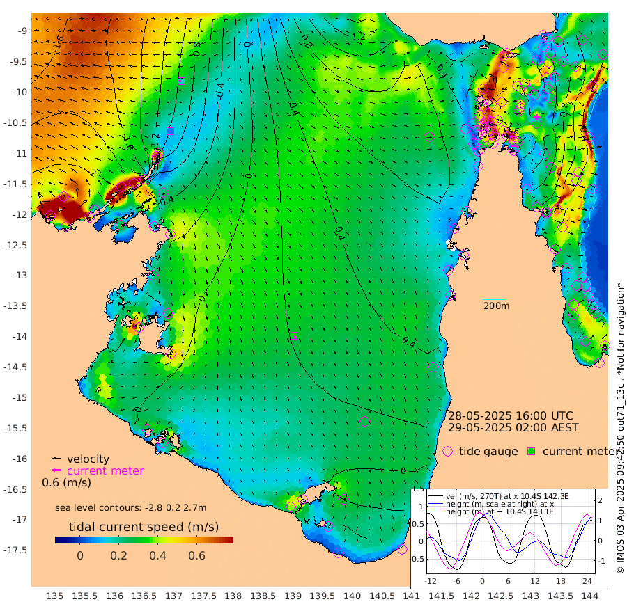 5cm/s -120T +3cm/s rms + 7cm/s -42T. ARA-GOC87 57m 34cm/s 161T +3cm/s rms + 2cm/s -2T. ARA-GOC87 60m 17cm/s -97T +2cm/s rms + 3cm/s 61T. ARA-GOC87 47m 130cm Daru 115cm Bobo Island 53cm Meer Island Barge 67cm Bramble Cay 105cm Unnamed Cay 104cm Pearce Cay 95cm Stephens Island 97cm Merrie England Shoals 125cm Mutacomal Reef 94cm Darnley Island Barge 53cm East Cay 114cm Yorke Island Barge 114cm Rennel Island 118cm Aureed Island 135cm Dungeness Reef 150cm Zagai Island 151cm Yam Island 158cm Dauan Island 151cm Saibai Island 154cm Phipi Reef 161cm Warrior Reef - West 126cm Mabuiag Island Barge 116cm Half Way Island 132cm Coconut Island 133cm Dugong Islet 142cm Poll Island 147cm Kirkcaldie Reef 158cm Suarji Island 147cm Sue Islet 88cm Hawkesbury Island 153cm Alert Patches 151cm Twin Island 98cm Badu Island 160cm St Pauls (Moa Island) 107cm Kubin (Moa Island) 138cm Ince Point 130cm Thursday Island 132cm Nardana Patches 117cm Turtle Head 93cm Round Island 87cm Goods Island 77cm Booby Island 72cm White Rocks Area 80cm Carpentaria 131cm Papou Point 87cm Bampfield Head 65cm Crab Island 80cm Red Wallis Island 103cm Packe Island 140cm Harrington Reef 98cm Herald Camp 52cm Sharp Point 94cm Red Island Point 122cm Possession Island 138cm Alpha Rock 145cm Frederick Point 127cm Wyborn Reef Light 132cm Tetley Island 62cm Triangle Reef 128cm Turtle Head Island 60cm Maclennan Cay 31cm Raine Island 102cm Mcsweeny Reef 90cm Collette Reef 59cm Shadwell Reef 91cm Hannibal Island 67cm Round Point 65cm Vrilya Point 66cm Cape Grenville 60cm Hicks Island 70cm Sir Charles Hardy Island 22cm Harvey Island 48cm Kay Reef 39cm Rocky Island 33cm Chapman Island 34cm Ham Reef 40cm Jubilee Reef 41cm Night Island 35cm Unnamed Reef No. 3 38cm Morris Island 43cm 1st 3 Mile Opening 43cm Creech Reef 39cm Fife Island 31cm Eden Reef 41cm Stanley Island 34cm Normanby River -213cm Yabooma Island -234cm Hutchison River -222cm Elcho Island -219cm North West Crocodile Island -112cm Cape Wessel -184cm Stevens Island -59cm Guluwuru Island -177cm Hopeful Bay -136cm Auster Point -141cm Two Island Bay -167cm Cadell Strait 49cm Mallison Island -72cm Melville Bay (Gove Harbour) -68cm Truant Island -36cm Cape Arnhem -36cm Cape Grey -39cm Hawk Island -47cm Milner Bay (Groote Eylandt) -40cm Cape Beatrice -21cm West Island -20cm Centre Island -11cm Mornington Island -3cm West Wellesley Islands -37cm Bountiful Island -96cm Albert River Mouth -114cm Sweers Island -83cm Karumba 22cm Nassau River Offshore 59cm Christmas Creek 52cm Archer River 66cm Boyd Point 56cm Weipa (Humbug Point) 54cm Pennefather River 65cm Cullen Point