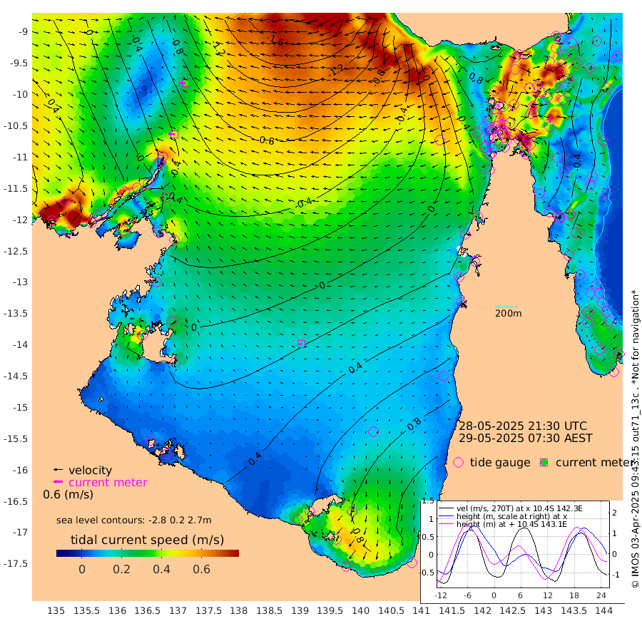 42cm/s -86T +3cm/s rms + 7cm/s -42T. ARA-GOC87 57m 17cm/s -108T +3cm/s rms + 2cm/s -2T. ARA-GOC87 60m 37cm/s -93T +2cm/s rms + 3cm/s 61T. ARA-GOC87 47m -59cm Daru -66cm Bobo Island -25cm Meer Island Barge -33cm Bramble Cay -51cm Unnamed Cay -58cm Pearce Cay -50cm Stephens Island -49cm Merrie England Shoals -57cm Mutacomal Reef -52cm Darnley Island Barge -20cm East Cay -61cm Yorke Island Barge -53cm Rennel Island -61cm Aureed Island -50cm Dungeness Reef -56cm Zagai Island -44cm Yam Island -9cm Dauan Island -22cm Saibai Island 8cm Phipi Reef -40cm Warrior Reef - West -14cm Mabuiag Island Barge -60cm Half Way Island -61cm Coconut Island -62cm Dugong Islet -56cm Poll Island -53cm Kirkcaldie Reef -39cm Suarji Island -63cm Sue Islet 30cm Hawkesbury Island -38cm Alert Patches -47cm Twin Island 28cm Badu Island -47cm St Pauls (Moa Island) 11cm Kubin (Moa Island) -23cm Ince Point -12cm Thursday Island -14cm Nardana Patches 16cm Turtle Head 25cm Round Island 40cm Goods Island 44cm Booby Island 43cm White Rocks Area -1cm Carpentaria -44cm Papou Point 32cm Bampfield Head 36cm Crab Island 39cm Red Wallis Island 30cm Packe Island -71cm Harrington Reef 50cm Herald Camp -16cm Sharp Point 13cm Red Island Point -19cm Possession Island -52cm Alpha Rock -57cm Frederick Point -68cm Wyborn Reef Light -69cm Tetley Island -24cm Triangle Reef -82cm Turtle Head Island -19cm Maclennan Cay -2cm Raine Island -51cm Mcsweeny Reef -43cm Collette Reef -20cm Shadwell Reef -46cm Hannibal Island -32cm Round Point 18cm Vrilya Point -26cm Cape Grenville -22cm Hicks Island -16cm Sir Charles Hardy Island -9cm Harvey Island -15cm Kay Reef -5cm Rocky Island 0cm Chapman Island -5cm Ham Reef -11cm Jubilee Reef -9cm Night Island -4cm Unnamed Reef No. 3 -7cm Morris Island -7cm 1st 3 Mile Opening -9cm Creech Reef -10cm Fife Island -7cm Eden Reef -9cm Stanley Island -12cm Normanby River 31cm Yabooma Island 24cm Hutchison River 28cm Elcho Island 35cm North West Crocodile Island -52cm Cape Wessel -11cm Stevens Island -80cm Guluwuru Island 6cm Hopeful Bay -33cm Auster Point -38cm Two Island Bay -38cm Cadell Strait -180cm Mallison Island -52cm Melville Bay (Gove Harbour) -68cm Truant Island -48cm Cape Arnhem -23cm Cape Grey -3cm Hawk Island 12cm Milner Bay (Groote Eylandt) 28cm Cape Beatrice 44cm West Island 43cm Centre Island 100cm Mornington Island 93cm West Wellesley Islands 155cm Bountiful Island 175cm Albert River Mouth 166cm Sweers Island 181cm Karumba 113cm Nassau River Offshore 91cm Christmas Creek 64cm Archer River 38cm Boyd Point 66cm Weipa (Humbug Point) 16cm Pennefather River 34cm Cullen Point