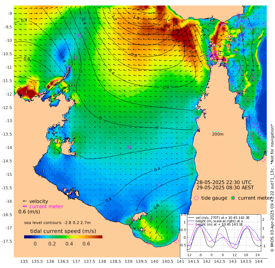 26cm/s -81T +3cm/s rms + 7cm/s -42T. ARA-GOC87 57m 19cm/s -91T +3cm/s rms + 2cm/s -2T. ARA-GOC87 60m 19cm/s -81T +2cm/s rms + 3cm/s 61T. ARA-GOC87 47m -39cm Daru -37cm Bobo Island -4cm Meer Island Barge -6cm Bramble Cay -26cm Unnamed Cay -28cm Pearce Cay -24cm Stephens Island -24cm Merrie England Shoals -36cm Mutacomal Reef -26cm Darnley Island Barge 3cm East Cay -38cm Yorke Island Barge -32cm Rennel Island -36cm Aureed Island -36cm Dungeness Reef -53cm Zagai Island -47cm Yam Island -31cm Dauan Island -42cm Saibai Island -6cm Phipi Reef -40cm Warrior Reef - West -45cm Mabuiag Island Barge -40cm Half Way Island -46cm Coconut Island -46cm Dugong Islet -50cm Poll Island -50cm Kirkcaldie Reef -46cm Suarji Island -60cm Sue Islet -25cm Hawkesbury Island -56cm Alert Patches -59cm Twin Island -21cm Badu Island -63cm St Pauls (Moa Island) -29cm Kubin (Moa Island) -50cm Ince Point -47cm Thursday Island -46cm Nardana Patches -26cm Turtle Head -21cm Round Island -13cm Goods Island -23cm Booby Island -16cm White Rocks Area -68cm Carpentaria -56cm Papou Point -35cm Bampfield Head -24cm Crab Island -24cm Red Wallis Island -17cm Packe Island -54cm Harrington Reef -13cm Herald Camp -22cm Sharp Point -24cm Red Island Point -43cm Possession Island -60cm Alpha Rock -56cm Frederick Point -49cm Wyborn Reef Light -54cm Tetley Island -8cm Triangle Reef -63cm Turtle Head Island -3cm Maclennan Cay 11cm Raine Island -30cm Mcsweeny Reef -22cm Collette Reef -4cm Shadwell Reef -20cm Hannibal Island -5cm Round Point -45cm Vrilya Point -6cm Cape Grenville -1cm Hicks Island 1cm Sir Charles Hardy Island -3cm Harvey Island 4cm Kay Reef 12cm Rocky Island 15cm Chapman Island 8cm Ham Reef 5cm Jubilee Reef 6cm Night Island 9cm Unnamed Reef No. 3 11cm Morris Island 5cm 1st 3 Mile Opening 5cm Creech Reef 8cm Fife Island 18cm Eden Reef 7cm Stanley Island 12cm Normanby River 100cm Yabooma Island 114cm Hutchison River 103cm Elcho Island 107cm North West Crocodile Island 10cm Cape Wessel 64cm Stevens Island -10cm Guluwuru Island 73cm Hopeful Bay 30cm Auster Point 28cm Two Island Bay 53cm Cadell Strait -102cm Mallison Island 9cm Melville Bay (Gove Harbour) -5cm Truant Island -5cm Cape Arnhem 8cm Cape Grey 26cm Hawk Island 29cm Milner Bay (Groote Eylandt) 41cm Cape Beatrice 40cm West Island 37cm Centre Island 106cm Mornington Island 97cm West Wellesley Islands 167cm Bountiful Island 203cm Albert River Mouth 199cm Sweers Island 201cm Karumba 106cm Nassau River Offshore 71cm Christmas Creek 32cm Archer River -1cm Boyd Point 26cm Weipa (Humbug Point) -26cm Pennefather River -22cm Cullen Point