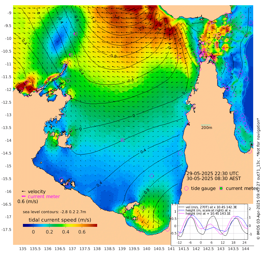 37cm/s -88T +3cm/s rms + 7cm/s -42T. ARA-GOC87 57m 19cm/s -105T +3cm/s rms + 2cm/s -2T. ARA-GOC87 60m 33cm/s -94T +2cm/s rms + 3cm/s 61T. ARA-GOC87 47m -47cm Daru -54cm Bobo Island -26cm Meer Island Barge -29cm Bramble Cay -43cm Unnamed Cay -47cm Pearce Cay -45cm Stephens Island -41cm Merrie England Shoals -45cm Mutacomal Reef -48cm Darnley Island Barge -22cm East Cay -54cm Yorke Island Barge -44cm Rennel Island -51cm Aureed Island -38cm Dungeness Reef -42cm Zagai Island -32cm Yam Island 1cm Dauan Island -14cm Saibai Island 24cm Phipi Reef -25cm Warrior Reef - West -10cm Mabuiag Island Barge -50cm Half Way Island -49cm Coconut Island -52cm Dugong Islet -43cm Poll Island -41cm Kirkcaldie Reef -27cm Suarji Island -52cm Sue Islet 22cm Hawkesbury Island -28cm Alert Patches -37cm Twin Island 27cm Badu Island -36cm St Pauls (Moa Island) 9cm Kubin (Moa Island) -17cm Ince Point -9cm Thursday Island -10cm Nardana Patches 15cm Turtle Head 17cm Round Island 33cm Goods Island 30cm Booby Island 32cm White Rocks Area -21cm Carpentaria -35cm Papou Point 9cm Bampfield Head 25cm Crab Island 27cm Red Wallis Island 26cm Packe Island -59cm Harrington Reef 31cm Herald Camp -11cm Sharp Point 13cm Red Island Point -17cm Possession Island -44cm Alpha Rock -46cm Frederick Point -57cm Wyborn Reef Light -57cm Tetley Island -23cm Triangle Reef -71cm Turtle Head Island -22cm Maclennan Cay -7cm Raine Island -45cm Mcsweeny Reef -38cm Collette Reef -21cm Shadwell Reef -41cm Hannibal Island -29cm Round Point 6cm Vrilya Point -26cm Cape Grenville -23cm Hicks Island -21cm Sir Charles Hardy Island -10cm Harvey Island -19cm Kay Reef -10cm Rocky Island -6cm Chapman Island -12cm Ham Reef -16cm Jubilee Reef -13cm Night Island -11cm Unnamed Reef No. 3 -12cm Morris Island -13cm 1st 3 Mile Opening -15cm Creech Reef -17cm Fife Island -11cm Eden Reef -15cm Stanley Island -17cm Normanby River 39cm Yabooma Island 42cm Hutchison River 42cm Elcho Island 50cm North West Crocodile Island -47cm Cape Wessel 2cm Stevens Island -69cm Guluwuru Island 14cm Hopeful Bay -26cm Auster Point -31cm Two Island Bay -21cm Cadell Strait -177cm Mallison Island -44cm Melville Bay (Gove Harbour) -61cm Truant Island -42cm Cape Arnhem -18cm Cape Grey 4cm Hawk Island 18cm Milner Bay (Groote Eylandt) 35cm Cape Beatrice 48cm West Island 47cm Centre Island 112cm Mornington Island 103cm West Wellesley Islands 166cm Bountiful Island 200cm Albert River Mouth 189cm Sweers Island 203cm Karumba 121cm Nassau River Offshore 92cm Christmas Creek 59cm Archer River 28cm Boyd Point 56cm Weipa (Humbug Point) 11cm Pennefather River 20cm Cullen Point