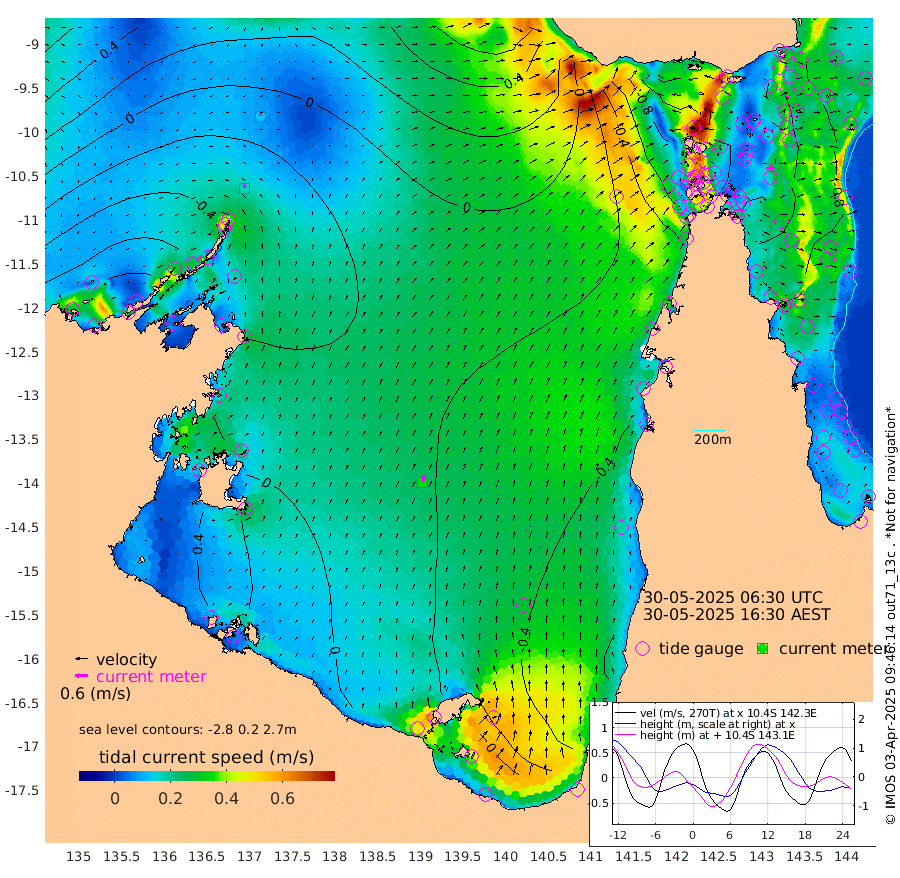 17cm/s -9T +3cm/s rms + 7cm/s -42T. ARA-GOC87 57m 34cm/s 14T +3cm/s rms + 2cm/s -2T. ARA-GOC87 60m 13cm/s 7T +2cm/s rms + 3cm/s 61T. ARA-GOC87 47m -78cm Daru -79cm Bobo Island -76cm Meer Island Barge -86cm Bramble Cay -81cm Unnamed Cay -92cm Pearce Cay -81cm Stephens Island -79cm Merrie England Shoals -78cm Mutacomal Reef -76cm Darnley Island Barge -85cm East Cay -72cm Yorke Island Barge -80cm Rennel Island -78cm Aureed Island -84cm Dungeness Reef -67cm Zagai Island -73cm Yam Island -95cm Dauan Island -74cm Saibai Island -113cm Phipi Reef -87cm Warrior Reef - West -64cm Mabuiag Island Barge -72cm Half Way Island -77cm Coconut Island -73cm Dugong Islet -71cm Poll Island -73cm Kirkcaldie Reef -72cm Suarji Island -58cm Sue Islet -118cm Hawkesbury Island -72cm Alert Patches -70cm Twin Island -119cm Badu Island -65cm St Pauls (Moa Island) -103cm Kubin (Moa Island) -75cm Ince Point -79cm Thursday Island -79cm Nardana Patches -106cm Turtle Head -98cm Round Island -122cm Goods Island -108cm Booby Island -108cm White Rocks Area -39cm Carpentaria -61cm Papou Point -101cm Bampfield Head -87cm Crab Island -105cm Red Wallis Island -118cm Packe Island -70cm Harrington Reef -114cm Herald Camp -7cm Sharp Point -94cm Red Island Point -71cm Possession Island -50cm Alpha Rock -70cm Frederick Point -70cm Wyborn Reef Light -68cm Tetley Island -76cm Triangle Reef -69cm Turtle Head Island -78cm Maclennan Cay -78cm Raine Island -74cm Mcsweeny Reef -75cm Collette Reef -74cm Shadwell Reef -82cm Hannibal Island -90cm Round Point -59cm Vrilya Point -78cm Cape Grenville -83cm Hicks Island -95cm Sir Charles Hardy Island -23cm Harvey Island -81cm Kay Reef -82cm Rocky Island -87cm Chapman Island -76cm Ham Reef -77cm Jubilee Reef -71cm Night Island -79cm Unnamed Reef No. 3 -83cm Morris Island -78cm 1st 3 Mile Opening -79cm Creech Reef -75cm Fife Island -97cm Eden Reef -79cm Stanley Island -85cm Normanby River -83cm Yabooma Island -112cm Hutchison River -80cm Elcho Island -77cm North West Crocodile Island -29cm Cape Wessel -57cm Stevens Island -45cm Guluwuru Island -57cm Hopeful Bay -38cm Auster Point -34cm Two Island Bay -86cm Cadell Strait -23cm Mallison Island -40cm Melville Bay (Gove Harbour) -37cm Truant Island -20cm Cape Arnhem 5cm Cape Grey 9cm Hawk Island 57cm Milner Bay (Groote Eylandt) 46cm Cape Beatrice 86cm West Island 85cm Centre Island 5cm Mornington Island 13cm West Wellesley Islands -23cm Bountiful Island -6cm Albert River Mouth 30cm Sweers Island -17cm Karumba -59cm Nassau River Offshore -89cm Christmas Creek -89cm Archer River -76cm Boyd Point -100cm Weipa (Humbug Point) -49cm Pennefather River -69cm Cullen Point