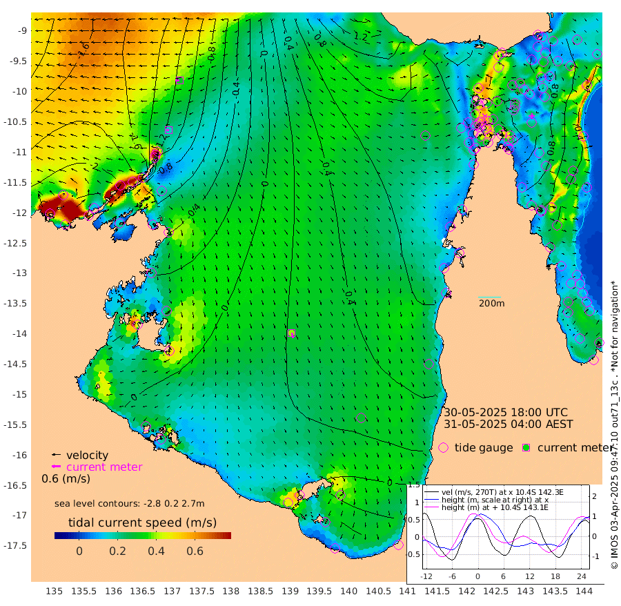 17cm/s -95T +3cm/s rms + 7cm/s -42T. ARA-GOC87 57m 39cm/s 164T +3cm/s rms + 2cm/s -2T. ARA-GOC87 60m 31cm/s -97T +2cm/s rms + 3cm/s 61T. ARA-GOC87 47m 104cm Daru 89cm Bobo Island 51cm Meer Island Barge 59cm Bramble Cay 85cm Unnamed Cay 83cm Pearce Cay 82cm Stephens Island 80cm Merrie England Shoals 98cm Mutacomal Reef 80cm Darnley Island Barge 55cm East Cay 92cm Yorke Island Barge 94cm Rennel Island 93cm Aureed Island 106cm Dungeness Reef 108cm Zagai Island 117cm Yam Island 122cm Dauan Island 116cm Saibai Island 115cm Phipi Reef 123cm Warrior Reef - West 100cm Mabuiag Island Barge 97cm Half Way Island 100cm Coconut Island 110cm Dugong Islet 109cm Poll Island 121cm Kirkcaldie Reef 115cm Suarji Island 115cm Sue Islet 95cm Hawkesbury Island 120cm Alert Patches 119cm Twin Island 89cm Badu Island 124cm St Pauls (Moa Island) 99cm Kubin (Moa Island) 113cm Ince Point 111cm Thursday Island 110cm Nardana Patches 105cm Turtle Head 85cm Round Island 88cm Goods Island 87cm Booby Island 78cm White Rocks Area 88cm Carpentaria 102cm Papou Point 84cm Bampfield Head 77cm Crab Island 90cm Red Wallis Island 102cm Packe Island 112cm Harrington Reef 108cm Herald Camp 40cm Sharp Point 94cm Red Island Point 98cm Possession Island 107cm Alpha Rock 115cm Frederick Point 96cm Wyborn Reef Light 100cm Tetley Island 55cm Triangle Reef 100cm Turtle Head Island 59cm Maclennan Cay 37cm Raine Island 85cm Mcsweeny Reef 76cm Collette Reef 55cm Shadwell Reef 76cm Hannibal Island 60cm Round Point 82cm Vrilya Point 63cm Cape Grenville 58cm Hicks Island 69cm Sir Charles Hardy Island 22cm Harvey Island 50cm Kay Reef 44cm Rocky Island 38cm Chapman Island 41cm Ham Reef 45cm Jubilee Reef 44cm Night Island 43cm Unnamed Reef No. 3 43cm Morris Island 44cm 1st 3 Mile Opening 48cm Creech Reef 49cm Fife Island 37cm Eden Reef 47cm Stanley Island 43cm Normanby River -217cm Yabooma Island -252cm Hutchison River -234cm Elcho Island -225cm North West Crocodile Island -130cm Cape Wessel -201cm Stevens Island -92cm Guluwuru Island -188cm Hopeful Bay -154cm Auster Point -152cm Two Island Bay -183cm Cadell Strait 7cm Mallison Island -98cm Melville Bay (Gove Harbour) -99cm Truant Island -60cm Cape Arnhem -53cm Cape Grey -55cm Hawk Island -59cm Milner Bay (Groote Eylandt) -44cm Cape Beatrice -17cm West Island -20cm Centre Island -5cm Mornington Island 2cm West Wellesley Islands -26cm Bountiful Island -95cm Albert River Mouth -113cm Sweers Island -70cm Karumba 41cm Nassau River Offshore 78cm Christmas Creek 69cm Archer River 79cm Boyd Point 73cm Weipa (Humbug Point) 67cm Pennefather River 81cm Cullen Point