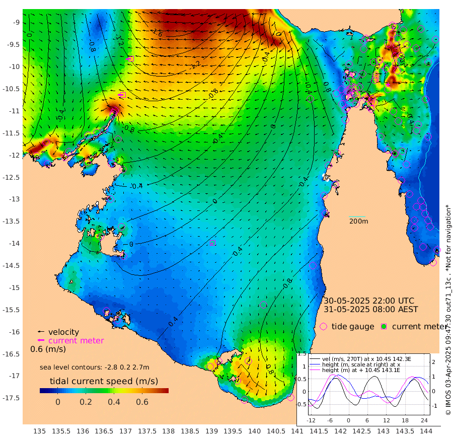 49cm/s -90T +3cm/s rms + 7cm/s -42T. ARA-GOC87 57m 18cm/s -140T +3cm/s rms + 2cm/s -2T. ARA-GOC87 60m 50cm/s -99T +2cm/s rms + 3cm/s 61T. ARA-GOC87 47m -29cm Daru -47cm Bobo Island -37cm Meer Island Barge -38cm Bramble Cay -37cm Unnamed Cay -45cm Pearce Cay -43cm Stephens Island -36cm Merrie England Shoals -27cm Mutacomal Reef -47cm Darnley Island Barge -34cm East Cay -44cm Yorke Island Barge -31cm Rennel Island -42cm Aureed Island -15cm Dungeness Reef -9cm Zagai Island 8cm Yam Island 45cm Dauan Island 29cm Saibai Island 65cm Phipi Reef 10cm Warrior Reef - West 42cm Mabuiag Island Barge -34cm Half Way Island -27cm Coconut Island -28cm Dugong Islet -11cm Poll Island -1cm Kirkcaldie Reef 14cm Suarji Island -16cm Sue Islet 83cm Hawkesbury Island 24cm Alert Patches 12cm Twin Island 84cm Badu Island 18cm St Pauls (Moa Island) 63cm Kubin (Moa Island) 38cm Ince Point 49cm Thursday Island 47cm Nardana Patches 70cm Turtle Head 69cm Round Island 88cm Goods Island 95cm Booby Island 89cm White Rocks Area 48cm Carpentaria 11cm Papou Point 67cm Bampfield Head 85cm Crab Island 90cm Red Wallis Island 82cm Packe Island -33cm Harrington Reef 93cm Herald Camp 9cm Sharp Point 66cm Red Island Point 31cm Possession Island -2cm Alpha Rock -8cm Frederick Point -38cm Wyborn Reef Light -33cm Tetley Island -27cm Triangle Reef -47cm Turtle Head Island -27cm Maclennan Cay -19cm Raine Island -39cm Mcsweeny Reef -36cm Collette Reef -27cm Shadwell Reef -41cm Hannibal Island -38cm Round Point 73cm Vrilya Point -30cm Cape Grenville -31cm Hicks Island -29cm Sir Charles Hardy Island -10cm Harvey Island -29cm Kay Reef -23cm Rocky Island -23cm Chapman Island -25cm Ham Reef -27cm Jubilee Reef -22cm Night Island -23cm Unnamed Reef No. 3 -26cm Morris Island -23cm 1st 3 Mile Opening -25cm Creech Reef -31cm Fife Island -35cm Eden Reef -27cm Stanley Island -36cm Normanby River -69cm Yabooma Island -87cm Hutchison River -71cm Elcho Island -56cm North West Crocodile Island -126cm Cape Wessel -102cm Stevens Island -145cm Guluwuru Island -85cm Hopeful Bay -111cm Auster Point -115cm Two Island Bay -131cm Cadell Strait -250cm Mallison Island -116cm Melville Bay (Gove Harbour) -135cm Truant Island -91cm Cape Arnhem -54cm Cape Grey -31cm Hawk Island -6cm Milner Bay (Groote Eylandt) 18cm Cape Beatrice 51cm West Island 51cm Centre Island 99cm Mornington Island 91cm West Wellesley Islands 135cm Bountiful Island 147cm Albert River Mouth 128cm Sweers Island 161cm Karumba 123cm Nassau River Offshore 111cm Christmas Creek 87cm Archer River 65cm Boyd Point 88cm Weipa (Humbug Point) 60cm Pennefather River 75cm Cullen Point