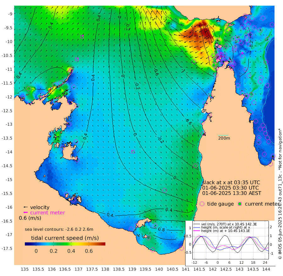 20cm/s 56T +3cm/s rms + 7cm/s -42T. ARA-GOC87 57m 18cm/s -46T +3cm/s rms + 2cm/s -2T. ARA-GOC87 60m 29cm/s 49T +2cm/s rms + 3cm/s 61T. ARA-GOC87 47m -37cm Daru -25cm Bobo Island -14cm Meer Island Barge -16cm Bramble Cay -33cm Unnamed Cay -22cm Pearce Cay -28cm Stephens Island -32cm Merrie England Shoals -42cm Mutacomal Reef -20cm Darnley Island Barge -19cm East Cay -27cm Yorke Island Barge -40cm Rennel Island -23cm Aureed Island -45cm Dungeness Reef -46cm Zagai Island -69cm Yam Island -57cm Dauan Island -56cm Saibai Island -51cm Phipi Reef -46cm Warrior Reef - West -94cm Mabuiag Island Barge -43cm Half Way Island -48cm Coconut Island -50cm Dugong Islet -57cm Poll Island -72cm Kirkcaldie Reef -71cm Suarji Island -58cm Sue Islet -181cm Hawkesbury Island -96cm Alert Patches -91cm Twin Island -147cm Badu Island -91cm St Pauls (Moa Island) -145cm Kubin (Moa Island) -110cm Ince Point -125cm Thursday Island -120cm Nardana Patches -135cm Turtle Head -159cm Round Island -162cm Goods Island -187cm Booby Island -175cm White Rocks Area -182cm Carpentaria -91cm Papou Point -210cm Bampfield Head -162cm Crab Island -178cm Red Wallis Island -155cm Packe Island -57cm Harrington Reef -195cm Herald Camp -21cm Sharp Point -131cm Red Island Point -116cm Possession Island -78cm Alpha Rock -75cm Frederick Point -48cm Wyborn Reef Light -54cm Tetley Island -20cm Triangle Reef -64cm Turtle Head Island -26cm Maclennan Cay -16cm Raine Island -29cm Mcsweeny Reef -24cm Collette Reef -17cm Shadwell Reef -21cm Hannibal Island -21cm Round Point -161cm Vrilya Point -26cm Cape Grenville -24cm Hicks Island -28cm Sir Charles Hardy Island -9cm Harvey Island -22cm Kay Reef -16cm Rocky Island -10cm Chapman Island -17cm Ham Reef -17cm Jubilee Reef -14cm Night Island -17cm Unnamed Reef No. 3 -16cm Morris Island -21cm 1st 3 Mile Opening -19cm Creech Reef -7cm Fife Island -6cm Eden Reef -19cm Stanley Island -14cm Normanby River 59cm Yabooma Island 83cm Hutchison River 77cm Elcho Island 70cm North West Crocodile Island 57cm Cape Wessel 80cm Stevens Island 79cm Guluwuru Island 74cm Hopeful Bay 59cm Auster Point 55cm Two Island Bay 100cm Cadell Strait 141cm Mallison Island 76cm Melville Bay (Gove Harbour) 72cm Truant Island 59cm Cape Arnhem 59cm Cape Grey 67cm Hawk Island 72cm Milner Bay (Groote Eylandt) 71cm Cape Beatrice 64cm West Island 61cm Centre Island 106cm Mornington Island 108cm West Wellesley Islands 136cm Bountiful Island 198cm Albert River Mouth 219cm Sweers Island 172cm Karumba 59cm Nassau River Offshore -1cm Christmas Creek -54cm Archer River -85cm Boyd Point -85cm Weipa (Humbug Point) -98cm Pennefather River -141cm Cullen Point