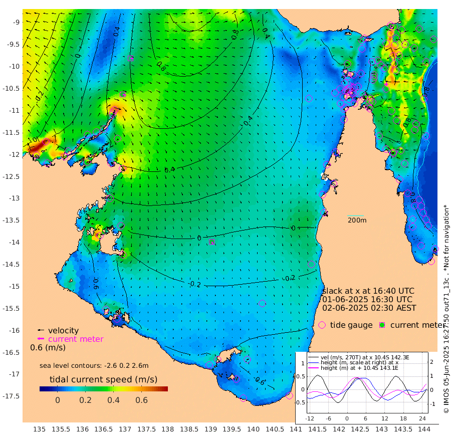 31cm/s 110T +3cm/s rms + 7cm/s -42T. ARA-GOC87 57m 28cm/s 162T +3cm/s rms + 2cm/s -2T. ARA-GOC87 60m 22cm/s 101T +2cm/s rms + 3cm/s 61T. ARA-GOC87 47m 76cm Daru 83cm Bobo Island 79cm Meer Island Barge 84cm Bramble Cay 81cm Unnamed Cay 88cm Pearce Cay 84cm Stephens Island 77cm Merrie England Shoals 74cm Mutacomal Reef 87cm Darnley Island Barge 85cm East Cay 83cm Yorke Island Barge 77cm Rennel Island 81cm Aureed Island 68cm Dungeness Reef 59cm Zagai Island 58cm Yam Island 62cm Dauan Island 63cm Saibai Island 43cm Phipi Reef 67cm Warrior Reef - West 42cm Mabuiag Island Barge 72cm Half Way Island 69cm Coconut Island 74cm Dugong Islet 61cm Poll Island 58cm Kirkcaldie Reef 45cm Suarji Island 63cm Sue Islet 67cm Hawkesbury Island 46cm Alert Patches 53cm Twin Island 52cm Badu Island 47cm St Pauls (Moa Island) 58cm Kubin (Moa Island) 46cm Ince Point 44cm Thursday Island 44cm Nardana Patches 50cm Turtle Head 51cm Round Island 54cm Goods Island 47cm Booby Island 45cm White Rocks Area 37cm Carpentaria 46cm Papou Point 66cm Bampfield Head 33cm Crab Island 50cm Red Wallis Island 58cm Packe Island 69cm Harrington Reef 68cm Herald Camp 4cm Sharp Point 43cm Red Island Point 43cm Possession Island 52cm Alpha Rock 62cm Frederick Point 77cm Wyborn Reef Light 75cm Tetley Island 76cm Triangle Reef 79cm Turtle Head Island 77cm Maclennan Cay 70cm Raine Island 79cm Mcsweeny Reef 78cm Collette Reef 74cm Shadwell Reef 83cm Hannibal Island 87cm Round Point 26cm Vrilya Point 77cm Cape Grenville 81cm Hicks Island 97cm Sir Charles Hardy Island 24cm Harvey Island 80cm Kay Reef 78cm Rocky Island 84cm Chapman Island 80cm Ham Reef 78cm Jubilee Reef 68cm Night Island 79cm Unnamed Reef No. 3 77cm Morris Island 72cm 1st 3 Mile Opening 77cm Creech Reef 82cm Fife Island 90cm Eden Reef 78cm Stanley Island 86cm Normanby River 51cm Yabooma Island 58cm Hutchison River 34cm Elcho Island 25cm North West Crocodile Island 79cm Cape Wessel 57cm Stevens Island 102cm Guluwuru Island 52cm Hopeful Bay 63cm Auster Point 69cm Two Island Bay 97cm Cadell Strait 232cm Mallison Island 78cm Melville Bay (Gove Harbour) 92cm Truant Island 57cm Cape Arnhem 10cm Cape Grey -11cm Hawk Island -65cm Milner Bay (Groote Eylandt) -72cm Cape Beatrice -116cm West Island -119cm Centre Island -102cm Mornington Island -97cm West Wellesley Islands -113cm Bountiful Island -169cm Albert River Mouth -184cm Sweers Island -160cm Karumba -50cm Nassau River Offshore -1cm Christmas Creek 22cm Archer River 38cm Boyd Point 36cm Weipa (Humbug Point) 14cm Pennefather River 36cm Cullen Point