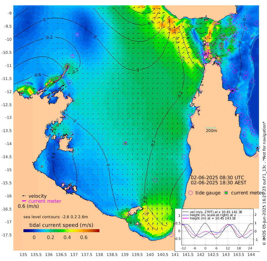 14cm/s -6T +3cm/s rms + 7cm/s -42T. ARA-GOC87 57m 29cm/s 12T +3cm/s rms + 2cm/s -2T. ARA-GOC87 60m 10cm/s 15T +2cm/s rms + 3cm/s 61T. ARA-GOC87 47m -9cm Daru -2cm Bobo Island -8cm Meer Island Barge -9cm Bramble Cay -5cm Unnamed Cay -11cm Pearce Cay 0cm Stephens Island -1cm Merrie England Shoals -10cm Mutacomal Reef -2cm Darnley Island Barge -9cm East Cay -4cm Yorke Island Barge -5cm Rennel Island -3cm Aureed Island -19cm Dungeness Reef -30cm Zagai Island -38cm Yam Island -95cm Dauan Island -79cm Saibai Island -91cm Phipi Reef -52cm Warrior Reef - West -67cm Mabuiag Island Barge -1cm Half Way Island -7cm Coconut Island -5cm Dugong Islet -21cm Poll Island -18cm Kirkcaldie Reef -26cm Suarji Island -19cm Sue Islet -118cm Hawkesbury Island -36cm Alert Patches -32cm Twin Island -112cm Badu Island -38cm St Pauls (Moa Island) -88cm Kubin (Moa Island) -52cm Ince Point -60cm Thursday Island -59cm Nardana Patches -83cm Turtle Head -83cm Round Island -103cm Goods Island -99cm Booby Island -92cm White Rocks Area -36cm Carpentaria -32cm Papou Point -79cm Bampfield Head -81cm Crab Island -96cm Red Wallis Island -97cm Packe Island 7cm Harrington Reef -105cm Herald Camp -6cm Sharp Point -76cm Red Island Point -42cm Possession Island -20cm Alpha Rock -18cm Frederick Point -5cm Wyborn Reef Light -9cm Tetley Island -18cm Triangle Reef 2cm Turtle Head Island -10cm Maclennan Cay -16cm Raine Island -1cm Mcsweeny Reef -4cm Collette Reef -12cm Shadwell Reef -2cm Hannibal Island -10cm Round Point -62cm Vrilya Point -4cm Cape Grenville -9cm Hicks Island -21cm Sir Charles Hardy Island 0cm Harvey Island -8cm Kay Reef -15cm Rocky Island -25cm Chapman Island -17cm Ham Reef -14cm Jubilee Reef -9cm Night Island -16cm Unnamed Reef No. 3 -11cm Morris Island -11cm 1st 3 Mile Opening -11cm Creech Reef -7cm Fife Island -17cm Eden Reef -9cm Stanley Island -8cm Normanby River -78cm Yabooma Island -83cm Hutchison River -64cm Elcho Island -68cm North West Crocodile Island -19cm Cape Wessel -52cm Stevens Island -19cm Guluwuru Island -52cm Hopeful Bay -29cm Auster Point -34cm Two Island Bay -73cm Cadell Strait -28cm Mallison Island -20cm Melville Bay (Gove Harbour) -17cm Truant Island -4cm Cape Arnhem 16cm Cape Grey 14cm Hawk Island 50cm Milner Bay (Groote Eylandt) 43cm Cape Beatrice 72cm West Island 74cm Centre Island 17cm Mornington Island 21cm West Wellesley Islands -10cm Bountiful Island 1cm Albert River Mouth 27cm Sweers Island -10cm Karumba -42cm Nassau River Offshore -65cm Christmas Creek -70cm Archer River -62cm Boyd Point -82cm Weipa (Humbug Point) -46cm Pennefather River -70cm Cullen Point