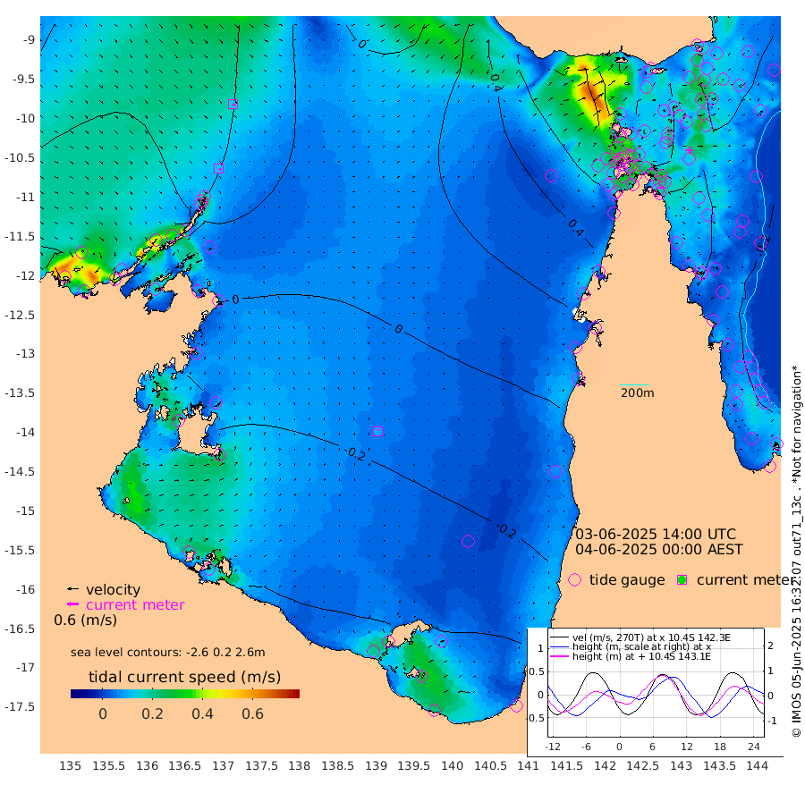 12cm/s 140T +3cm/s rms + 7cm/s -42T. ARA-GOC87 57m 9cm/s 17T +3cm/s rms + 2cm/s -2T. ARA-GOC87 60m 15cm/s 134T +2cm/s rms + 3cm/s 61T. ARA-GOC87 47m -27cm Daru -33cm Bobo Island -25cm Meer Island Barge -31cm Bramble Cay -26cm Unnamed Cay -35cm Pearce Cay -35cm Stephens Island -34cm Merrie England Shoals -24cm Mutacomal Reef -34cm Darnley Island Barge -31cm East Cay -29cm Yorke Island Barge -25cm Rennel Island -31cm Aureed Island -14cm Dungeness Reef 12cm Zagai Island 17cm Yam Island 47cm Dauan Island 42cm Saibai Island 29cm Phipi Reef 7cm Warrior Reef - West 60cm Mabuiag Island Barge -28cm Half Way Island -15cm Coconut Island -21cm Dugong Islet 1cm Poll Island -6cm Kirkcaldie Reef 24cm Suarji Island 1cm Sue Islet 104cm Hawkesbury Island 29cm Alert Patches 25cm Twin Island 96cm Badu Island 32cm St Pauls (Moa Island) 81cm Kubin (Moa Island) 47cm Ince Point 59cm Thursday Island 57cm Nardana Patches 72cm Turtle Head 96cm Round Island 98cm Goods Island 111cm Booby Island 109cm White Rocks Area 94cm Carpentaria 33cm Papou Point 139cm Bampfield Head 85cm Crab Island 100cm Red Wallis Island 79cm Packe Island -26cm Harrington Reef 110cm Herald Camp 2cm Sharp Point 54cm Red Island Point 52cm Possession Island 20cm Alpha Rock 3cm Frederick Point -13cm Wyborn Reef Light -7cm Tetley Island -16cm Triangle Reef -13cm Turtle Head Island -21cm Maclennan Cay -16cm Raine Island -31cm Mcsweeny Reef -30cm Collette Reef -21cm Shadwell Reef -35cm Hannibal Island -33cm Round Point 71cm Vrilya Point -30cm Cape Grenville -26cm Hicks Island -18cm Sir Charles Hardy Island -10cm Harvey Island -28cm Kay Reef -22cm Rocky Island -20cm Chapman Island -19cm Ham Reef -21cm Jubilee Reef -25cm Night Island -23cm Unnamed Reef No. 3 -25cm Morris Island -11cm 1st 3 Mile Opening -23cm Creech Reef -39cm Fife Island -28cm Eden Reef -26cm Stanley Island -33cm Normanby River 101cm Yabooma Island 106cm Hutchison River 91cm Elcho Island 85cm North West Crocodile Island 54cm Cape Wessel 76cm Stevens Island 33cm Guluwuru Island 68cm Hopeful Bay 65cm Auster Point 62cm Two Island Bay 56cm Cadell Strait -43cm Mallison Island 31cm Melville Bay (Gove Harbour) 38cm Truant Island 16cm Cape Arnhem 1cm Cape Grey -11cm Hawk Island -21cm Milner Bay (Groote Eylandt) -35cm Cape Beatrice -58cm West Island -53cm Centre Island -89cm Mornington Island -84cm West Wellesley Islands -86cm Bountiful Island -94cm Albert River Mouth -110cm Sweers Island -103cm Karumba -76cm Nassau River Offshore -43cm Christmas Creek 2cm Archer River 28cm Boyd Point 35cm Weipa (Humbug Point) 28cm Pennefather River 66cm Cullen Point