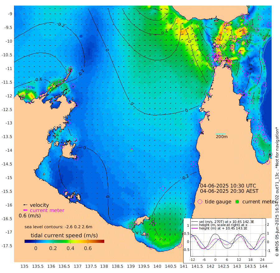 5cm/s -13T +3cm/s rms + 7cm/s -42T. ARA-GOC87 57m 19cm/s 19T +3cm/s rms + 2cm/s -2T. ARA-GOC87 60m 2cm/s 52T +2cm/s rms + 3cm/s 61T. ARA-GOC87 47m 43cm Daru 50cm Bobo Island 21cm Meer Island Barge 28cm Bramble Cay 42cm Unnamed Cay 43cm Pearce Cay 44cm Stephens Island 43cm Merrie England Shoals 43cm Mutacomal Reef 38cm Darnley Island Barge 24cm East Cay 42cm Yorke Island Barge 47cm Rennel Island 49cm Aureed Island 41cm Dungeness Reef 30cm Zagai Island 26cm Yam Island -31cm Dauan Island -22cm Saibai Island -18cm Phipi Reef 13cm Warrior Reef - West -8cm Mabuiag Island Barge 49cm Half Way Island 53cm Coconut Island 50cm Dugong Islet 41cm Poll Island 45cm Kirkcaldie Reef 46cm Suarji Island 36cm Sue Islet -40cm Hawkesbury Island 34cm Alert Patches 37cm Twin Island -31cm Badu Island 31cm St Pauls (Moa Island) -14cm Kubin (Moa Island) 17cm Ince Point 10cm Thursday Island 11cm Nardana Patches -7cm Turtle Head -13cm Round Island -24cm Goods Island -24cm Booby Island -15cm White Rocks Area 16cm Carpentaria 32cm Papou Point -1cm Bampfield Head -21cm Crab Island -23cm Red Wallis Island -20cm Packe Island 67cm Harrington Reef -32cm Herald Camp 10cm Sharp Point -6cm Red Island Point 25cm Possession Island 35cm Alpha Rock 46cm Frederick Point 48cm Wyborn Reef Light 46cm Tetley Island 16cm Triangle Reef 58cm Turtle Head Island 24cm Maclennan Cay 10cm Raine Island 42cm Mcsweeny Reef 35cm Collette Reef 16cm Shadwell Reef 39cm Hannibal Island 28cm Round Point -14cm Vrilya Point 30cm Cape Grenville 25cm Hicks Island 18cm Sir Charles Hardy Island 10cm Harvey Island 22cm Kay Reef 12cm Rocky Island 3cm Chapman Island 8cm Ham Reef 12cm Jubilee Reef 15cm Night Island 11cm Unnamed Reef No. 3 17cm Morris Island 17cm 1st 3 Mile Opening 17cm Creech Reef 12cm Fife Island 13cm Eden Reef 16cm Stanley Island 20cm Normanby River -73cm Yabooma Island -65cm Hutchison River -58cm Elcho Island -62cm North West Crocodile Island -23cm Cape Wessel -56cm Stevens Island -17cm Guluwuru Island -58cm Hopeful Bay -32cm Auster Point -41cm Two Island Bay -71cm Cadell Strait -77cm Mallison Island -22cm Melville Bay (Gove Harbour) -19cm Truant Island -8cm Cape Arnhem 6cm Cape Grey 1cm Hawk Island 21cm Milner Bay (Groote Eylandt) 18cm Cape Beatrice 36cm West Island 42cm Centre Island -4cm Mornington Island -2cm West Wellesley Islands -29cm Bountiful Island -34cm Albert River Mouth -26cm Sweers Island -40cm Karumba -38cm Nassau River Offshore -41cm Christmas Creek -36cm Archer River -24cm Boyd Point -38cm Weipa (Humbug Point) -14cm Pennefather River -24cm Cullen Point