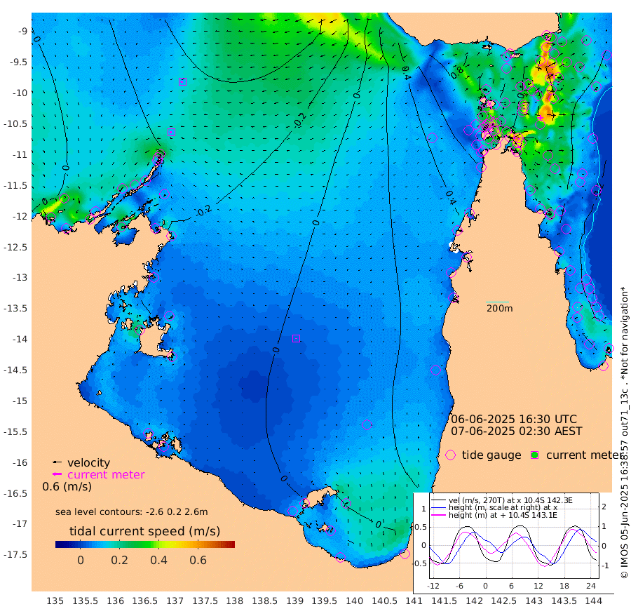 11cm/s -102T +3cm/s rms + 7cm/s -42T. ARA-GOC87 57m 4cm/s -175T +3cm/s rms + 2cm/s -2T. ARA-GOC87 60m 12cm/s -115T +2cm/s rms + 3cm/s 61T. ARA-GOC87 47m -34cm Daru -47cm Bobo Island -24cm Meer Island Barge -39cm Bramble Cay -37cm Unnamed Cay -48cm Pearce Cay -41cm Stephens Island -48cm Merrie England Shoals -39cm Mutacomal Reef -36cm Darnley Island Barge -32cm East Cay -34cm Yorke Island Barge -34cm Rennel Island -39cm Aureed Island -19cm Dungeness Reef 4cm Zagai Island 12cm Yam Island 64cm Dauan Island 53cm Saibai Island 42cm Phipi Reef 11cm Warrior Reef - West 54cm Mabuiag Island Barge -36cm Half Way Island -32cm Coconut Island -27cm Dugong Islet -11cm Poll Island -11cm Kirkcaldie Reef 13cm Suarji Island -5cm Sue Islet 80cm Hawkesbury Island 16cm Alert Patches 9cm Twin Island 80cm Badu Island 21cm St Pauls (Moa Island) 63cm Kubin (Moa Island) 35cm Ince Point 46cm Thursday Island 44cm Nardana Patches 62cm Turtle Head 69cm Round Island 82cm Goods Island 93cm Booby Island 86cm White Rocks Area 72cm Carpentaria 16cm Papou Point 98cm Bampfield Head 74cm Crab Island 82cm Red Wallis Island 62cm Packe Island -40cm Harrington Reef 95cm Herald Camp 3cm Sharp Point 45cm Red Island Point 29cm Possession Island 2cm Alpha Rock -13cm Frederick Point -36cm Wyborn Reef Light -31cm Tetley Island -21cm Triangle Reef -37cm Turtle Head Island -19cm Maclennan Cay -13cm Raine Island -37cm Mcsweeny Reef -36cm Collette Reef -21cm Shadwell Reef -44cm Hannibal Island -44cm Round Point 61cm Vrilya Point -35cm Cape Grenville -27cm Hicks Island -14cm Sir Charles Hardy Island -10cm Harvey Island -32cm Kay Reef -19cm Rocky Island -18cm Chapman Island -15cm Ham Reef -17cm Jubilee Reef -22cm Night Island -20cm Unnamed Reef No. 3 -23cm Morris Island -7cm 1st 3 Mile Opening -18cm Creech Reef -29cm Fife Island -26cm Eden Reef -22cm Stanley Island -32cm Normanby River 12cm Yabooma Island -4cm Hutchison River -5cm Elcho Island -4cm North West Crocodile Island -18cm Cape Wessel -17cm Stevens Island -23cm Guluwuru Island -15cm Hopeful Bay -13cm Auster Point -14cm Two Island Bay -24cm Cadell Strait -69cm Mallison Island -20cm Melville Bay (Gove Harbour) -20cm Truant Island -17cm Cape Arnhem -12cm Cape Grey -23cm Hawk Island -16cm Milner Bay (Groote Eylandt) -17cm Cape Beatrice -16cm West Island -18cm Centre Island -20cm Mornington Island -9cm West Wellesley Islands 4cm Bountiful Island -11cm Albert River Mouth -31cm Sweers Island -17cm Karumba 0cm Nassau River Offshore 21cm Christmas Creek 32cm Archer River 46cm Boyd Point 57cm Weipa (Humbug Point) 30cm Pennefather River 64cm Cullen Point