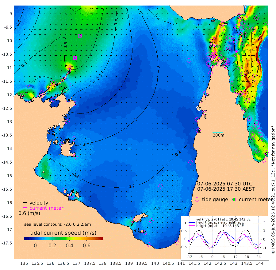 21cm/s 106T +3cm/s rms + 7cm/s -42T. ARA-GOC87 57m 7cm/s -6T +3cm/s rms + 2cm/s -2T. ARA-GOC87 60m 22cm/s 97T +2cm/s rms + 3cm/s 61T. ARA-GOC87 47m -44cm Daru -37cm Bobo Island 12cm Meer Island Barge 4cm Bramble Cay -22cm Unnamed Cay -28cm Pearce Cay -17cm Stephens Island -12cm Merrie England Shoals -43cm Mutacomal Reef -11cm Darnley Island Barge 12cm East Cay -30cm Yorke Island Barge -35cm Rennel Island -43cm Aureed Island -59cm Dungeness Reef -82cm Zagai Island -91cm Yam Island -92cm Dauan Island -86cm Saibai Island -85cm Phipi Reef -90cm Warrior Reef - West -71cm Mabuiag Island Barge -41cm Half Way Island -52cm Coconut Island -57cm Dugong Islet -74cm Poll Island -70cm Kirkcaldie Reef -96cm Suarji Island -68cm Sue Islet -32cm Hawkesbury Island -74cm Alert Patches -82cm Twin Island -38cm Badu Island -93cm St Pauls (Moa Island) -56cm Kubin (Moa Island) -74cm Ince Point -68cm Thursday Island -71cm Nardana Patches -54cm Turtle Head -41cm Round Island -31cm Goods Island -22cm Booby Island -30cm White Rocks Area -23cm Carpentaria -77cm Papou Point -16cm Bampfield Head -10cm Crab Island -33cm Red Wallis Island -52cm Packe Island -59cm Harrington Reef -47cm Herald Camp -34cm Sharp Point -43cm Red Island Point -59cm Possession Island -73cm Alpha Rock -70cm Frederick Point -43cm Wyborn Reef Light -51cm Tetley Island -2cm Triangle Reef -34cm Turtle Head Island 0cm Maclennan Cay 26cm Raine Island -20cm Mcsweeny Reef -8cm Collette Reef 13cm Shadwell Reef -5cm Hannibal Island 7cm Round Point -3cm Vrilya Point 4cm Cape Grenville 6cm Hicks Island -2cm Sir Charles Hardy Island 0cm Harvey Island 20cm Kay Reef 20cm Rocky Island 26cm Chapman Island 25cm Ham Reef 22cm Jubilee Reef 14cm Night Island 24cm Unnamed Reef No. 3 24cm Morris Island 22cm 1st 3 Mile Opening 20cm Creech Reef 26cm Fife Island 33cm Eden Reef 26cm Stanley Island 24cm Normanby River 97cm Yabooma Island 114cm Hutchison River 104cm Elcho Island 93cm North West Crocodile Island 65cm Cape Wessel 101cm Stevens Island 66cm Guluwuru Island 98cm Hopeful Bay 81cm Auster Point 75cm Two Island Bay 105cm Cadell Strait 119cm Mallison Island 64cm Melville Bay (Gove Harbour) 66cm Truant Island 41cm Cape Arnhem 29cm Cape Grey 20cm Hawk Island 1cm Milner Bay (Groote Eylandt) -7cm Cape Beatrice -37cm West Island -37cm Centre Island -33cm Mornington Island -38cm West Wellesley Islands -40cm Bountiful Island -25cm Albert River Mouth -5cm Sweers Island -24cm Karumba -37cm Nassau River Offshore -34cm Christmas Creek -4cm Archer River -11cm Boyd Point -9cm Weipa (Humbug Point) 10cm Pennefather River -17cm Cullen Point