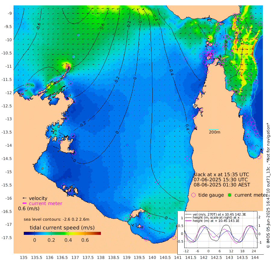 16cm/s -94T +3cm/s rms + 7cm/s -42T. ARA-GOC87 57m 6cm/s 155T +3cm/s rms + 2cm/s -2T. ARA-GOC87 60m 18cm/s -106T +2cm/s rms + 3cm/s 61T. ARA-GOC87 47m -1cm Daru -11cm Bobo Island -21cm Meer Island Barge -32cm Bramble Cay -18cm Unnamed Cay -14cm Pearce Cay -19cm Stephens Island -32cm Merrie England Shoals -12cm Mutacomal Reef -17cm Darnley Island Barge -27cm East Cay -5cm Yorke Island Barge -4cm Rennel Island 0cm Aureed Island 22cm Dungeness Reef 50cm Zagai Island 54cm Yam Island 96cm Dauan Island 86cm Saibai Island 82cm Phipi Reef 56cm Warrior Reef - West 85cm Mabuiag Island Barge -3cm Half Way Island 10cm Coconut Island 12cm Dugong Islet 34cm Poll Island 33cm Kirkcaldie Reef 71cm Suarji Island 37cm Sue Islet 91cm Hawkesbury Island 65cm Alert Patches 59cm Twin Island 96cm Badu Island 73cm St Pauls (Moa Island) 84cm Kubin (Moa Island) 75cm Ince Point 83cm Thursday Island 82cm Nardana Patches 89cm Turtle Head 84cm Round Island 94cm Goods Island 103cm Booby Island 98cm White Rocks Area 92cm Carpentaria 62cm Papou Point 107cm Bampfield Head 82cm Crab Island 94cm Red Wallis Island 80cm Packe Island 9cm Harrington Reef 104cm Herald Camp 21cm Sharp Point 74cm Red Island Point 69cm Possession Island 41cm Alpha Rock 35cm Frederick Point -5cm Wyborn Reef Light 3cm Tetley Island -12cm Triangle Reef 1cm Turtle Head Island -10cm Maclennan Cay -18cm Raine Island -14cm Mcsweeny Reef -20cm Collette Reef -19cm Shadwell Reef -28cm Hannibal Island -36cm Round Point 73cm Vrilya Point -28cm Cape Grenville -21cm Hicks Island -11cm Sir Charles Hardy Island -6cm Harvey Island -33cm Kay Reef -22cm Rocky Island -24cm Chapman Island -20cm Ham Reef -20cm Jubilee Reef -21cm Night Island -23cm Unnamed Reef No. 3 -26cm Morris Island -9cm 1st 3 Mile Opening -18cm Creech Reef -32cm Fife Island -34cm Eden Reef -27cm Stanley Island -36cm Normanby River -78cm Yabooma Island -98cm Hutchison River -91cm Elcho Island -86cm North West Crocodile Island -69cm Cape Wessel -100cm Stevens Island -68cm Guluwuru Island -93cm Hopeful Bay -71cm Auster Point -76cm Two Island Bay -102cm Cadell Strait -158cm Mallison Island -65cm Melville Bay (Gove Harbour) -65cm Truant Island -42cm Cape Arnhem -26cm Cape Grey -34cm Hawk Island -18cm Milner Bay (Groote Eylandt) -16cm Cape Beatrice 4cm West Island 5cm Centre Island -7cm Mornington Island 3cm West Wellesley Islands 4cm Bountiful Island -26cm Albert River Mouth -41cm Sweers Island -24cm Karumba 7cm Nassau River Offshore 28cm Christmas Creek 36cm Archer River 53cm Boyd Point 57cm Weipa (Humbug Point) 40cm Pennefather River 71cm Cullen Point