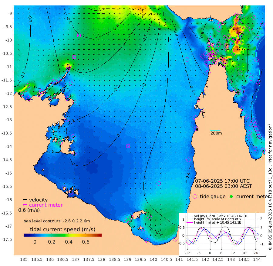 18cm/s -92T +3cm/s rms + 7cm/s -42T. ARA-GOC87 57m 7cm/s -170T +3cm/s rms + 2cm/s -2T. ARA-GOC87 60m 19cm/s -103T +2cm/s rms + 3cm/s 61T. ARA-GOC87 47m -34cm Daru -48cm Bobo Island -23cm Meer Island Barge -41cm Bramble Cay -40cm Unnamed Cay -47cm Pearce Cay -40cm Stephens Island -50cm Merrie England Shoals -43cm Mutacomal Reef -35cm Darnley Island Barge -29cm East Cay -33cm Yorke Island Barge -34cm Rennel Island -38cm Aureed Island -18cm Dungeness Reef 2cm Zagai Island 11cm Yam Island 63cm Dauan Island 51cm Saibai Island 45cm Phipi Reef 12cm Warrior Reef - West 51cm Mabuiag Island Barge -35cm Half Way Island -34cm Coconut Island -26cm Dugong Islet -13cm Poll Island -9cm Kirkcaldie Reef 13cm Suarji Island -6cm Sue Islet 77cm Hawkesbury Island 15cm Alert Patches 8cm Twin Island 76cm Badu Island 20cm St Pauls (Moa Island) 60cm Kubin (Moa Island) 33cm Ince Point 45cm Thursday Island 43cm Nardana Patches 61cm Turtle Head 64cm Round Island 80cm Goods Island 91cm Booby Island 83cm White Rocks Area 69cm Carpentaria 15cm Papou Point 89cm Bampfield Head 74cm Crab Island 79cm Red Wallis Island 60cm Packe Island -39cm Harrington Reef 93cm Herald Camp 4cm Sharp Point 48cm Red Island Point 28cm Possession Island -2cm Alpha Rock -14cm Frederick Point -42cm Wyborn Reef Light -37cm Tetley Island -22cm Triangle Reef -40cm Turtle Head Island -17cm Maclennan Cay -11cm Raine Island -37cm Mcsweeny Reef -36cm Collette Reef -21cm Shadwell Reef -45cm Hannibal Island -45cm Round Point 63cm Vrilya Point -35cm Cape Grenville -25cm Hicks Island -13cm Sir Charles Hardy Island -9cm Harvey Island -32cm Kay Reef -17cm Rocky Island -17cm Chapman Island -14cm Ham Reef -15cm Jubilee Reef -20cm Night Island -18cm Unnamed Reef No. 3 -21cm Morris Island -5cm 1st 3 Mile Opening -15cm Creech Reef -25cm Fife Island -25cm Eden Reef -21cm Stanley Island -30cm Normanby River -19cm Yabooma Island -40cm Hutchison River -37cm Elcho Island -33cm North West Crocodile Island -45cm Cape Wessel -51cm Stevens Island -47cm Guluwuru Island -45cm Hopeful Bay -40cm Auster Point -41cm Two Island Bay -54cm Cadell Strait -109cm Mallison Island -43cm Melville Bay (Gove Harbour) -45cm Truant Island -32cm Cape Arnhem -19cm Cape Grey -28cm Hawk Island -15cm Milner Bay (Groote Eylandt) -12cm Cape Beatrice -1cm West Island -5cm Centre Island 2cm Mornington Island 11cm West Wellesley Islands 29cm Bountiful Island 11cm Albert River Mouth -8cm Sweers Island 10cm Karumba 22cm Nassau River Offshore 39cm Christmas Creek 42cm Archer River 51cm Boyd Point 64cm Weipa (Humbug Point) 34cm Pennefather River 66cm Cullen Point
