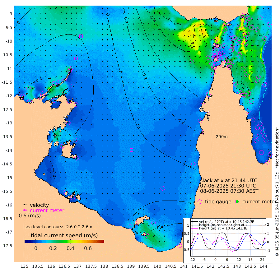 7cm/s -26T +3cm/s rms + 7cm/s -42T. ARA-GOC87 57m 8cm/s -139T +3cm/s rms + 2cm/s -2T. ARA-GOC87 60m 7cm/s -23T +2cm/s rms + 3cm/s 61T. ARA-GOC87 47m 42cm Daru 42cm Bobo Island 39cm Meer Island Barge 56cm Bramble Cay 53cm Unnamed Cay 39cm Pearce Cay 47cm Stephens Island 60cm Merrie England Shoals 53cm Mutacomal Reef 42cm Darnley Island Barge 49cm East Cay 36cm Yorke Island Barge 40cm Rennel Island 33cm Aureed Island 22cm Dungeness Reef 2cm Zagai Island 9cm Yam Island -24cm Dauan Island -18cm Saibai Island -16cm Phipi Reef 8cm Warrior Reef - West -35cm Mabuiag Island Barge 36cm Half Way Island 26cm Coconut Island 31cm Dugong Islet 12cm Poll Island 16cm Kirkcaldie Reef -14cm Suarji Island 8cm Sue Islet -53cm Hawkesbury Island -21cm Alert Patches -12cm Twin Island -52cm Badu Island -22cm St Pauls (Moa Island) -38cm Kubin (Moa Island) -28cm Ince Point -38cm Thursday Island -35cm Nardana Patches -41cm Turtle Head -45cm Round Island -54cm Goods Island -72cm Booby Island -60cm White Rocks Area -77cm Carpentaria -18cm Papou Point -77cm Bampfield Head -63cm Crab Island -59cm Red Wallis Island -34cm Packe Island 29cm Harrington Reef -50cm Herald Camp -5cm Sharp Point -35cm Red Island Point -35cm Possession Island 4cm Alpha Rock 7cm Frederick Point 40cm Wyborn Reef Light 33cm Tetley Island 32cm Triangle Reef 19cm Turtle Head Island 36cm Maclennan Cay 34cm Raine Island 43cm Mcsweeny Reef 45cm Collette Reef 38cm Shadwell Reef 54cm Hannibal Island 57cm Round Point -69cm Vrilya Point 51cm Cape Grenville 45cm Hicks Island 52cm Sir Charles Hardy Island 14cm Harvey Island 54cm Kay Reef 43cm Rocky Island 42cm Chapman Island 38cm Ham Reef 39cm Jubilee Reef 36cm Night Island 40cm Unnamed Reef No. 3 44cm Morris Island 28cm 1st 3 Mile Opening 37cm Creech Reef 46cm Fife Island 51cm Eden Reef 45cm Stanley Island 55cm Normanby River 47cm Yabooma Island 57cm Hutchison River 49cm Elcho Island 50cm North West Crocodile Island 37cm Cape Wessel 54cm Stevens Island 44cm Guluwuru Island 50cm Hopeful Bay 29cm Auster Point 35cm Two Island Bay 54cm Cadell Strait 126cm Mallison Island 39cm Melville Bay (Gove Harbour) 35cm Truant Island 23cm Cape Arnhem 15cm Cape Grey 19cm Hawk Island 10cm Milner Bay (Groote Eylandt) 17cm Cape Beatrice 9cm West Island 1cm Centre Island 41cm Mornington Island 38cm West Wellesley Islands 63cm Bountiful Island 74cm Albert River Mouth 60cm Sweers Island 68cm Karumba 46cm Nassau River Offshore 28cm Christmas Creek -7cm Archer River -25cm Boyd Point -19cm Weipa (Humbug Point) -47cm Pennefather River -50cm Cullen Point