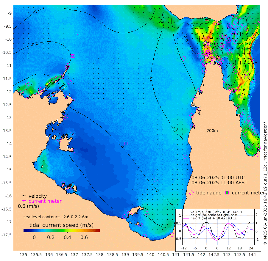9cm/s -24T +3cm/s rms + 7cm/s -42T. ARA-GOC87 57m 5cm/s -10T +3cm/s rms + 2cm/s -2T. ARA-GOC87 60m 9cm/s -22T +2cm/s rms + 3cm/s 61T. ARA-GOC87 47m 11cm Daru 13cm Bobo Island -31cm Meer Island Barge -19cm Bramble Cay -5cm Unnamed Cay 6cm Pearce Cay -7cm Stephens Island -5cm Merrie England Shoals 15cm Mutacomal Reef -12cm Darnley Island Barge -32cm East Cay 1cm Yorke Island Barge 2cm Rennel Island 13cm Aureed Island 12cm Dungeness Reef 25cm Zagai Island 25cm Yam Island 5cm Dauan Island 7cm Saibai Island 3cm Phipi Reef 26cm Warrior Reef - West -7cm Mabuiag Island Barge 10cm Half Way Island 14cm Coconut Island 15cm Dugong Islet 25cm Poll Island 15cm Kirkcaldie Reef 22cm Suarji Island 16cm Sue Islet -67cm Hawkesbury Island 4cm Alert Patches 16cm Twin Island -61cm Badu Island 21cm St Pauls (Moa Island) -35cm Kubin (Moa Island) -3cm Ince Point -15cm Thursday Island -11cm Nardana Patches -40cm Turtle Head -53cm Round Island -71cm Goods Island -84cm Booby Island -72cm White Rocks Area -64cm Carpentaria 12cm Papou Point -103cm Bampfield Head -73cm Crab Island -64cm Red Wallis Island -38cm Packe Island 21cm Harrington Reef -70cm Herald Camp 16cm Sharp Point -37cm Red Island Point -15cm Possession Island 21cm Alpha Rock 18cm Frederick Point 14cm Wyborn Reef Light 18cm Tetley Island -19cm Triangle Reef 1cm Turtle Head Island -28cm Maclennan Cay -47cm Raine Island -5cm Mcsweeny Reef -13cm Collette Reef -33cm Shadwell Reef -13cm Hannibal Island -20cm Round Point -66cm Vrilya Point -22cm Cape Grenville -30cm Hicks Island -35cm Sir Charles Hardy Island -7cm Harvey Island -36cm Kay Reef -41cm Rocky Island -44cm Chapman Island -45cm Ham Reef -43cm Jubilee Reef -30cm Night Island -42cm Unnamed Reef No. 3 -43cm Morris Island -51cm 1st 3 Mile Opening -43cm Creech Reef -36cm Fife Island -49cm Eden Reef -44cm Stanley Island -39cm Normanby River -50cm Yabooma Island -56cm Hutchison River -43cm Elcho Island -35cm North West Crocodile Island -17cm Cape Wessel -31cm Stevens Island -26cm Guluwuru Island -34cm Hopeful Bay -31cm Auster Point -20cm Two Island Bay -34cm Cadell Strait -19cm Mallison Island -22cm Melville Bay (Gove Harbour) -24cm Truant Island -12cm Cape Arnhem -8cm Cape Grey 12cm Hawk Island 28cm Milner Bay (Groote Eylandt) 32cm Cape Beatrice 55cm West Island 54cm Centre Island 44cm Mornington Island 43cm West Wellesley Islands 33cm Bountiful Island 56cm Albert River Mouth 59cm Sweers Island 51cm Karumba 22cm Nassau River Offshore -9cm Christmas Creek -44cm Archer River -49cm Boyd Point -60cm Weipa (Humbug Point) -49cm Pennefather River -56cm Cullen Point