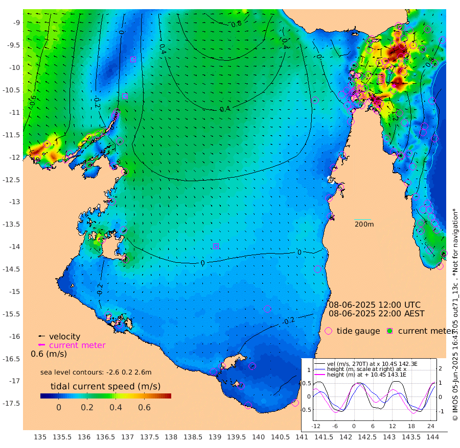 14cm/s 111T +3cm/s rms + 7cm/s -42T. ARA-GOC87 57m 10cm/s 140T +3cm/s rms + 2cm/s -2T. ARA-GOC87 60m 11cm/s 106T +2cm/s rms + 3cm/s 61T. ARA-GOC87 47m 111cm Daru 122cm Bobo Island 71cm Meer Island Barge 93cm Bramble Cay 109cm Unnamed Cay 118cm Pearce Cay 105cm Stephens Island 111cm Merrie England Shoals 116cm Mutacomal Reef 98cm Darnley Island Barge 81cm East Cay 106cm Yorke Island Barge 110cm Rennel Island 116cm Aureed Island 106cm Dungeness Reef 96cm Zagai Island 87cm Yam Island 48cm Dauan Island 58cm Saibai Island 67cm Phipi Reef 90cm Warrior Reef - West 53cm Mabuiag Island Barge 104cm Half Way Island 122cm Coconut Island 107cm Dugong Islet 103cm Poll Island 102cm Kirkcaldie Reef 106cm Suarji Island 100cm Sue Islet 40cm Hawkesbury Island 98cm Alert Patches 99cm Twin Island 45cm Badu Island 90cm St Pauls (Moa Island) 48cm Kubin (Moa Island) 75cm Ince Point 66cm Thursday Island 68cm Nardana Patches 56cm Turtle Head 50cm Round Island 39cm Goods Island 28cm Booby Island 35cm White Rocks Area 34cm Carpentaria 84cm Papou Point 58cm Bampfield Head 19cm Crab Island 30cm Red Wallis Island 46cm Packe Island 126cm Harrington Reef 32cm Herald Camp 22cm Sharp Point 56cm Red Island Point 82cm Possession Island 92cm Alpha Rock 110cm Frederick Point 121cm Wyborn Reef Light 119cm Tetley Island 74cm Triangle Reef 123cm Turtle Head Island 72cm Maclennan Cay 55cm Raine Island 104cm Mcsweeny Reef 99cm Collette Reef 71cm Shadwell Reef 107cm Hannibal Island 98cm Round Point 15cm Vrilya Point 87cm Cape Grenville 80cm Hicks Island 81cm Sir Charles Hardy Island 26cm Harvey Island 80cm Kay Reef 65cm Rocky Island 65cm Chapman Island 60cm Ham Reef 62cm Jubilee Reef 59cm Night Island 64cm Unnamed Reef No. 3 67cm Morris Island 58cm 1st 3 Mile Opening 64cm Creech Reef 61cm Fife Island 70cm Eden Reef 65cm Stanley Island 72cm Normanby River -45cm Yabooma Island -24cm Hutchison River -35cm Elcho Island -43cm North West Crocodile Island 10cm Cape Wessel -20cm Stevens Island 33cm Guluwuru Island -20cm Hopeful Bay -2cm Auster Point -17cm Two Island Bay -14cm Cadell Strait 71cm Mallison Island 19cm Melville Bay (Gove Harbour) 26cm Truant Island 20cm Cape Arnhem 8cm Cape Grey 1cm Hawk Island -26cm Milner Bay (Groote Eylandt) -29cm Cape Beatrice -44cm West Island -36cm Centre Island -40cm Mornington Island -43cm West Wellesley Islands -63cm Bountiful Island -99cm Albert River Mouth -97cm Sweers Island -90cm Karumba -33cm Nassau River Offshore -7cm Christmas Creek 10cm Archer River 17cm Boyd Point 8cm Weipa (Humbug Point) 15cm Pennefather River 11cm Cullen Point