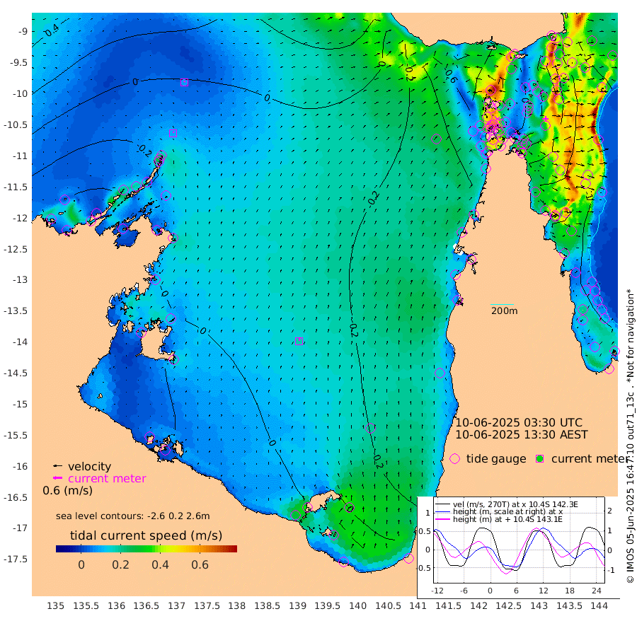 9cm/s 13T +3cm/s rms + 7cm/s -42T. ARA-GOC87 57m 19cm/s 8T +3cm/s rms + 2cm/s -2T. ARA-GOC87 60m 9cm/s 28T +2cm/s rms + 3cm/s 61T. ARA-GOC87 47m -78cm Daru -75cm Bobo Island -87cm Meer Island Barge -96cm Bramble Cay -94cm Unnamed Cay -81cm Pearce Cay -90cm Stephens Island -96cm Merrie England Shoals -80cm Mutacomal Reef -87cm Darnley Island Barge -97cm East Cay -77cm Yorke Island Barge -83cm Rennel Island -67cm Aureed Island -71cm Dungeness Reef -38cm Zagai Island -46cm Yam Island -33cm Dauan Island -28cm Saibai Island -59cm Phipi Reef -44cm Warrior Reef - West -35cm Mabuiag Island Barge -74cm Half Way Island -68cm Coconut Island -70cm Dugong Islet -50cm Poll Island -67cm Kirkcaldie Reef -43cm Suarji Island -51cm Sue Islet -96cm Hawkesbury Island -56cm Alert Patches -47cm Twin Island -83cm Badu Island -37cm St Pauls (Moa Island) -73cm Kubin (Moa Island) -50cm Ince Point -54cm Thursday Island -53cm Nardana Patches -75cm Turtle Head -89cm Round Island -92cm Goods Island -89cm Booby Island -83cm White Rocks Area -48cm Carpentaria -42cm Papou Point -114cm Bampfield Head -74cm Crab Island -74cm Red Wallis Island -77cm Packe Island -70cm Harrington Reef -104cm Herald Camp 0cm Sharp Point -74cm Red Island Point -65cm Possession Island -39cm Alpha Rock -57cm Frederick Point -74cm Wyborn Reef Light -67cm Tetley Island -73cm Triangle Reef -84cm Turtle Head Island -85cm Maclennan Cay -88cm Raine Island -83cm Mcsweeny Reef -87cm Collette Reef -87cm Shadwell Reef -96cm Hannibal Island -99cm Round Point -57cm Vrilya Point -95cm Cape Grenville -96cm Hicks Island -103cm Sir Charles Hardy Island -29cm Harvey Island -101cm Kay Reef -94cm Rocky Island -91cm Chapman Island -88cm Ham Reef -90cm Jubilee Reef -78cm Night Island -87cm Unnamed Reef No. 3 -96cm Morris Island -94cm 1st 3 Mile Opening -92cm Creech Reef -83cm Fife Island -107cm Eden Reef -98cm Stanley Island -101cm Normanby River -52cm Yabooma Island -69cm Hutchison River -45cm Elcho Island -40cm North West Crocodile Island -12cm Cape Wessel -31cm Stevens Island -33cm Guluwuru Island -36cm Hopeful Bay -25cm Auster Point -19cm Two Island Bay -41cm Cadell Strait -29cm Mallison Island -26cm Melville Bay (Gove Harbour) -25cm Truant Island -11cm Cape Arnhem -4cm Cape Grey 8cm Hawk Island 43cm Milner Bay (Groote Eylandt) 39cm Cape Beatrice 67cm West Island 66cm Centre Island 22cm Mornington Island 30cm West Wellesley Islands 3cm Bountiful Island 39cm Albert River Mouth 52cm Sweers Island 21cm Karumba -15cm Nassau River Offshore -49cm Christmas Creek -65cm Archer River -60cm Boyd Point -75cm Weipa (Humbug Point) -47cm Pennefather River -57cm Cullen Point