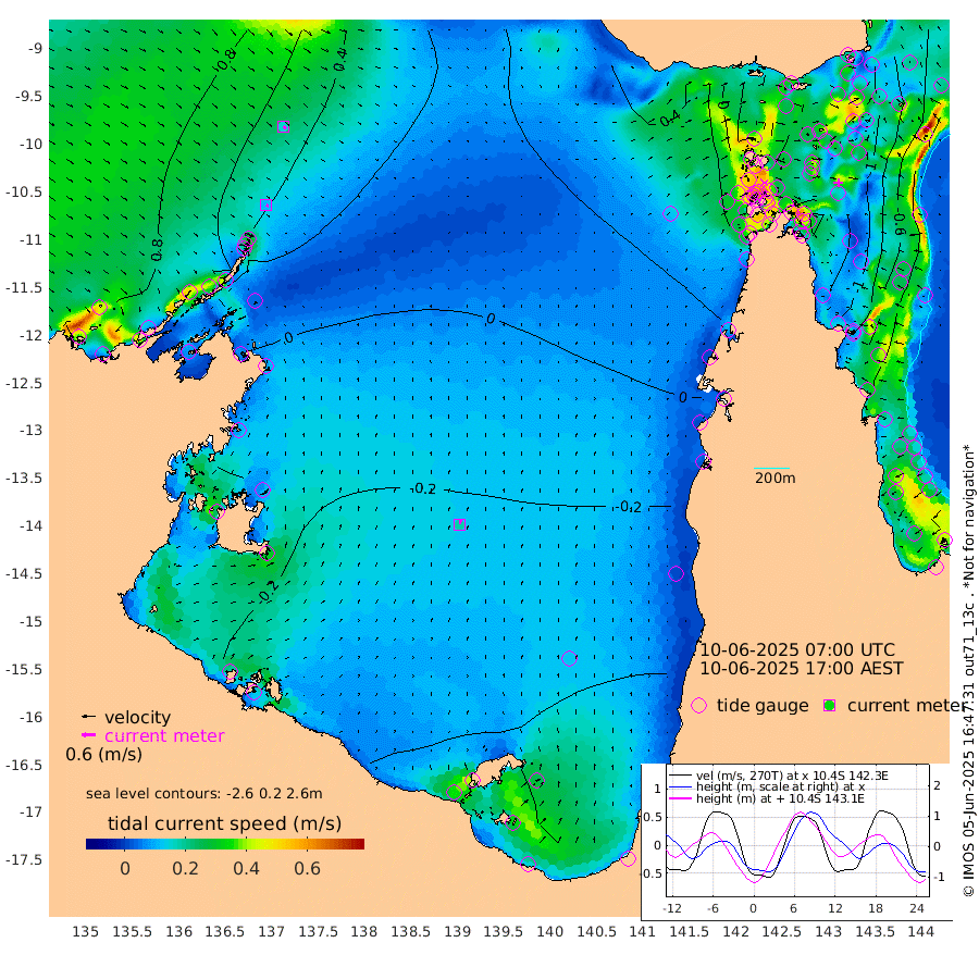 11cm/s 127T +3cm/s rms + 7cm/s -42T. ARA-GOC87 57m 18cm/s 9T +3cm/s rms + 2cm/s -2T. ARA-GOC87 60m 15cm/s 125T +2cm/s rms + 3cm/s 61T. ARA-GOC87 47m -116cm Daru -113cm Bobo Island -46cm Meer Island Barge -75cm Bramble Cay -101cm Unnamed Cay -102cm Pearce Cay -87cm Stephens Island -98cm Merrie England Shoals -123cm Mutacomal Reef -81cm Darnley Island Barge -56cm East Cay -98cm Yorke Island Barge -102cm Rennel Island -108cm Aureed Island -113cm Dungeness Reef -120cm Zagai Island -120cm Yam Island -107cm Dauan Island -113cm Saibai Island -124cm Phipi Reef -133cm Warrior Reef - West -76cm Mabuiag Island Barge -96cm Half Way Island -115cm Coconut Island -108cm Dugong Islet -114cm Poll Island -113cm Kirkcaldie Reef -122cm Suarji Island -114cm Sue Islet -13cm Hawkesbury Island -100cm Alert Patches -104cm Twin Island -31cm Badu Island -105cm St Pauls (Moa Island) -36cm Kubin (Moa Island) -78cm Ince Point -61cm Thursday Island -66cm Nardana Patches -45cm Turtle Head -23cm Round Island -6cm Goods Island 24cm Booby Island 9cm White Rocks Area 40cm Carpentaria -88cm Papou Point 23cm Bampfield Head 28cm Crab Island 12cm Red Wallis Island -29cm Packe Island -116cm Harrington Reef -7cm Herald Camp -37cm Sharp Point -46cm Red Island Point -64cm Possession Island -102cm Alpha Rock -110cm Frederick Point -115cm Wyborn Reef Light -117cm Tetley Island -57cm Triangle Reef -93cm Turtle Head Island -50cm Maclennan Cay -26cm Raine Island -90cm Mcsweeny Reef -84cm Collette Reef -51cm Shadwell Reef -90cm Hannibal Island -74cm Round Point 41cm Vrilya Point -66cm Cape Grenville -57cm Hicks Island -67cm Sir Charles Hardy Island -19cm Harvey Island -54cm Kay Reef -41cm Rocky Island -40cm Chapman Island -33cm Ham Reef -35cm Jubilee Reef -34cm Night Island -35cm Unnamed Reef No. 3 -38cm Morris Island -25cm 1st 3 Mile Opening -34cm Creech Reef -35cm Fife Island -36cm Eden Reef -36cm Stanley Island -43cm Normanby River 81cm Yabooma Island 77cm Hutchison River 82cm Elcho Island 75cm North West Crocodile Island 38cm Cape Wessel 63cm Stevens Island 8cm Guluwuru Island 60cm Hopeful Bay 55cm Auster Point 64cm Two Island Bay 56cm Cadell Strait -59cm Mallison Island 14cm Melville Bay (Gove Harbour) 19cm Truant Island 6cm Cape Arnhem -2cm Cape Grey -8cm Hawk Island 1cm Milner Bay (Groote Eylandt) -9cm Cape Beatrice -18cm West Island -17cm Centre Island -63cm Mornington Island -64cm West Wellesley Islands -87cm Bountiful Island -63cm Albert River Mouth -54cm Sweers Island -69cm Karumba -71cm Nassau River Offshore -63cm Christmas Creek -22cm Archer River -7cm Boyd Point -7cm Weipa (Humbug Point) 24cm Pennefather River 22cm Cullen Point