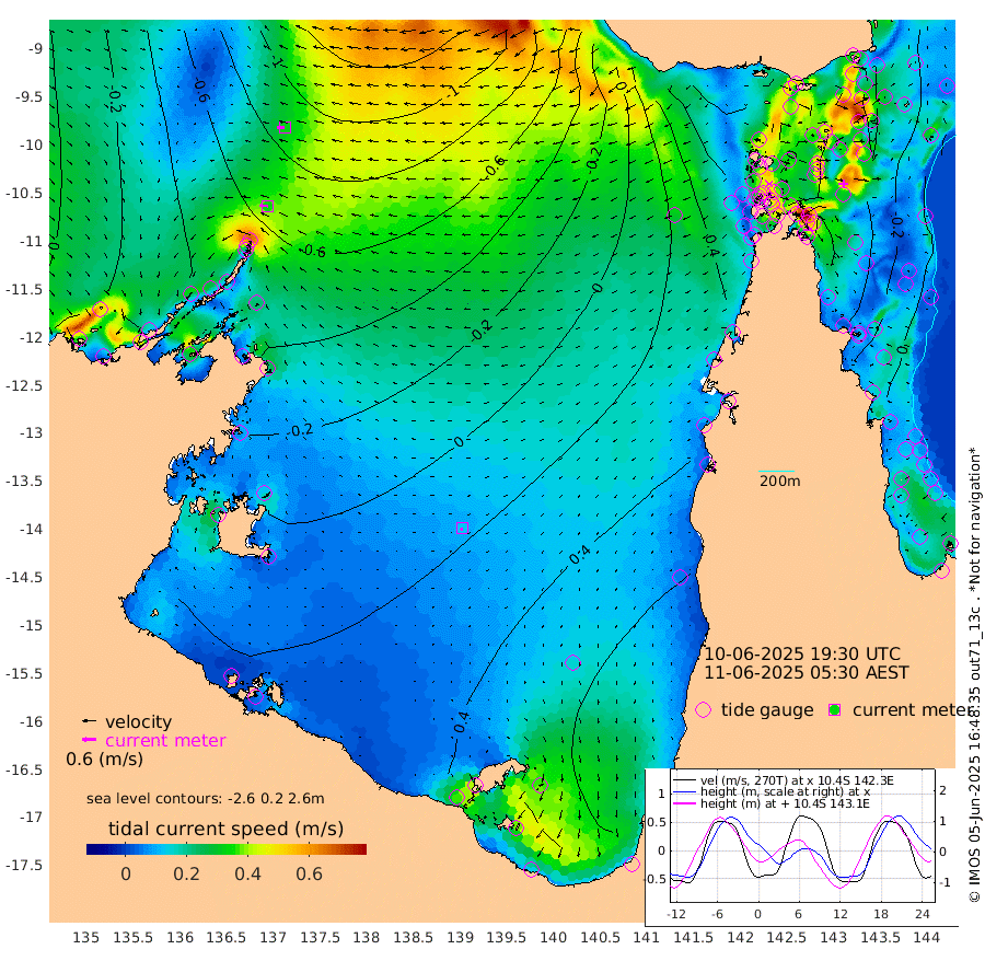 34cm/s -85T +3cm/s rms + 7cm/s -42T. ARA-GOC87 57m 13cm/s -142T +3cm/s rms + 2cm/s -2T. ARA-GOC87 60m 33cm/s -92T +2cm/s rms + 3cm/s 61T. ARA-GOC87 47m -40cm Daru -48cm Bobo Island -8cm Meer Island Barge -26cm Bramble Cay -38cm Unnamed Cay -42cm Pearce Cay -30cm Stephens Island -43cm Merrie England Shoals -50cm Mutacomal Reef -28cm Darnley Island Barge -7cm East Cay -35cm Yorke Island Barge -35cm Rennel Island -41cm Aureed Island -28cm Dungeness Reef -34cm Zagai Island -20cm Yam Island 13cm Dauan Island 2cm Saibai Island 20cm Phipi Reef -19cm Warrior Reef - West 4cm Mabuiag Island Barge -36cm Half Way Island -47cm Coconut Island -35cm Dugong Islet -38cm Poll Island -24cm Kirkcaldie Reef -23cm Suarji Island -33cm Sue Islet 46cm Hawkesbury Island -19cm Alert Patches -27cm Twin Island 37cm Badu Island -22cm St Pauls (Moa Island) 25cm Kubin (Moa Island) -5cm Ince Point 6cm Thursday Island 4cm Nardana Patches 28cm Turtle Head 33cm Round Island 48cm Goods Island 57cm Booby Island 46cm White Rocks Area 27cm Carpentaria -18cm Papou Point 45cm Bampfield Head 51cm Crab Island 46cm Red Wallis Island 31cm Packe Island -47cm Harrington Reef 68cm Herald Camp -8cm Sharp Point 33cm Red Island Point 0cm Possession Island -39cm Alpha Rock -37cm Frederick Point -58cm Wyborn Reef Light -58cm Tetley Island -16cm Triangle Reef -50cm Turtle Head Island -3cm Maclennan Cay 7cm Raine Island -35cm Mcsweeny Reef -31cm Collette Reef -10cm Shadwell Reef -36cm Hannibal Island -29cm Round Point 41cm Vrilya Point -18cm Cape Grenville -7cm Hicks Island -1cm Sir Charles Hardy Island -3cm Harvey Island -11cm Kay Reef 3cm Rocky Island 1cm Chapman Island 4cm Ham Reef 2cm Jubilee Reef -2cm Night Island 1cm Unnamed Reef No. 3 1cm Morris Island 8cm 1st 3 Mile Opening 4cm Creech Reef -2cm Fife Island 1cm Eden Reef 1cm Stanley Island -2cm Normanby River -27cm Yabooma Island -47cm Hutchison River -41cm Elcho Island -30cm North West Crocodile Island -74cm Cape Wessel -70cm Stevens Island -81cm Guluwuru Island -52cm Hopeful Bay -62cm Auster Point -59cm Two Island Bay -66cm Cadell Strait -180cm Mallison Island -67cm Melville Bay (Gove Harbour) -79cm Truant Island -54cm Cape Arnhem -25cm Cape Grey -23cm Hawk Island -7cm Milner Bay (Groote Eylandt) 7cm Cape Beatrice 28cm West Island 24cm Centre Island 64cm Mornington Island 61cm West Wellesley Islands 106cm Bountiful Island 93cm Albert River Mouth 84cm Sweers Island 108cm Karumba 83cm Nassau River Offshore 79cm Christmas Creek 61cm Archer River 49cm Boyd Point 67cm Weipa (Humbug Point) 30cm Pennefather River 48cm Cullen Point