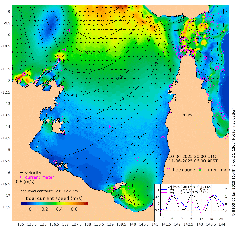 31cm/s -84T +3cm/s rms + 7cm/s -42T. ARA-GOC87 57m 13cm/s -130T +3cm/s rms + 2cm/s -2T. ARA-GOC87 60m 29cm/s -91T +2cm/s rms + 3cm/s 61T. ARA-GOC87 47m -34cm Daru -41cm Bobo Island -1cm Meer Island Barge -15cm Bramble Cay -28cm Unnamed Cay -35cm Pearce Cay -22cm Stephens Island -31cm Merrie England Shoals -42cm Mutacomal Reef -20cm Darnley Island Barge 1cm East Cay -30cm Yorke Island Barge -29cm Rennel Island -37cm Aureed Island -27cm Dungeness Reef -39cm Zagai Island -25cm Yam Island -2cm Dauan Island -12cm Saibai Island 11cm Phipi Reef -26cm Warrior Reef - West -10cm Mabuiag Island Barge -30cm Half Way Island -45cm Coconut Island -31cm Dugong Islet -39cm Poll Island -24cm Kirkcaldie Reef -33cm Suarji Island -36cm Sue Islet 30cm Hawkesbury Island -29cm Alert Patches -35cm Twin Island 22cm Badu Island -33cm St Pauls (Moa Island) 11cm Kubin (Moa Island) -17cm Ince Point -7cm Thursday Island -10cm Nardana Patches 13cm Turtle Head 18cm Round Island 32cm Goods Island 37cm Booby Island 29cm White Rocks Area 4cm Carpentaria -26cm Papou Point 23cm Bampfield Head 34cm Crab Island 26cm Red Wallis Island 16cm Packe Island -44cm Harrington Reef 48cm Herald Camp -11cm Sharp Point 21cm Red Island Point -11cm Possession Island -44cm Alpha Rock -40cm Frederick Point -53cm Wyborn Reef Light -54cm Tetley Island -12cm Triangle Reef -45cm Turtle Head Island 2cm Maclennan Cay 13cm Raine Island -28cm Mcsweeny Reef -23cm Collette Reef -3cm Shadwell Reef -25cm Hannibal Island -18cm Round Point 24cm Vrilya Point -9cm Cape Grenville 1cm Hicks Island 5cm Sir Charles Hardy Island -1cm Harvey Island -1cm Kay Reef 11cm Rocky Island 7cm Chapman Island 10cm Ham Reef 9cm Jubilee Reef 4cm Night Island 7cm Unnamed Reef No. 3 9cm Morris Island 14cm 1st 3 Mile Opening 10cm Creech Reef 5cm Fife Island 11cm Eden Reef 10cm Stanley Island 8cm Normanby River 1cm Yabooma Island -11cm Hutchison River -10cm Elcho Island 0cm North West Crocodile Island -56cm Cape Wessel -41cm Stevens Island -61cm Guluwuru Island -26cm Hopeful Bay -42cm Auster Point -38cm Two Island Bay -36cm Cadell Strait -156cm Mallison Island -49cm Melville Bay (Gove Harbour) -61cm Truant Island -43cm Cape Arnhem -15cm Cape Grey -15cm Hawk Island -1cm Milner Bay (Groote Eylandt) 13cm Cape Beatrice 29cm West Island 25cm Centre Island 70cm Mornington Island 66cm West Wellesley Islands 117cm Bountiful Island 112cm Albert River Mouth 102cm Sweers Island 124cm Karumba 86cm Nassau River Offshore 76cm Christmas Creek 54cm Archer River 37cm Boyd Point 57cm Weipa (Humbug Point) 19cm Pennefather River 31cm Cullen Point