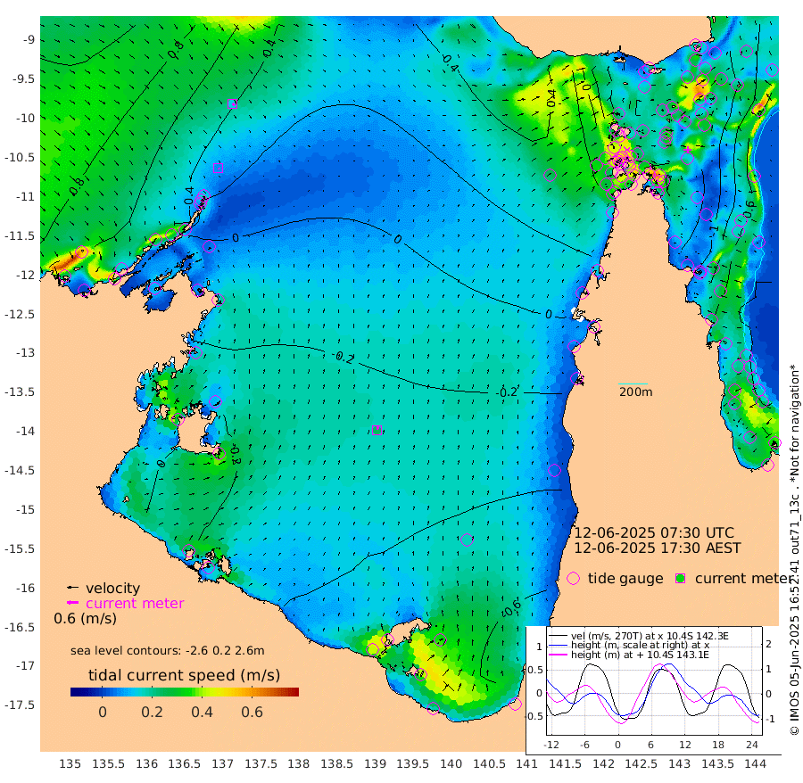 7cm/s 132T +3cm/s rms + 7cm/s -42T. ARA-GOC87 57m 24cm/s 13T +3cm/s rms + 2cm/s -2T. ARA-GOC87 60m 14cm/s 134T +2cm/s rms + 3cm/s 61T. ARA-GOC87 47m -132cm Daru -123cm Bobo Island -61cm Meer Island Barge -92cm Bramble Cay -120cm Unnamed Cay -115cm Pearce Cay -102cm Stephens Island -117cm Merrie England Shoals -138cm Mutacomal Reef -97cm Darnley Island Barge -69cm East Cay -112cm Yorke Island Barge -115cm Rennel Island -115cm Aureed Island -126cm Dungeness Reef -125cm Zagai Island -126cm Yam Island -122cm Dauan Island -119cm Saibai Island -147cm Phipi Reef -142cm Warrior Reef - West -80cm Mabuiag Island Barge -108cm Half Way Island -122cm Coconut Island -119cm Dugong Islet -121cm Poll Island -122cm Kirkcaldie Reef -122cm Suarji Island -122cm Sue Islet -29cm Hawkesbury Island -106cm Alert Patches -106cm Twin Island -41cm Badu Island -109cm St Pauls (Moa Island) -46cm Kubin (Moa Island) -82cm Ince Point -65cm Thursday Island -70cm Nardana Patches -53cm Turtle Head -39cm Round Island -15cm Goods Island 20cm Booby Island 10cm White Rocks Area 56cm Carpentaria -88cm Papou Point 13cm Bampfield Head 23cm Crab Island 13cm Red Wallis Island -37cm Packe Island -122cm Harrington Reef -24cm Herald Camp -37cm Sharp Point -49cm Red Island Point -74cm Possession Island -104cm Alpha Rock -115cm Frederick Point -129cm Wyborn Reef Light -128cm Tetley Island -67cm Triangle Reef -112cm Turtle Head Island -61cm Maclennan Cay -39cm Raine Island -105cm Mcsweeny Reef -101cm Collette Reef -68cm Shadwell Reef -108cm Hannibal Island -92cm Round Point 39cm Vrilya Point -81cm Cape Grenville -73cm Hicks Island -80cm Sir Charles Hardy Island -24cm Harvey Island -69cm Kay Reef -55cm Rocky Island -52cm Chapman Island -44cm Ham Reef -49cm Jubilee Reef -47cm Night Island -45cm Unnamed Reef No. 3 -52cm Morris Island -40cm 1st 3 Mile Opening -47cm Creech Reef -47cm Fife Island -52cm Eden Reef -52cm Stanley Island -57cm Normanby River 54cm Yabooma Island 48cm Hutchison River 60cm Elcho Island 54cm North West Crocodile Island 34cm Cape Wessel 39cm Stevens Island -8cm Guluwuru Island 35cm Hopeful Bay 38cm Auster Point 44cm Two Island Bay 25cm Cadell Strait -102cm Mallison Island -3cm Melville Bay (Gove Harbour) 3cm Truant Island -4cm Cape Arnhem -7cm Cape Grey -17cm Hawk Island 5cm Milner Bay (Groote Eylandt) -4cm Cape Beatrice -2cm West Island -1cm Centre Island -69cm Mornington Island -67cm West Wellesley Islands -98cm Bountiful Island -76cm Albert River Mouth -72cm Sweers Island -88cm Karumba -85cm Nassau River Offshore -78cm Christmas Creek -35cm Archer River -14cm Boyd Point -19cm Weipa (Humbug Point) 14cm Pennefather River 19cm Cullen Point