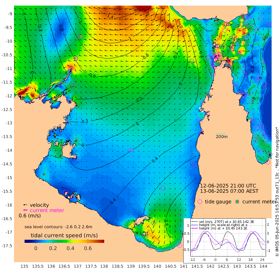 39cm/s -85T +3cm/s rms + 7cm/s -42T. ARA-GOC87 57m 15cm/s -124T +3cm/s rms + 2cm/s -2T. ARA-GOC87 60m 36cm/s -91T +2cm/s rms + 3cm/s 61T. ARA-GOC87 47m -40cm Daru -44cm Bobo Island -6cm Meer Island Barge -21cm Bramble Cay -36cm Unnamed Cay -35cm Pearce Cay -27cm Stephens Island -38cm Merrie England Shoals -48cm Mutacomal Reef -27cm Darnley Island Barge -2cm East Cay -36cm Yorke Island Barge -34cm Rennel Island -38cm Aureed Island -28cm Dungeness Reef -43cm Zagai Island -29cm Yam Island -8cm Dauan Island -21cm Saibai Island 16cm Phipi Reef -28cm Warrior Reef - West -16cm Mabuiag Island Barge -34cm Half Way Island -46cm Coconut Island -36cm Dugong Islet -41cm Poll Island -28cm Kirkcaldie Reef -30cm Suarji Island -43cm Sue Islet 32cm Hawkesbury Island -28cm Alert Patches -35cm Twin Island 19cm Badu Island -34cm St Pauls (Moa Island) 14cm Kubin (Moa Island) -17cm Ince Point -7cm Thursday Island -9cm Nardana Patches 15cm Turtle Head 25cm Round Island 34cm Goods Island 39cm Booby Island 31cm White Rocks Area 3cm Carpentaria -28cm Papou Point 26cm Bampfield Head 36cm Crab Island 31cm Red Wallis Island 24cm Packe Island -45cm Harrington Reef 57cm Herald Camp -11cm Sharp Point 24cm Red Island Point -4cm Possession Island -49cm Alpha Rock -41cm Frederick Point -59cm Wyborn Reef Light -60cm Tetley Island -14cm Triangle Reef -51cm Turtle Head Island -2cm Maclennan Cay 7cm Raine Island -35cm Mcsweeny Reef -29cm Collette Reef -10cm Shadwell Reef -32cm Hannibal Island -21cm Round Point 25cm Vrilya Point -13cm Cape Grenville -4cm Hicks Island -3cm Sir Charles Hardy Island -2cm Harvey Island -7cm Kay Reef 6cm Rocky Island 4cm Chapman Island 5cm Ham Reef 1cm Jubilee Reef 2cm Night Island 3cm Unnamed Reef No. 3 4cm Morris Island 7cm 1st 3 Mile Opening 5cm Creech Reef 0cm Fife Island 6cm Eden Reef 3cm Stanley Island 3cm Normanby River -16cm Yabooma Island -28cm Hutchison River -23cm Elcho Island -10cm North West Crocodile Island -77cm Cape Wessel -61cm Stevens Island -92cm Guluwuru Island -39cm Hopeful Bay -60cm Auster Point -55cm Two Island Bay -60cm Cadell Strait -222cm Mallison Island -71cm Melville Bay (Gove Harbour) -87cm Truant Island -59cm Cape Arnhem -28cm Cape Grey -13cm Hawk Island 1cm Milner Bay (Groote Eylandt) 18cm Cape Beatrice 40cm West Island 41cm Centre Island 93cm Mornington Island 82cm West Wellesley Islands 137cm Bountiful Island 137cm Albert River Mouth 134cm Sweers Island 158cm Karumba 107cm Nassau River Offshore 91cm Christmas Creek 63cm Archer River 40cm Boyd Point 62cm Weipa (Humbug Point) 24cm Pennefather River 37cm Cullen Point