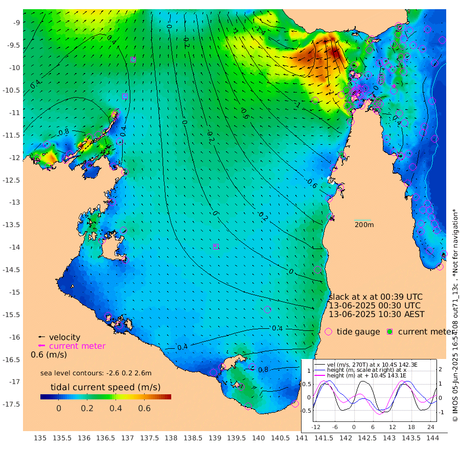 12cm/s 41T +3cm/s rms + 7cm/s -42T. ARA-GOC87 57m 16cm/s -55T +3cm/s rms + 2cm/s -2T. ARA-GOC87 60m 20cm/s 41T +2cm/s rms + 3cm/s 61T. ARA-GOC87 47m 29cm Daru 31cm Bobo Island 14cm Meer Island Barge 31cm Bramble Cay 34cm Unnamed Cay 31cm Pearce Cay 27cm Stephens Island 37cm Merrie England Shoals 33cm Mutacomal Reef 25cm Darnley Island Barge 16cm East Cay 25cm Yorke Island Barge 21cm Rennel Island 21cm Aureed Island 19cm Dungeness Reef 1cm Zagai Island -2cm Yam Island -27cm Dauan Island -26cm Saibai Island 5cm Phipi Reef 3cm Warrior Reef - West -49cm Mabuiag Island Barge 23cm Half Way Island 12cm Coconut Island 17cm Dugong Islet 3cm Poll Island 6cm Kirkcaldie Reef -18cm Suarji Island 2cm Sue Islet -108cm Hawkesbury Island -33cm Alert Patches -29cm Twin Island -90cm Badu Island -30cm St Pauls (Moa Island) -85cm Kubin (Moa Island) -52cm Ince Point -69cm Thursday Island -64cm Nardana Patches -82cm Turtle Head -96cm Round Island -111cm Goods Island -143cm Booby Island -129cm White Rocks Area -166cm Carpentaria -29cm Papou Point -165cm Bampfield Head -123cm Crab Island -139cm Red Wallis Island -103cm Packe Island 14cm Harrington Reef -130cm Herald Camp -3cm Sharp Point -66cm Red Island Point -54cm Possession Island -21cm Alpha Rock -10cm Frederick Point 19cm Wyborn Reef Light 13cm Tetley Island 4cm Triangle Reef 14cm Turtle Head Island 5cm Maclennan Cay 1cm Raine Island 22cm Mcsweeny Reef 23cm Collette Reef 12cm Shadwell Reef 32cm Hannibal Island 26cm Round Point -128cm Vrilya Point 19cm Cape Grenville 16cm Hicks Island 7cm Sir Charles Hardy Island 5cm Harvey Island 16cm Kay Reef 9cm Rocky Island 3cm Chapman Island -2cm Ham Reef 5cm Jubilee Reef 4cm Night Island -2cm Unnamed Reef No. 3 9cm Morris Island -1cm 1st 3 Mile Opening 2cm Creech Reef 3cm Fife Island 15cm Eden Reef 9cm Stanley Island 18cm Normanby River 85cm Yabooma Island 109cm Hutchison River 92cm Elcho Island 96cm North West Crocodile Island 40cm Cape Wessel 87cm Stevens Island 60cm Guluwuru Island 77cm Hopeful Bay 55cm Auster Point 58cm Two Island Bay 103cm Cadell Strait 58cm Mallison Island 59cm Melville Bay (Gove Harbour) 48cm Truant Island 36cm Cape Arnhem 51cm Cape Grey 56cm Hawk Island 60cm Milner Bay (Groote Eylandt) 62cm Cape Beatrice 59cm West Island 55cm Centre Island 105cm Mornington Island 100cm West Wellesley Islands 152cm Bountiful Island 196cm Albert River Mouth 209cm Sweers Island 186cm Karumba 73cm Nassau River Offshore 18cm Christmas Creek -36cm Archer River -72cm Boyd Point -67cm Weipa (Humbug Point) -78cm Pennefather River -117cm Cullen Point
