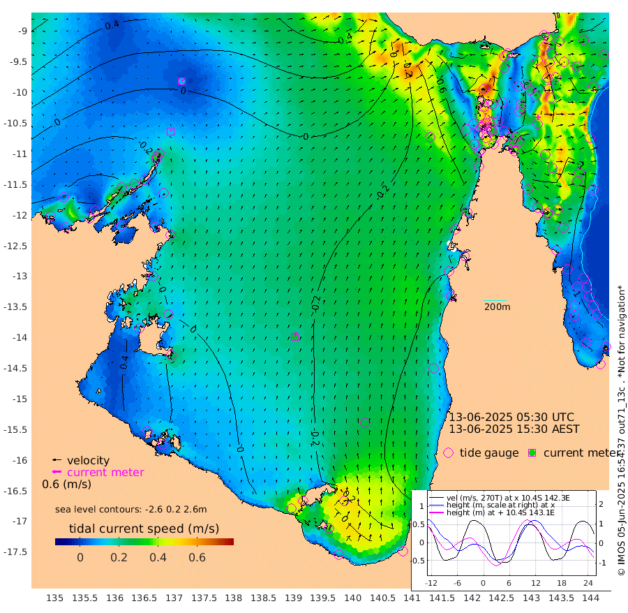 13cm/s 16T +3cm/s rms + 7cm/s -42T. ARA-GOC87 57m 29cm/s 13T +3cm/s rms + 2cm/s -2T. ARA-GOC87 60m 12cm/s 41T +2cm/s rms + 3cm/s 61T. ARA-GOC87 47m -104cm Daru -98cm Bobo Island -95cm Meer Island Barge -108cm Bramble Cay -114cm Unnamed Cay -108cm Pearce Cay -110cm Stephens Island -112cm Merrie England Shoals -106cm Mutacomal Reef -103cm Darnley Island Barge -103cm East Cay -99cm Yorke Island Barge -107cm Rennel Island -94cm Aureed Island -106cm Dungeness Reef -72cm Zagai Island -86cm Yam Island -79cm Dauan Island -56cm Saibai Island -108cm Phipi Reef -86cm Warrior Reef - West -58cm Mabuiag Island Barge -103cm Half Way Island -94cm Coconut Island -103cm Dugong Islet -87cm Poll Island -99cm Kirkcaldie Reef -80cm Suarji Island -76cm Sue Islet -124cm Hawkesbury Island -87cm Alert Patches -82cm Twin Island -106cm Badu Island -76cm St Pauls (Moa Island) -110cm Kubin (Moa Island) -83cm Ince Point -85cm Thursday Island -85cm Nardana Patches -106cm Turtle Head -117cm Round Island -118cm Goods Island -106cm Booby Island -102cm White Rocks Area -44cm Carpentaria -71cm Papou Point -124cm Bampfield Head -85cm Crab Island -97cm Red Wallis Island -116cm Packe Island -99cm Harrington Reef -138cm Herald Camp -11cm Sharp Point -92cm Red Island Point -94cm Possession Island -66cm Alpha Rock -88cm Frederick Point -97cm Wyborn Reef Light -92cm Tetley Island -85cm Triangle Reef -111cm Turtle Head Island -96cm Maclennan Cay -88cm Raine Island -100cm Mcsweeny Reef -100cm Collette Reef -92cm Shadwell Reef -110cm Hannibal Island -112cm Round Point -62cm Vrilya Point -104cm Cape Grenville -106cm Hicks Island -112cm Sir Charles Hardy Island -33cm Harvey Island -101cm Kay Reef -96cm Rocky Island -91cm Chapman Island -85cm Ham Reef -90cm Jubilee Reef -85cm Night Island -85cm Unnamed Reef No. 3 -98cm Morris Island -97cm 1st 3 Mile Opening -94cm Creech Reef -84cm Fife Island -111cm Eden Reef -100cm Stanley Island -105cm Normanby River -63cm Yabooma Island -81cm Hutchison River -52cm Elcho Island -50cm North West Crocodile Island -5cm Cape Wessel -33cm Stevens Island -27cm Guluwuru Island -37cm Hopeful Bay -23cm Auster Point -27cm Two Island Bay -53cm Cadell Strait 10cm Mallison Island -22cm Melville Bay (Gove Harbour) -19cm Truant Island -7cm Cape Arnhem 9cm Cape Grey 9cm Hawk Island 52cm Milner Bay (Groote Eylandt) 44cm Cape Beatrice 75cm West Island 72cm Centre Island 8cm Mornington Island 18cm West Wellesley Islands -12cm Bountiful Island 16cm Albert River Mouth 41cm Sweers Island -4cm Karumba -44cm Nassau River Offshore -76cm Christmas Creek -78cm Archer River -71cm Boyd Point -91cm Weipa (Humbug Point) -53cm Pennefather River -70cm Cullen Point
