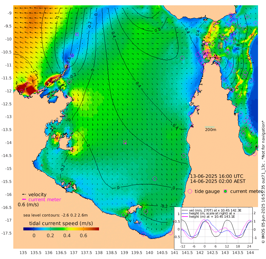 4cm/s -176T +3cm/s rms + 7cm/s -42T. ARA-GOC87 57m 35cm/s 164T +3cm/s rms + 2cm/s -2T. ARA-GOC87 60m 13cm/s -99T +2cm/s rms + 3cm/s 61T. ARA-GOC87 47m 121cm Daru 106cm Bobo Island 50cm Meer Island Barge 70cm Bramble Cay 102cm Unnamed Cay 95cm Pearce Cay 86cm Stephens Island 97cm Merrie England Shoals 124cm Mutacomal Reef 84cm Darnley Island Barge 55cm East Cay 102cm Yorke Island Barge 106cm Rennel Island 105cm Aureed Island 118cm Dungeness Reef 136cm Zagai Island 138cm Yam Island 155cm Dauan Island 151cm Saibai Island 141cm Phipi Reef 151cm Warrior Reef - West 126cm Mabuiag Island Barge 99cm Half Way Island 122cm Coconut Island 115cm Dugong Islet 129cm Poll Island 125cm Kirkcaldie Reef 141cm Suarji Island 133cm Sue Islet 108cm Hawkesbury Island 140cm Alert Patches 139cm Twin Island 108cm Badu Island 144cm St Pauls (Moa Island) 114cm Kubin (Moa Island) 130cm Ince Point 123cm Thursday Island 125cm Nardana Patches 117cm Turtle Head 110cm Round Island 96cm Goods Island 85cm Booby Island 83cm White Rocks Area 77cm Carpentaria 118cm Papou Point 111cm Bampfield Head 69cm Crab Island 92cm Red Wallis Island 116cm Packe Island 121cm Harrington Reef 117cm Herald Camp 44cm Sharp Point 92cm Red Island Point 116cm Possession Island 136cm Alpha Rock 134cm Frederick Point 129cm Wyborn Reef Light 134cm Tetley Island 66cm Triangle Reef 113cm Turtle Head Island 56cm Maclennan Cay 35cm Raine Island 96cm Mcsweeny Reef 89cm Collette Reef 61cm Shadwell Reef 89cm Hannibal Island 74cm Round Point 61cm Vrilya Point 68cm Cape Grenville 59cm Hicks Island 74cm Sir Charles Hardy Island 20cm Harvey Island 55cm Kay Reef 44cm Rocky Island 46cm Chapman Island 42cm Ham Reef 43cm Jubilee Reef 43cm Night Island 43cm Unnamed Reef No. 3 41cm Morris Island 39cm 1st 3 Mile Opening 43cm Creech Reef 47cm Fife Island 36cm Eden Reef 43cm Stanley Island 38cm Normanby River -130cm Yabooma Island -146cm Hutchison River -143cm Elcho Island -145cm North West Crocodile Island -53cm Cape Wessel -102cm Stevens Island -18cm Guluwuru Island -97cm Hopeful Bay -75cm Auster Point -81cm Two Island Bay -98cm Cadell Strait 145cm Mallison Island -28cm Melville Bay (Gove Harbour) -21cm Truant Island -9cm Cape Arnhem -30cm Cape Grey -29cm Hawk Island -59cm Milner Bay (Groote Eylandt) -55cm Cape Beatrice -60cm West Island -60cm Centre Island -43cm Mornington Island -37cm West Wellesley Islands -69cm Bountiful Island -127cm Albert River Mouth -144cm Sweers Island -111cm Karumba -1cm Nassau River Offshore 44cm Christmas Creek 49cm Archer River 66cm Boyd Point 59cm Weipa (Humbug Point) 47cm Pennefather River 71cm Cullen Point
