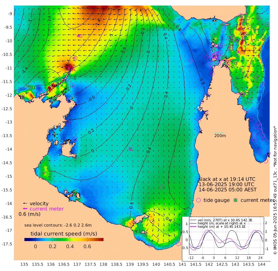 47cm/s -86T +3cm/s rms + 7cm/s -42T. ARA-GOC87 57m 25cm/s -179T +3cm/s rms + 2cm/s -2T. ARA-GOC87 60m 53cm/s -93T +2cm/s rms + 3cm/s 61T. ARA-GOC87 47m -8cm Daru -21cm Bobo Island -21cm Meer Island Barge -30cm Bramble Cay -25cm Unnamed Cay -24cm Pearce Cay -24cm Stephens Island -30cm Merrie England Shoals -13cm Mutacomal Reef -22cm Darnley Island Barge -16cm East Cay -16cm Yorke Island Barge -11cm Rennel Island -9cm Aureed Island 6cm Dungeness Reef 26cm Zagai Island 37cm Yam Island 82cm Dauan Island 75cm Saibai Island 78cm Phipi Reef 47cm Warrior Reef - West 69cm Mabuiag Island Barge -16cm Half Way Island -1cm Coconut Island -4cm Dugong Islet 16cm Poll Island 19cm Kirkcaldie Reef 48cm Suarji Island 19cm Sue Islet 94cm Hawkesbury Island 50cm Alert Patches 43cm Twin Island 83cm Badu Island 51cm St Pauls (Moa Island) 79cm Kubin (Moa Island) 62cm Ince Point 71cm Thursday Island 69cm Nardana Patches 84cm Turtle Head 90cm Round Island 91cm Goods Island 103cm Booby Island 91cm White Rocks Area 93cm Carpentaria 38cm Papou Point 107cm Bampfield Head 92cm Crab Island 105cm Red Wallis Island 98cm Packe Island -5cm Harrington Reef 129cm Herald Camp 20cm Sharp Point 76cm Red Island Point 61cm Possession Island 31cm Alpha Rock 24cm Frederick Point -14cm Wyborn Reef Light -6cm Tetley Island -5cm Triangle Reef -26cm Turtle Head Island -7cm Maclennan Cay -10cm Raine Island -17cm Mcsweeny Reef -17cm Collette Reef -12cm Shadwell Reef -27cm Hannibal Island -26cm Round Point 86cm Vrilya Point -16cm Cape Grenville -16cm Hicks Island -4cm Sir Charles Hardy Island -4cm Harvey Island -18cm Kay Reef -10cm Rocky Island -6cm Chapman Island -5cm Ham Reef -13cm Jubilee Reef -7cm Night Island -5cm Unnamed Reef No. 3 -15cm Morris Island -13cm 1st 3 Mile Opening -10cm Creech Reef -7cm Fife Island -26cm Eden Reef -15cm Stanley Island -25cm Normanby River -185cm Yabooma Island -226cm Hutchison River -196cm Elcho Island -184cm North West Crocodile Island -150cm Cape Wessel -195cm Stevens Island -160cm Guluwuru Island -165cm Hopeful Bay -161cm Auster Point -164cm Two Island Bay -213cm Cadell Strait -157cm Mallison Island -138cm Melville Bay (Gove Harbour) -146cm Truant Island -94cm Cape Arnhem -72cm Cape Grey -50cm Hawk Island -37cm Milner Bay (Groote Eylandt) -19cm Cape Beatrice 21cm West Island 23cm Centre Island 50cm Mornington Island 46cm West Wellesley Islands 52cm Bountiful Island 11cm Albert River Mouth 3cm Sweers Island 41cm Karumba 83cm Nassau River Offshore 99cm Christmas Creek 85cm Archer River 85cm Boyd Point 93cm Weipa (Humbug Point) 64cm Pennefather River 100cm Cullen Point