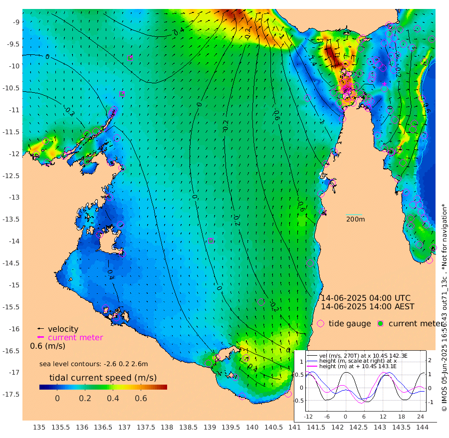 24cm/s 42T +3cm/s rms + 7cm/s -42T. ARA-GOC87 57m 24cm/s 1T +3cm/s rms + 2cm/s -2T. ARA-GOC87 60m 29cm/s 42T +2cm/s rms + 3cm/s 61T. ARA-GOC87 47m -19cm Daru -17cm Bobo Island -49cm Meer Island Barge -39cm Bramble Cay -29cm Unnamed Cay -31cm Pearce Cay -38cm Stephens Island -27cm Merrie England Shoals -18cm Mutacomal Reef -33cm Darnley Island Barge -55cm East Cay -23cm Yorke Island Barge -34cm Rennel Island -23cm Aureed Island -34cm Dungeness Reef -11cm Zagai Island -30cm Yam Island -41cm Dauan Island -19cm Saibai Island -45cm Phipi Reef -21cm Warrior Reef - West -49cm Mabuiag Island Barge -33cm Half Way Island -25cm Coconut Island -33cm Dugong Islet -26cm Poll Island -37cm Kirkcaldie Reef -35cm Suarji Island -14cm Sue Islet -170cm Hawkesbury Island -53cm Alert Patches -47cm Twin Island -139cm Badu Island -42cm St Pauls (Moa Island) -136cm Kubin (Moa Island) -73cm Ince Point -93cm Thursday Island -87cm Nardana Patches -128cm Turtle Head -149cm Round Island -174cm Goods Island -194cm Booby Island -180cm White Rocks Area -154cm Carpentaria -46cm Papou Point -208cm Bampfield Head -163cm Crab Island -182cm Red Wallis Island -160cm Packe Island -28cm Harrington Reef -199cm Herald Camp 4cm Sharp Point -111cm Red Island Point -85cm Possession Island -25cm Alpha Rock -36cm Frederick Point -17cm Wyborn Reef Light -17cm Tetley Island -44cm Triangle Reef -35cm Turtle Head Island -58cm Maclennan Cay -62cm Raine Island -29cm Mcsweeny Reef -29cm Collette Reef -44cm Shadwell Reef -31cm Hannibal Island -45cm Round Point -146cm Vrilya Point -48cm Cape Grenville -55cm Hicks Island -65cm Sir Charles Hardy Island -16cm Harvey Island -52cm Kay Reef -58cm Rocky Island -58cm Chapman Island -58cm Ham Reef -56cm Jubilee Reef -54cm Night Island -59cm Unnamed Reef No. 3 -61cm Morris Island -67cm 1st 3 Mile Opening -63cm Creech Reef -51cm Fife Island -69cm Eden Reef -61cm Stanley Island -60cm Normanby River -34cm Yabooma Island -35cm Hutchison River -23cm Elcho Island -21cm North West Crocodile Island 19cm Cape Wessel 12cm Stevens Island 35cm Guluwuru Island 2cm Hopeful Bay 8cm Auster Point 2cm Two Island Bay 10cm Cadell Strait 149cm Mallison Island 32cm Melville Bay (Gove Harbour) 31cm Truant Island 32cm Cape Arnhem 48cm Cape Grey 51cm Hawk Island 78cm Milner Bay (Groote Eylandt) 69cm Cape Beatrice 89cm West Island 83cm Centre Island 67cm Mornington Island 74cm West Wellesley Islands 74cm Bountiful Island 109cm Albert River Mouth 146cm Sweers Island 89cm Karumba 3cm Nassau River Offshore -53cm Christmas Creek -91cm Archer River -106cm Boyd Point -125cm Weipa (Humbug Point) -97cm Pennefather River -143cm Cullen Point