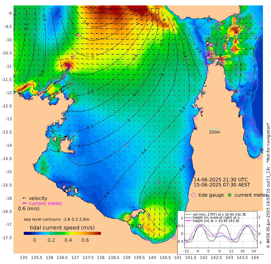 47cm/s -88T +3cm/s rms + 7cm/s -42T. ARA-GOC87 57m 17cm/s -140T +3cm/s rms + 2cm/s -2T. ARA-GOC87 60m 47cm/s -95T +2cm/s rms + 3cm/s 61T. ARA-GOC87 47m -46cm Daru -51cm Bobo Island -26cm Meer Island Barge -38cm Bramble Cay -49cm Unnamed Cay -44cm Pearce Cay -42cm Stephens Island -49cm Merrie England Shoals -49cm Mutacomal Reef -43cm Darnley Island Barge -21cm East Cay -48cm Yorke Island Barge -41cm Rennel Island -42cm Aureed Island -29cm Dungeness Reef -32cm Zagai Island -18cm Yam Island 12cm Dauan Island -2cm Saibai Island 32cm Phipi Reef -14cm Warrior Reef - West 6cm Mabuiag Island Barge -41cm Half Way Island -42cm Coconut Island -40cm Dugong Islet -31cm Poll Island -24cm Kirkcaldie Reef -10cm Suarji Island -38cm Sue Islet 57cm Hawkesbury Island -7cm Alert Patches -14cm Twin Island 44cm Badu Island -12cm St Pauls (Moa Island) 39cm Kubin (Moa Island) 8cm Ince Point 20cm Thursday Island 17cm Nardana Patches 41cm Turtle Head 51cm Round Island 60cm Goods Island 71cm Booby Island 61cm White Rocks Area 39cm Carpentaria -13cm Papou Point 57cm Bampfield Head 64cm Crab Island 68cm Red Wallis Island 61cm Packe Island -45cm Harrington Reef 87cm Herald Camp -2cm Sharp Point 42cm Red Island Point 16cm Possession Island -30cm Alpha Rock -28cm Frederick Point -58cm Wyborn Reef Light -55cm Tetley Island -21cm Triangle Reef -60cm Turtle Head Island -16cm Maclennan Cay -10cm Raine Island -45cm Mcsweeny Reef -40cm Collette Reef -24cm Shadwell Reef -46cm Hannibal Island -35cm Round Point 55cm Vrilya Point -26cm Cape Grenville -22cm Hicks Island -20cm Sir Charles Hardy Island -7cm Harvey Island -24cm Kay Reef -12cm Rocky Island -10cm Chapman Island -11cm Ham Reef -17cm Jubilee Reef -10cm Night Island -10cm Unnamed Reef No. 3 -15cm Morris Island -14cm 1st 3 Mile Opening -13cm Creech Reef -16cm Fife Island -18cm Eden Reef -16cm Stanley Island -20cm Normanby River -74cm Yabooma Island -95cm Hutchison River -77cm Elcho Island -64cm North West Crocodile Island -114cm Cape Wessel -110cm Stevens Island -140cm Guluwuru Island -82cm Hopeful Bay -103cm Auster Point -101cm Two Island Bay -126cm Cadell Strait -252cm Mallison Island -112cm Melville Bay (Gove Harbour) -127cm Truant Island -85cm Cape Arnhem -56cm Cape Grey -27cm Hawk Island -10cm Milner Bay (Groote Eylandt) 10cm Cape Beatrice 42cm West Island 47cm Centre Island 92cm Mornington Island 79cm West Wellesley Islands 117cm Bountiful Island 118cm Albert River Mouth 111cm Sweers Island 142cm Karumba 112cm Nassau River Offshore 102cm Christmas Creek 77cm Archer River 58cm Boyd Point 79cm Weipa (Humbug Point) 46cm Pennefather River 68cm Cullen Point