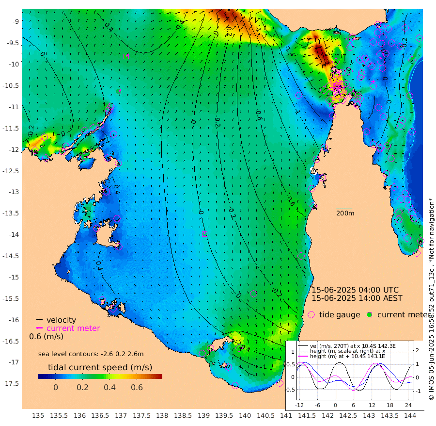 26cm/s 48T +3cm/s rms + 7cm/s -42T. ARA-GOC87 57m 22cm/s -7T +3cm/s rms + 2cm/s -2T. ARA-GOC87 60m 33cm/s 45T +2cm/s rms + 3cm/s 61T. ARA-GOC87 47m -1cm Daru 1cm Bobo Island -26cm Meer Island Barge -15cm Bramble Cay -7cm Unnamed Cay -10cm Pearce Cay -15cm Stephens Island -5cm Merrie England Shoals -2cm Mutacomal Reef -10cm Darnley Island Barge -31cm East Cay -3cm Yorke Island Barge -15cm Rennel Island -6cm Aureed Island -18cm Dungeness Reef -8cm Zagai Island -28cm Yam Island -42cm Dauan Island -26cm Saibai Island -35cm Phipi Reef -16cm Warrior Reef - West -58cm Mabuiag Island Barge -16cm Half Way Island -14cm Coconut Island -17cm Dugong Islet -20cm Poll Island -28cm Kirkcaldie Reef -34cm Suarji Island -8cm Sue Islet -175cm Hawkesbury Island -52cm Alert Patches -49cm Twin Island -146cm Badu Island -45cm St Pauls (Moa Island) -139cm Kubin (Moa Island) -78cm Ince Point -100cm Thursday Island -93cm Nardana Patches -131cm Turtle Head -149cm Round Island -179cm Goods Island -204cm Booby Island -193cm White Rocks Area -177cm Carpentaria -50cm Papou Point -212cm Bampfield Head -172cm Crab Island -197cm Red Wallis Island -167cm Packe Island -15cm Harrington Reef -200cm Herald Camp 0cm Sharp Point -116cm Red Island Point -83cm Possession Island -28cm Alpha Rock -32cm Frederick Point -3cm Wyborn Reef Light -6cm Tetley Island -28cm Triangle Reef -15cm Turtle Head Island -38cm Maclennan Cay -41cm Raine Island -9cm Mcsweeny Reef -8cm Collette Reef -22cm Shadwell Reef -7cm Hannibal Island -21cm Round Point -160cm Vrilya Point -26cm Cape Grenville -31cm Hicks Island -43cm Sir Charles Hardy Island -8cm Harvey Island -30cm Kay Reef -35cm Rocky Island -39cm Chapman Island -40cm Ham Reef -35cm Jubilee Reef -34cm Night Island -42cm Unnamed Reef No. 3 -38cm Morris Island -44cm 1st 3 Mile Opening -41cm Creech Reef -29cm Fife Island -42cm Eden Reef -37cm Stanley Island -35cm Normanby River -6cm Yabooma Island 0cm Hutchison River 3cm Elcho Island 3cm North West Crocodile Island 29cm Cape Wessel 34cm Stevens Island 56cm Guluwuru Island 25cm Hopeful Bay 27cm Auster Point 23cm Two Island Bay 42cm Cadell Strait 167cm Mallison Island 53cm Melville Bay (Gove Harbour) 50cm Truant Island 45cm Cape Arnhem 60cm Cape Grey 63cm Hawk Island 81cm Milner Bay (Groote Eylandt) 71cm Cape Beatrice 82cm West Island 78cm Centre Island 80cm Mornington Island 84cm West Wellesley Islands 96cm Bountiful Island 131cm Albert River Mouth 174cm Sweers Island 115cm Karumba 16cm Nassau River Offshore -42cm Christmas Creek -86cm Archer River -107cm Boyd Point -122cm Weipa (Humbug Point) -100cm Pennefather River -153cm Cullen Point