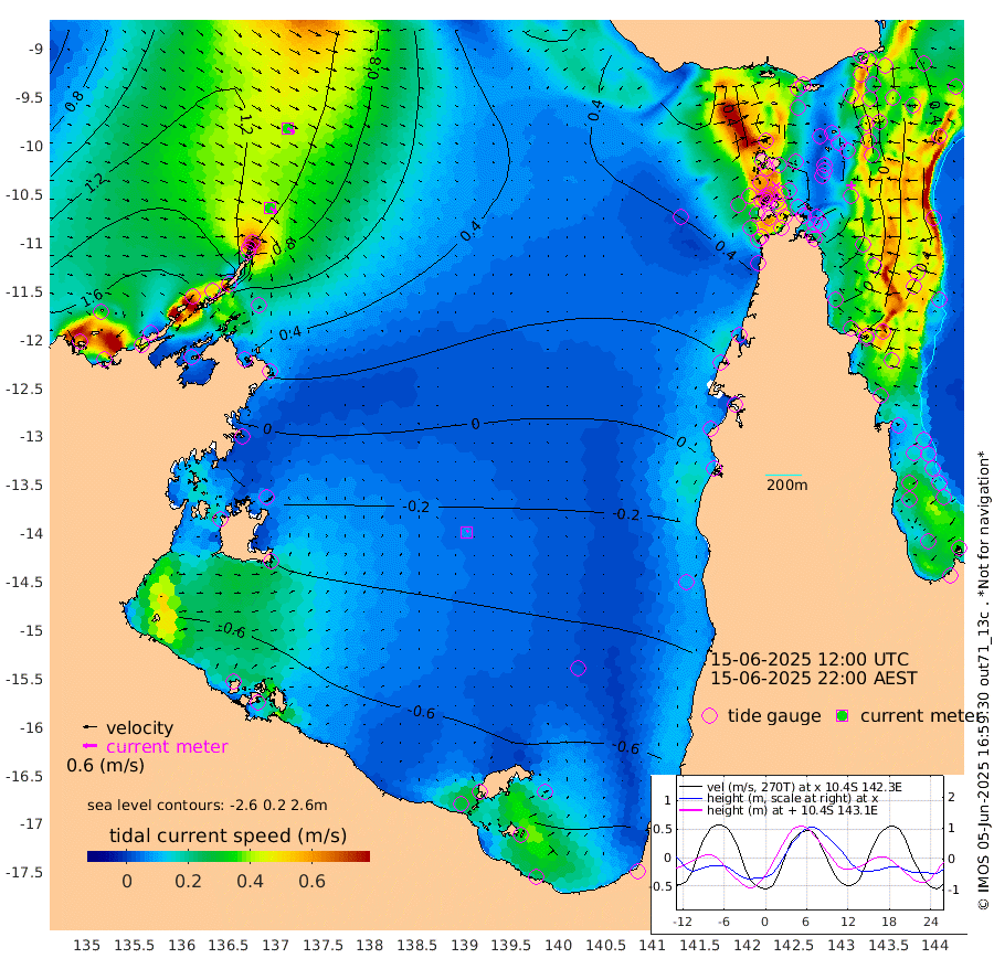 33cm/s 125T +3cm/s rms + 7cm/s -42T. ARA-GOC87 57m 7cm/s 33T +3cm/s rms + 2cm/s -2T. ARA-GOC87 60m 36cm/s 121T +2cm/s rms + 3cm/s 61T. ARA-GOC87 47m -7cm Daru 7cm Bobo Island 38cm Meer Island Barge 30cm Bramble Cay 14cm Unnamed Cay 23cm Pearce Cay 24cm Stephens Island 13cm Merrie England Shoals -5cm Mutacomal Reef 21cm Darnley Island Barge 38cm East Cay 9cm Yorke Island Barge 13cm Rennel Island 7cm Aureed Island 2cm Dungeness Reef -20cm Zagai Island -14cm Yam Island -31cm Dauan Island -39cm Saibai Island -40cm Phipi Reef -33cm Warrior Reef - West -3cm Mabuiag Island Barge 16cm Half Way Island 2cm Coconut Island 9cm Dugong Islet -5cm Poll Island -3cm Kirkcaldie Reef -12cm Suarji Island -16cm Sue Islet 86cm Hawkesbury Island -1cm Alert Patches 2cm Twin Island 67cm Badu Island -7cm St Pauls (Moa Island) 61cm Kubin (Moa Island) 15cm Ince Point 29cm Thursday Island 24cm Nardana Patches 49cm Turtle Head 62cm Round Island 91cm Goods Island 107cm Booby Island 106cm White Rocks Area 92cm Carpentaria 11cm Papou Point 117cm Bampfield Head 83cm Crab Island 94cm Red Wallis Island 65cm Packe Island 6cm Harrington Reef 78cm Herald Camp -21cm Sharp Point 43cm Red Island Point 24cm Possession Island -10cm Alpha Rock 0cm Frederick Point 1cm Wyborn Reef Light -3cm Tetley Island 27cm Triangle Reef 27cm Turtle Head Island 38cm Maclennan Cay 45cm Raine Island 13cm Mcsweeny Reef 12cm Collette Reef 26cm Shadwell Reef 17cm Hannibal Island 31cm Round Point 74cm Vrilya Point 28cm Cape Grenville 37cm Hicks Island 39cm Sir Charles Hardy Island 9cm Harvey Island 36cm Kay Reef 39cm Rocky Island 40cm Chapman Island 41cm Ham Reef 42cm Jubilee Reef 33cm Night Island 40cm Unnamed Reef No. 3 44cm Morris Island 52cm 1st 3 Mile Opening 44cm Creech Reef 30cm Fife Island 58cm Eden Reef 43cm Stanley Island 50cm Normanby River 187cm Yabooma Island 218cm Hutchison River 184cm Elcho Island 172cm North West Crocodile Island 122cm Cape Wessel 151cm Stevens Island 101cm Guluwuru Island 133cm Hopeful Bay 134cm Auster Point 138cm Two Island Bay 165cm Cadell Strait -31cm Mallison Island 84cm Melville Bay (Gove Harbour) 96cm Truant Island 49cm Cape Arnhem 16cm Cape Grey -13cm Hawk Island -42cm Milner Bay (Groote Eylandt) -54cm Cape Beatrice -103cm West Island -101cm Centre Island -135cm Mornington Island -132cm West Wellesley Islands -146cm Bountiful Island -153cm Albert River Mouth -179cm Sweers Island -165cm Karumba -107cm Nassau River Offshore -63cm Christmas Creek -1cm Archer River 25cm Boyd Point 31cm Weipa (Humbug Point) 33cm Pennefather River 56cm Cullen Point