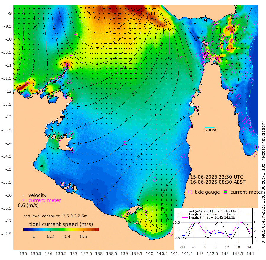 42cm/s -90T +3cm/s rms + 7cm/s -42T. ARA-GOC87 57m 16cm/s -128T +3cm/s rms + 2cm/s -2T. ARA-GOC87 60m 41cm/s -97T +2cm/s rms + 3cm/s 61T. ARA-GOC87 47m -49cm Daru -53cm Bobo Island -32cm Meer Island Barge -41cm Bramble Cay -52cm Unnamed Cay -45cm Pearce Cay -47cm Stephens Island -52cm Merrie England Shoals -50cm Mutacomal Reef -49cm Darnley Island Barge -29cm East Cay -52cm Yorke Island Barge -45cm Rennel Island -45cm Aureed Island -31cm Dungeness Reef -34cm Zagai Island -21cm Yam Island 7cm Dauan Island -9cm Saibai Island 29cm Phipi Reef -18cm Warrior Reef - West 1cm Mabuiag Island Barge -44cm Half Way Island -44cm Coconut Island -43cm Dugong Islet -32cm Poll Island -28cm Kirkcaldie Reef -13cm Suarji Island -43cm Sue Islet 48cm Hawkesbury Island -11cm Alert Patches -17cm Twin Island 38cm Badu Island -15cm St Pauls (Moa Island) 33cm Kubin (Moa Island) 4cm Ince Point 15cm Thursday Island 12cm Nardana Patches 35cm Turtle Head 42cm Round Island 53cm Goods Island 61cm Booby Island 55cm White Rocks Area 26cm Carpentaria -16cm Papou Point 41cm Bampfield Head 56cm Crab Island 61cm Red Wallis Island 56cm Packe Island -48cm Harrington Reef 70cm Herald Camp -3cm Sharp Point 34cm Red Island Point 9cm Possession Island -32cm Alpha Rock -32cm Frederick Point -59cm Wyborn Reef Light -56cm Tetley Island -25cm Triangle Reef -63cm Turtle Head Island -24cm Maclennan Cay -17cm Raine Island -49cm Mcsweeny Reef -45cm Collette Reef -31cm Shadwell Reef -50cm Hannibal Island -39cm Round Point 46cm Vrilya Point -32cm Cape Grenville -30cm Hicks Island -30cm Sir Charles Hardy Island -10cm Harvey Island -31cm Kay Reef -20cm Rocky Island -18cm Chapman Island -21cm Ham Reef -25cm Jubilee Reef -16cm Night Island -18cm Unnamed Reef No. 3 -22cm Morris Island -22cm 1st 3 Mile Opening -21cm Creech Reef -25cm Fife Island -24cm Eden Reef -24cm Stanley Island -28cm Normanby River -47cm Yabooma Island -61cm Hutchison River -46cm Elcho Island -34cm North West Crocodile Island -98cm Cape Wessel -81cm Stevens Island -127cm Guluwuru Island -59cm Hopeful Bay -84cm Auster Point -81cm Two Island Bay -99cm Cadell Strait -249cm Mallison Island -98cm Melville Bay (Gove Harbour) -114cm Truant Island -77cm Cape Arnhem -52cm Cape Grey -21cm Hawk Island -4cm Milner Bay (Groote Eylandt) 16cm Cape Beatrice 43cm West Island 49cm Centre Island 93cm Mornington Island 81cm West Wellesley Islands 117cm Bountiful Island 134cm Albert River Mouth 125cm Sweers Island 152cm Karumba 111cm Nassau River Offshore 95cm Christmas Creek 70cm Archer River 48cm Boyd Point 69cm Weipa (Humbug Point) 41cm Pennefather River 57cm Cullen Point