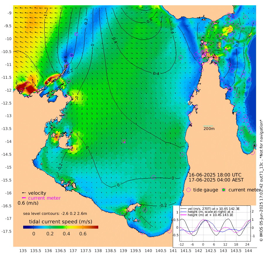 1cm/s -168T +3cm/s rms + 7cm/s -42T. ARA-GOC87 57m 35cm/s 164T +3cm/s rms + 2cm/s -2T. ARA-GOC87 60m 13cm/s -94T +2cm/s rms + 3cm/s 61T. ARA-GOC87 47m 113cm Daru 96cm Bobo Island 57cm Meer Island Barge 75cm Bramble Cay 99cm Unnamed Cay 85cm Pearce Cay 89cm Stephens Island 98cm Merrie England Shoals 114cm Mutacomal Reef 86cm Darnley Island Barge 62cm East Cay 96cm Yorke Island Barge 99cm Rennel Island 91cm Aureed Island 100cm Dungeness Reef 104cm Zagai Island 113cm Yam Island 110cm Dauan Island 108cm Saibai Island 92cm Phipi Reef 118cm Warrior Reef - West 84cm Mabuiag Island Barge 98cm Half Way Island 101cm Coconut Island 107cm Dugong Islet 103cm Poll Island 112cm Kirkcaldie Reef 92cm Suarji Island 109cm Sue Islet 68cm Hawkesbury Island 98cm Alert Patches 102cm Twin Island 65cm Badu Island 104cm St Pauls (Moa Island) 77cm Kubin (Moa Island) 91cm Ince Point 84cm Thursday Island 86cm Nardana Patches 76cm Turtle Head 63cm Round Island 57cm Goods Island 47cm Booby Island 43cm White Rocks Area 46cm Carpentaria 87cm Papou Point 51cm Bampfield Head 42cm Crab Island 56cm Red Wallis Island 78cm Packe Island 107cm Harrington Reef 75cm Herald Camp 34cm Sharp Point 63cm Red Island Point 71cm Possession Island 106cm Alpha Rock 106cm Frederick Point 112cm Wyborn Reef Light 114cm Tetley Island 61cm Triangle Reef 101cm Turtle Head Island 61cm Maclennan Cay 42cm Raine Island 93cm Mcsweeny Reef 86cm Collette Reef 63cm Shadwell Reef 89cm Hannibal Island 76cm Round Point 42cm Vrilya Point 72cm Cape Grenville 65cm Hicks Island 79cm Sir Charles Hardy Island 23cm Harvey Island 63cm Kay Reef 51cm Rocky Island 46cm Chapman Island 48cm Ham Reef 52cm Jubilee Reef 49cm Night Island 49cm Unnamed Reef No. 3 50cm Morris Island 45cm 1st 3 Mile Opening 51cm Creech Reef 59cm Fife Island 47cm Eden Reef 54cm Stanley Island 53cm Normanby River -115cm Yabooma Island -133cm Hutchison River -129cm Elcho Island -126cm North West Crocodile Island -46cm Cape Wessel -89cm Stevens Island -5cm Guluwuru Island -90cm Hopeful Bay -71cm Auster Point -64cm Two Island Bay -72cm Cadell Strait 171cm Mallison Island -21cm Melville Bay (Gove Harbour) -17cm Truant Island -8cm Cape Arnhem -26cm Cape Grey -33cm Hawk Island -55cm Milner Bay (Groote Eylandt) -47cm Cape Beatrice -49cm West Island -57cm Centre Island -35cm Mornington Island -30cm West Wellesley Islands -58cm Bountiful Island -106cm Albert River Mouth -135cm Sweers Island -94cm Karumba 9cm Nassau River Offshore 46cm Christmas Creek 38cm Archer River 50cm Boyd Point 42cm Weipa (Humbug Point) 33cm Pennefather River 47cm Cullen Point