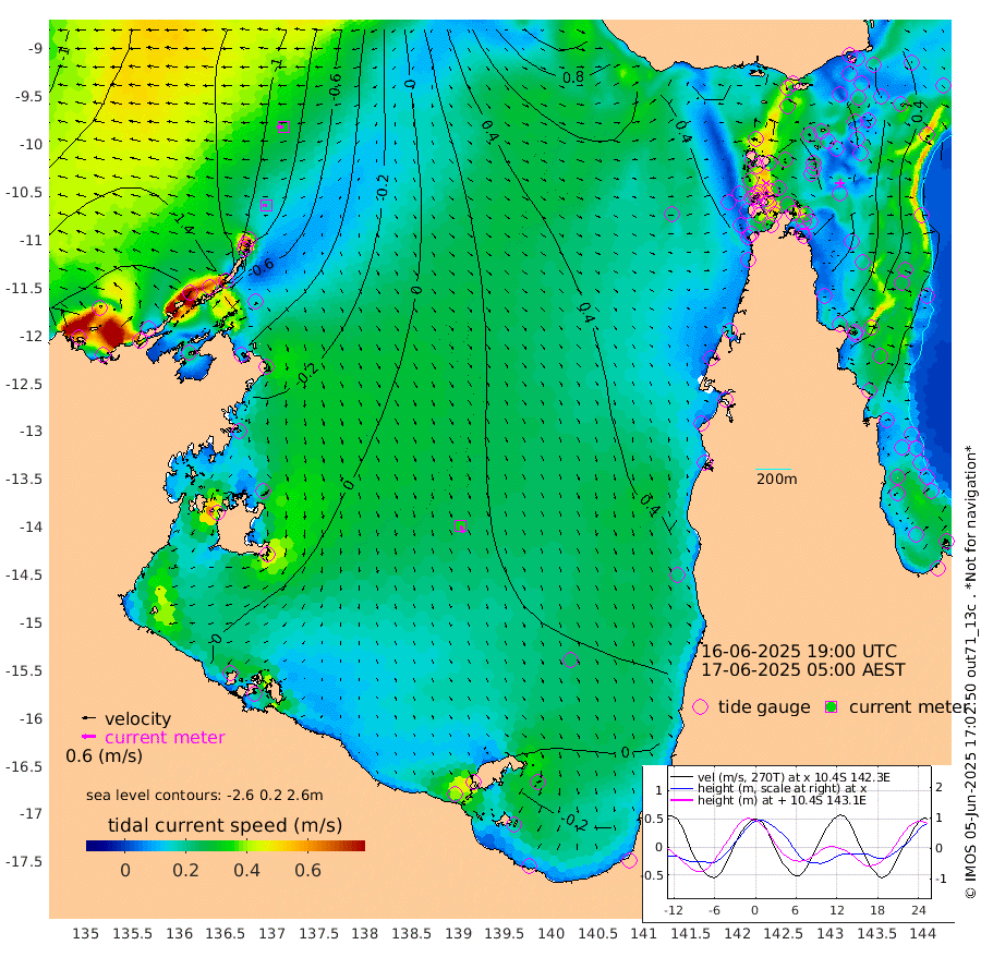 19cm/s -86T +3cm/s rms + 7cm/s -42T. ARA-GOC87 57m 34cm/s 166T +3cm/s rms + 2cm/s -2T. ARA-GOC87 60m 30cm/s -93T +2cm/s rms + 3cm/s 61T. ARA-GOC87 47m 87cm Daru 68cm Bobo Island 30cm Meer Island Barge 46cm Bramble Cay 70cm Unnamed Cay 54cm Pearce Cay 59cm Stephens Island 71cm Merrie England Shoals 90cm Mutacomal Reef 55cm Darnley Island Barge 36cm East Cay 67cm Yorke Island Barge 73cm Rennel Island 64cm Aureed Island 77cm Dungeness Reef 88cm Zagai Island 100cm Yam Island 101cm Dauan Island 102cm Saibai Island 88cm Phipi Reef 104cm Warrior Reef - West 83cm Mabuiag Island Barge 72cm Half Way Island 80cm Coconut Island 82cm Dugong Islet 86cm Poll Island 95cm Kirkcaldie Reef 85cm Suarji Island 92cm Sue Islet 72cm Hawkesbury Island 92cm Alert Patches 93cm Twin Island 68cm Badu Island 97cm St Pauls (Moa Island) 77cm Kubin (Moa Island) 89cm Ince Point 85cm Thursday Island 86cm Nardana Patches 78cm Turtle Head 68cm Round Island 62cm Goods Island 58cm Booby Island 53cm White Rocks Area 62cm Carpentaria 79cm Papou Point 57cm Bampfield Head 55cm Crab Island 69cm Red Wallis Island 86cm Packe Island 84cm Harrington Reef 85cm Herald Camp 36cm Sharp Point 68cm Red Island Point 69cm Possession Island 96cm Alpha Rock 92cm Frederick Point 86cm Wyborn Reef Light 90cm Tetley Island 40cm Triangle Reef 69cm Turtle Head Island 37cm Maclennan Cay 21cm Raine Island 65cm Mcsweeny Reef 60cm Collette Reef 40cm Shadwell Reef 59cm Hannibal Island 48cm Round Point 58cm Vrilya Point 48cm Cape Grenville 39cm Hicks Island 51cm Sir Charles Hardy Island 15cm Harvey Island 39cm Kay Reef 28cm Rocky Island 24cm Chapman Island 27cm Ham Reef 28cm Jubilee Reef 29cm Night Island 29cm Unnamed Reef No. 3 27cm Morris Island 20cm 1st 3 Mile Opening 27cm Creech Reef 35cm Fife Island 17cm Eden Reef 30cm Stanley Island 26cm Normanby River -173cm Yabooma Island -202cm Hutchison River -183cm Elcho Island -175cm North West Crocodile Island -99cm Cape Wessel -147cm Stevens Island -71cm Guluwuru Island -140cm Hopeful Bay -125cm Auster Point -120cm Two Island Bay -149cm Cadell Strait 82cm Mallison Island -76cm Melville Bay (Gove Harbour) -77cm Truant Island -47cm Cape Arnhem -50cm Cape Grey -44cm Hawk Island -50cm Milner Bay (Groote Eylandt) -36cm Cape Beatrice -17cm West Island -23cm Centre Island -3cm Mornington Island -1cm West Wellesley Islands -27cm Bountiful Island -70cm Albert River Mouth -97cm Sweers Island -53cm Karumba 37cm Nassau River Offshore 66cm Christmas Creek 52cm Archer River 59cm Boyd Point 53cm Weipa (Humbug Point) 46cm Pennefather River 63cm Cullen Point