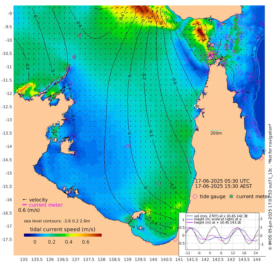 24cm/s 51T +3cm/s rms + 7cm/s -42T. ARA-GOC87 57m 18cm/s -4T +3cm/s rms + 2cm/s -2T. ARA-GOC87 60m 29cm/s 45T +2cm/s rms + 3cm/s 61T. ARA-GOC87 47m 4cm Daru 7cm Bobo Island -1cm Meer Island Barge 3cm Bramble Cay 6cm Unnamed Cay -1cm Pearce Cay 3cm Stephens Island 9cm Merrie England Shoals -1cm Mutacomal Reef 10cm Darnley Island Barge -6cm East Cay 8cm Yorke Island Barge -5cm Rennel Island 1cm Aureed Island -16cm Dungeness Reef -21cm Zagai Island -43cm Yam Island -63cm Dauan Island -51cm Saibai Island -52cm Phipi Reef -32cm Warrior Reef - West -75cm Mabuiag Island Barge -6cm Half Way Island -11cm Coconut Island -13cm Dugong Islet -27cm Poll Island -30cm Kirkcaldie Reef -45cm Suarji Island -15cm Sue Islet -171cm Hawkesbury Island -58cm Alert Patches -58cm Twin Island -148cm Badu Island -58cm St Pauls (Moa Island) -137cm Kubin (Moa Island) -85cm Ince Point -103cm Thursday Island -98cm Nardana Patches -128cm Turtle Head -137cm Round Island -167cm Goods Island -187cm Booby Island -182cm White Rocks Area -154cm Carpentaria -60cm Papou Point -178cm Bampfield Head -156cm Crab Island -185cm Red Wallis Island -159cm Packe Island -10cm Harrington Reef -179cm Herald Camp -7cm Sharp Point -119cm Red Island Point -78cm Possession Island -38cm Alpha Rock -35cm Frederick Point 0cm Wyborn Reef Light -7cm Tetley Island -12cm Triangle Reef -3cm Turtle Head Island -15cm Maclennan Cay -14cm Raine Island 6cm Mcsweeny Reef 8cm Collette Reef 0cm Shadwell Reef 12cm Hannibal Island 0cm Round Point -141cm Vrilya Point -3cm Cape Grenville -6cm Hicks Island -19cm Sir Charles Hardy Island 0cm Harvey Island -5cm Kay Reef -9cm Rocky Island -15cm Chapman Island -14cm Ham Reef -9cm Jubilee Reef -9cm Night Island -16cm Unnamed Reef No. 3 -9cm Morris Island -13cm 1st 3 Mile Opening -12cm Creech Reef 1cm Fife Island -9cm Eden Reef -7cm Stanley Island -6cm Normanby River -18cm Yabooma Island -11cm Hutchison River -7cm Elcho Island -13cm North West Crocodile Island 23cm Cape Wessel 22cm Stevens Island 57cm Guluwuru Island 18cm Hopeful Bay 23cm Auster Point 19cm Two Island Bay 31cm Cadell Strait 173cm Mallison Island 52cm Melville Bay (Gove Harbour) 52cm Truant Island 47cm Cape Arnhem 58cm Cape Grey 59cm Hawk Island 70cm Milner Bay (Groote Eylandt) 60cm Cape Beatrice 67cm West Island 64cm Centre Island 67cm Mornington Island 67cm West Wellesley Islands 71cm Bountiful Island 97cm Albert River Mouth 144cm Sweers Island 86cm Karumba 6cm Nassau River Offshore -40cm Christmas Creek -74cm Archer River -91cm Boyd Point -106cm Weipa (Humbug Point) -83cm Pennefather River -135cm Cullen Point
