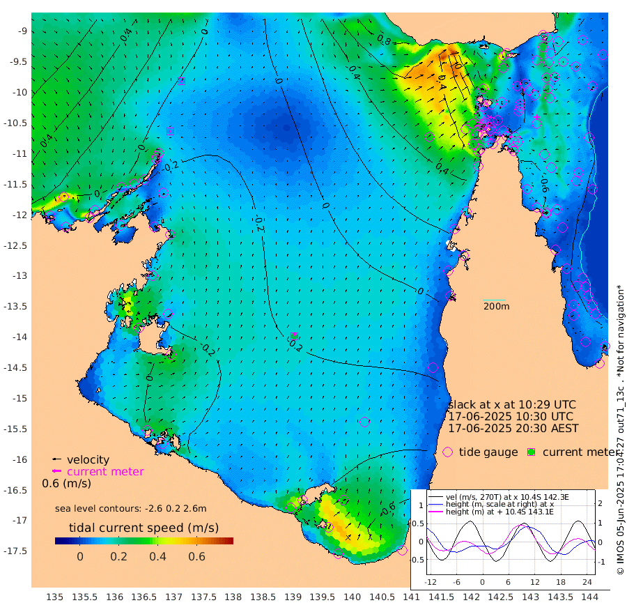 8cm/s -94T +3cm/s rms + 7cm/s -42T. ARA-GOC87 57m 26cm/s 13T +3cm/s rms + 2cm/s -2T. ARA-GOC87 60m 8cm/s -168T +2cm/s rms + 3cm/s 61T. ARA-GOC87 47m -65cm Daru -56cm Bobo Island -46cm Meer Island Barge -54cm Bramble Cay -59cm Unnamed Cay -59cm Pearce Cay -58cm Stephens Island -58cm Merrie England Shoals -58cm Mutacomal Reef -58cm Darnley Island Barge -45cm East Cay -58cm Yorke Island Barge -54cm Rennel Island -53cm Aureed Island -57cm Dungeness Reef -42cm Zagai Island -42cm Yam Island -57cm Dauan Island -37cm Saibai Island -61cm Phipi Reef -61cm Warrior Reef - West -3cm Mabuiag Island Barge -56cm Half Way Island -42cm Coconut Island -55cm Dugong Islet -42cm Poll Island -45cm Kirkcaldie Reef -20cm Suarji Island -40cm Sue Islet 29cm Hawkesbury Island -15cm Alert Patches -18cm Twin Island 20cm Badu Island -22cm St Pauls (Moa Island) 7cm Kubin (Moa Island) -6cm Ince Point 5cm Thursday Island 2cm Nardana Patches 6cm Turtle Head 27cm Round Island 30cm Goods Island 55cm Booby Island 56cm White Rocks Area 86cm Carpentaria -8cm Papou Point 76cm Bampfield Head 43cm Crab Island 48cm Red Wallis Island 11cm Packe Island -45cm Harrington Reef 29cm Herald Camp -9cm Sharp Point 17cm Red Island Point 8cm Possession Island -20cm Alpha Rock -32cm Frederick Point -48cm Wyborn Reef Light -45cm Tetley Island -38cm Triangle Reef -46cm Turtle Head Island -39cm Maclennan Cay -33cm Raine Island -55cm Mcsweeny Reef -53cm Collette Reef -44cm Shadwell Reef -58cm Hannibal Island -53cm Round Point 48cm Vrilya Point -45cm Cape Grenville -47cm Hicks Island -48cm Sir Charles Hardy Island -16cm Harvey Island -39cm Kay Reef -39cm Rocky Island -34cm Chapman Island -31cm Ham Reef -37cm Jubilee Reef -39cm Night Island -31cm Unnamed Reef No. 3 -39cm Morris Island -35cm 1st 3 Mile Opening -37cm Creech Reef -50cm Fife Island -45cm Eden Reef -41cm Stanley Island -44cm Normanby River 4cm Yabooma Island 2cm Hutchison River 11cm Elcho Island 10cm North West Crocodile Island 4cm Cape Wessel -6cm Stevens Island -37cm Guluwuru Island -2cm Hopeful Bay 4cm Auster Point -8cm Two Island Bay -45cm Cadell Strait -152cm Mallison Island -31cm Melville Bay (Gove Harbour) -27cm Truant Island -24cm Cape Arnhem -11cm Cape Grey -15cm Hawk Island 6cm Milner Bay (Groote Eylandt) -4cm Cape Beatrice 8cm West Island 16cm Centre Island -58cm Mornington Island -57cm West Wellesley Islands -70cm Bountiful Island -80cm Albert River Mouth -70cm Sweers Island -84cm Karumba -79cm Nassau River Offshore -68cm Christmas Creek -22cm Archer River -2cm Boyd Point -7cm Weipa (Humbug Point) 14cm Pennefather River 32cm Cullen Point