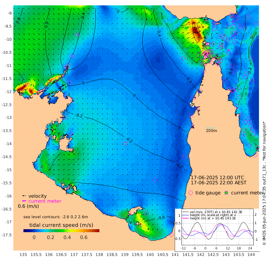 10cm/s 159T +3cm/s rms + 7cm/s -42T. ARA-GOC87 57m 17cm/s 11T +3cm/s rms + 2cm/s -2T. ARA-GOC87 60m 17cm/s 143T +2cm/s rms + 3cm/s 61T. ARA-GOC87 47m -57cm Daru -45cm Bobo Island -22cm Meer Island Barge -35cm Bramble Cay -46cm Unnamed Cay -37cm Pearce Cay -41cm Stephens Island -50cm Merrie England Shoals -53cm Mutacomal Reef -41cm Darnley Island Barge -22cm East Cay -45cm Yorke Island Barge -41cm Rennel Island -40cm Aureed Island -40cm Dungeness Reef -33cm Zagai Island -30cm Yam Island -28cm Dauan Island -22cm Saibai Island -38cm Phipi Reef -46cm Warrior Reef - West 13cm Mabuiag Island Barge -42cm Half Way Island -35cm Coconut Island -42cm Dugong Islet -32cm Poll Island -36cm Kirkcaldie Reef -11cm Suarji Island -36cm Sue Islet 81cm Hawkesbury Island -6cm Alert Patches -8cm Twin Island 66cm Badu Island -11cm St Pauls (Moa Island) 49cm Kubin (Moa Island) 12cm Ince Point 28cm Thursday Island 23cm Nardana Patches 42cm Turtle Head 63cm Round Island 81cm Goods Island 104cm Booby Island 105cm White Rocks Area 104cm Carpentaria 5cm Papou Point 120cm Bampfield Head 80cm Crab Island 93cm Red Wallis Island 54cm Packe Island -39cm Harrington Reef 77cm Herald Camp -15cm Sharp Point 45cm Red Island Point 24cm Possession Island -18cm Alpha Rock -24cm Frederick Point -43cm Wyborn Reef Light -41cm Tetley Island -18cm Triangle Reef -32cm Turtle Head Island -15cm Maclennan Cay -8cm Raine Island -43cm Mcsweeny Reef -42cm Collette Reef -27cm Shadwell Reef -46cm Hannibal Island -34cm Round Point 72cm Vrilya Point -30cm Cape Grenville -24cm Hicks Island -20cm Sir Charles Hardy Island -10cm Harvey Island -22cm Kay Reef -15cm Rocky Island -8cm Chapman Island -8cm Ham Reef -14cm Jubilee Reef -19cm Night Island -9cm Unnamed Reef No. 3 -15cm Morris Island -7cm 1st 3 Mile Opening -13cm Creech Reef -29cm Fife Island -13cm Eden Reef -18cm Stanley Island -17cm Normanby River 105cm Yabooma Island 116cm Hutchison River 104cm Elcho Island 100cm North West Crocodile Island 61cm Cape Wessel 72cm Stevens Island 17cm Guluwuru Island 68cm Hopeful Bay 69cm Auster Point 62cm Two Island Bay 54cm Cadell Strait -146cm Mallison Island 17cm Melville Bay (Gove Harbour) 24cm Truant Island 4cm Cape Arnhem -3cm Cape Grey -18cm Hawk Island -19cm Milner Bay (Groote Eylandt) -30cm Cape Beatrice -46cm West Island -40cm Centre Island -95cm Mornington Island -91cm West Wellesley Islands -95cm Bountiful Island -107cm Albert River Mouth -115cm Sweers Island -114cm Karumba -89cm Nassau River Offshore -61cm Christmas Creek -4cm Archer River 20cm Boyd Point 24cm Weipa (Humbug Point) 26cm Pennefather River 58cm Cullen Point