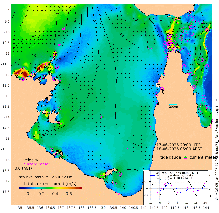 20cm/s -83T +3cm/s rms + 7cm/s -42T. ARA-GOC87 57m 29cm/s 166T +3cm/s rms + 2cm/s -2T. ARA-GOC87 60m 30cm/s -92T +2cm/s rms + 3cm/s 61T. ARA-GOC87 47m 79cm Daru 63cm Bobo Island 25cm Meer Island Barge 43cm Bramble Cay 65cm Unnamed Cay 49cm Pearce Cay 54cm Stephens Island 69cm Merrie England Shoals 85cm Mutacomal Reef 49cm Darnley Island Barge 32cm East Cay 60cm Yorke Island Barge 67cm Rennel Island 57cm Aureed Island 69cm Dungeness Reef 74cm Zagai Island 89cm Yam Island 74cm Dauan Island 78cm Saibai Island 68cm Phipi Reef 87cm Warrior Reef - West 64cm Mabuiag Island Barge 68cm Half Way Island 72cm Coconut Island 76cm Dugong Islet 76cm Poll Island 89cm Kirkcaldie Reef 69cm Suarji Island 81cm Sue Islet 53cm Hawkesbury Island 77cm Alert Patches 80cm Twin Island 48cm Badu Island 82cm St Pauls (Moa Island) 60cm Kubin (Moa Island) 74cm Ince Point 69cm Thursday Island 69cm Nardana Patches 60cm Turtle Head 48cm Round Island 43cm Goods Island 39cm Booby Island 36cm White Rocks Area 47cm Carpentaria 69cm Papou Point 30cm Bampfield Head 41cm Crab Island 51cm Red Wallis Island 68cm Packe Island 79cm Harrington Reef 63cm Herald Camp 33cm Sharp Point 57cm Red Island Point 54cm Possession Island 84cm Alpha Rock 82cm Frederick Point 78cm Wyborn Reef Light 81cm Tetley Island 32cm Triangle Reef 63cm Turtle Head Island 32cm Maclennan Cay 15cm Raine Island 59cm Mcsweeny Reef 54cm Collette Reef 33cm Shadwell Reef 55cm Hannibal Island 44cm Round Point 46cm Vrilya Point 45cm Cape Grenville 34cm Hicks Island 43cm Sir Charles Hardy Island 14cm Harvey Island 36cm Kay Reef 22cm Rocky Island 17cm Chapman Island 21cm Ham Reef 22cm Jubilee Reef 24cm Night Island 23cm Unnamed Reef No. 3 22cm Morris Island 13cm 1st 3 Mile Opening 22cm Creech Reef 28cm Fife Island 13cm Eden Reef 26cm Stanley Island 24cm Normanby River -164cm Yabooma Island -190cm Hutchison River -170cm Elcho Island -159cm North West Crocodile Island -99cm Cape Wessel -140cm Stevens Island -76cm Guluwuru Island -134cm Hopeful Bay -123cm Auster Point -116cm Two Island Bay -144cm Cadell Strait 52cm Mallison Island -80cm Melville Bay (Gove Harbour) -83cm Truant Island -52cm Cape Arnhem -49cm Cape Grey -42cm Hawk Island -41cm Milner Bay (Groote Eylandt) -25cm Cape Beatrice -2cm West Island -7cm Centre Island 9cm Mornington Island 8cm West Wellesley Islands -14cm Bountiful Island -46cm Albert River Mouth -74cm Sweers Island -31cm Karumba 42cm Nassau River Offshore 61cm Christmas Creek 43cm Archer River 45cm Boyd Point 39cm Weipa (Humbug Point) 38cm Pennefather River 49cm Cullen Point