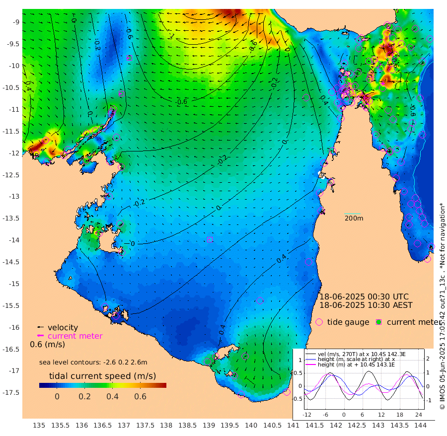 24cm/s -101T +3cm/s rms + 7cm/s -42T. ARA-GOC87 57m 13cm/s -105T +3cm/s rms + 2cm/s -2T. ARA-GOC87 60m 22cm/s -107T +2cm/s rms + 3cm/s 61T. ARA-GOC87 47m -69cm Daru -71cm Bobo Island -56cm Meer Island Barge -64cm Bramble Cay -75cm Unnamed Cay -61cm Pearce Cay -71cm Stephens Island -74cm Merrie England Shoals -69cm Mutacomal Reef -73cm Darnley Island Barge -58cm East Cay -73cm Yorke Island Barge -66cm Rennel Island -62cm Aureed Island -48cm Dungeness Reef -41cm Zagai Island -34cm Yam Island 6cm Dauan Island -14cm Saibai Island 18cm Phipi Reef -28cm Warrior Reef - West -3cm Mabuiag Island Barge -63cm Half Way Island -59cm Coconut Island -63cm Dugong Islet -42cm Poll Island -48cm Kirkcaldie Reef -25cm Suarji Island -56cm Sue Islet 31cm Hawkesbury Island -23cm Alert Patches -27cm Twin Island 32cm Badu Island -22cm St Pauls (Moa Island) 20cm Kubin (Moa Island) -6cm Ince Point 4cm Thursday Island 2cm Nardana Patches 21cm Turtle Head 19cm Round Island 38cm Goods Island 44cm Booby Island 42cm White Rocks Area 8cm Carpentaria -25cm Papou Point 9cm Bampfield Head 41cm Crab Island 47cm Red Wallis Island 39cm Packe Island -68cm Harrington Reef 33cm Herald Camp -5cm Sharp Point 16cm Red Island Point -10cm Possession Island -42cm Alpha Rock -46cm Frederick Point -75cm Wyborn Reef Light -70cm Tetley Island -44cm Triangle Reef -80cm Turtle Head Island -50cm Maclennan Cay -40cm Raine Island -70cm Mcsweeny Reef -68cm Collette Reef -53cm Shadwell Reef -74cm Hannibal Island -63cm Round Point 34cm Vrilya Point -60cm Cape Grenville -58cm Hicks Island -62cm Sir Charles Hardy Island -19cm Harvey Island -60cm Kay Reef -48cm Rocky Island -41cm Chapman Island -47cm Ham Reef -50cm Jubilee Reef -39cm Night Island -44cm Unnamed Reef No. 3 -50cm Morris Island -47cm 1st 3 Mile Opening -48cm Creech Reef -51cm Fife Island -52cm Eden Reef -53cm Stanley Island -57cm Normanby River 5cm Yabooma Island -2cm Hutchison River 8cm Elcho Island 17cm North West Crocodile Island -56cm Cape Wessel -23cm Stevens Island -89cm Guluwuru Island -13cm Hopeful Bay -39cm Auster Point -38cm Two Island Bay -37cm Cadell Strait -203cm Mallison Island -63cm Melville Bay (Gove Harbour) -75cm Truant Island -52cm Cape Arnhem -38cm Cape Grey -10cm Hawk Island 6cm Milner Bay (Groote Eylandt) 20cm Cape Beatrice 35cm West Island 41cm Centre Island 73cm Mornington Island 65cm West Wellesley Islands 90cm Bountiful Island 130cm Albert River Mouth 121cm Sweers Island 134cm Karumba 85cm Nassau River Offshore 64cm Christmas Creek 46cm Archer River 26cm Boyd Point 44cm Weipa (Humbug Point) 31cm Pennefather River 37cm Cullen Point