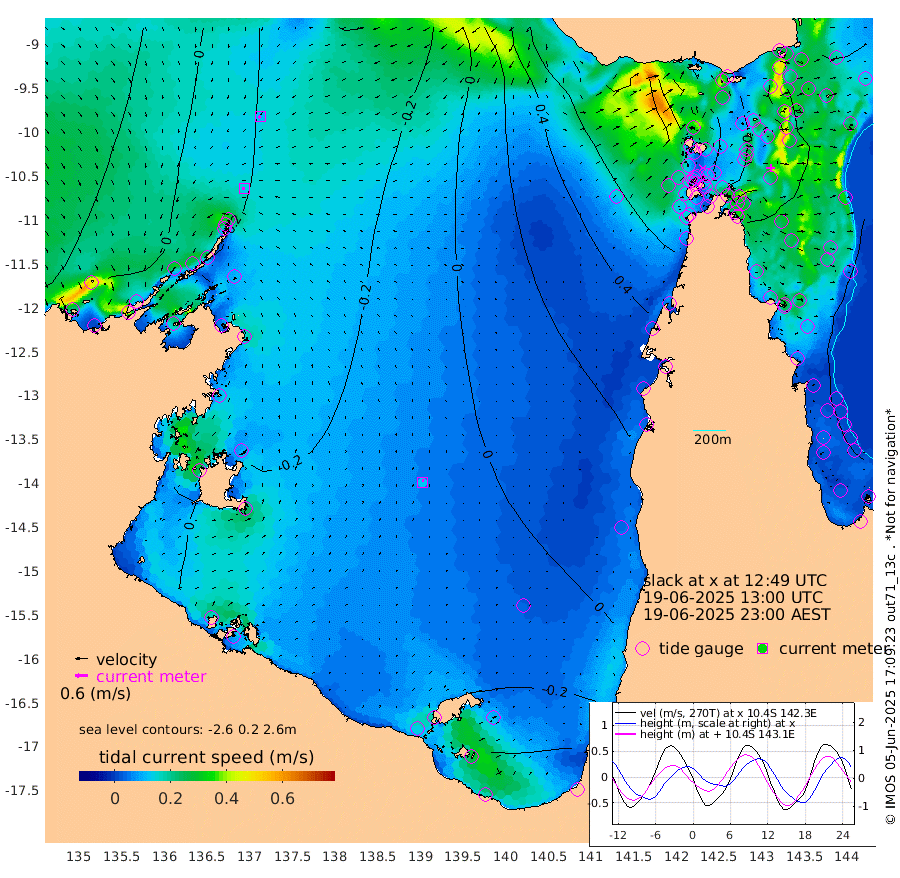 13cm/s -102T +3cm/s rms + 7cm/s -42T. ARA-GOC87 57m 13cm/s 9T +3cm/s rms + 2cm/s -2T. ARA-GOC87 60m 11cm/s -133T +2cm/s rms + 3cm/s 61T. ARA-GOC87 47m -37cm Daru -36cm Bobo Island -40cm Meer Island Barge -46cm Bramble Cay -40cm Unnamed Cay -37cm Pearce Cay -46cm Stephens Island -48cm Merrie England Shoals -32cm Mutacomal Reef -46cm Darnley Island Barge -41cm East Cay -37cm Yorke Island Barge -31cm Rennel Island -29cm Aureed Island -17cm Dungeness Reef 10cm Zagai Island 13cm Yam Island 36cm Dauan Island 40cm Saibai Island 28cm Phipi Reef 5cm Warrior Reef - West 62cm Mabuiag Island Barge -37cm Half Way Island -13cm Coconut Island -26cm Dugong Islet 1cm Poll Island -8cm Kirkcaldie Reef 41cm Suarji Island 1cm Sue Islet 96cm Hawkesbury Island 39cm Alert Patches 33cm Twin Island 89cm Badu Island 37cm St Pauls (Moa Island) 72cm Kubin (Moa Island) 51cm Ince Point 62cm Thursday Island 60cm Nardana Patches 71cm Turtle Head 90cm Round Island 92cm Goods Island 108cm Booby Island 110cm White Rocks Area 103cm Carpentaria 38cm Papou Point 135cm Bampfield Head 81cm Crab Island 100cm Red Wallis Island 74cm Packe Island -21cm Harrington Reef 101cm Herald Camp 7cm Sharp Point 65cm Red Island Point 60cm Possession Island 22cm Alpha Rock 8cm Frederick Point -21cm Wyborn Reef Light -14cm Tetley Island -23cm Triangle Reef -24cm Turtle Head Island -29cm Maclennan Cay -30cm Raine Island -39cm Mcsweeny Reef -39cm Collette Reef -35cm Shadwell Reef -47cm Hannibal Island -45cm Round Point 69cm Vrilya Point -40cm Cape Grenville -39cm Hicks Island -32cm Sir Charles Hardy Island -14cm Harvey Island -38cm Kay Reef -33cm Rocky Island -26cm Chapman Island -28cm Ham Reef -34cm Jubilee Reef -35cm Night Island -29cm Unnamed Reef No. 3 -37cm Morris Island -28cm 1st 3 Mile Opening -34cm Creech Reef -49cm Fife Island -44cm Eden Reef -40cm Stanley Island -46cm Normanby River 16cm Yabooma Island 10cm Hutchison River 11cm Elcho Island 11cm North West Crocodile Island -4cm Cape Wessel -8cm Stevens Island -41cm Guluwuru Island -2cm Hopeful Bay 1cm Auster Point -13cm Two Island Bay -43cm Cadell Strait -169cm Mallison Island -32cm Melville Bay (Gove Harbour) -29cm Truant Island -26cm Cape Arnhem -17cm Cape Grey -18cm Hawk Island -9cm Milner Bay (Groote Eylandt) -16cm Cape Beatrice -12cm West Island -4cm Centre Island -48cm Mornington Island -43cm West Wellesley Islands -41cm Bountiful Island -62cm Albert River Mouth -61cm Sweers Island -62cm Karumba -49cm Nassau River Offshore -28cm Christmas Creek 10cm Archer River 31cm Boyd Point 35cm Weipa (Humbug Point) 28cm Pennefather River 66cm Cullen Point